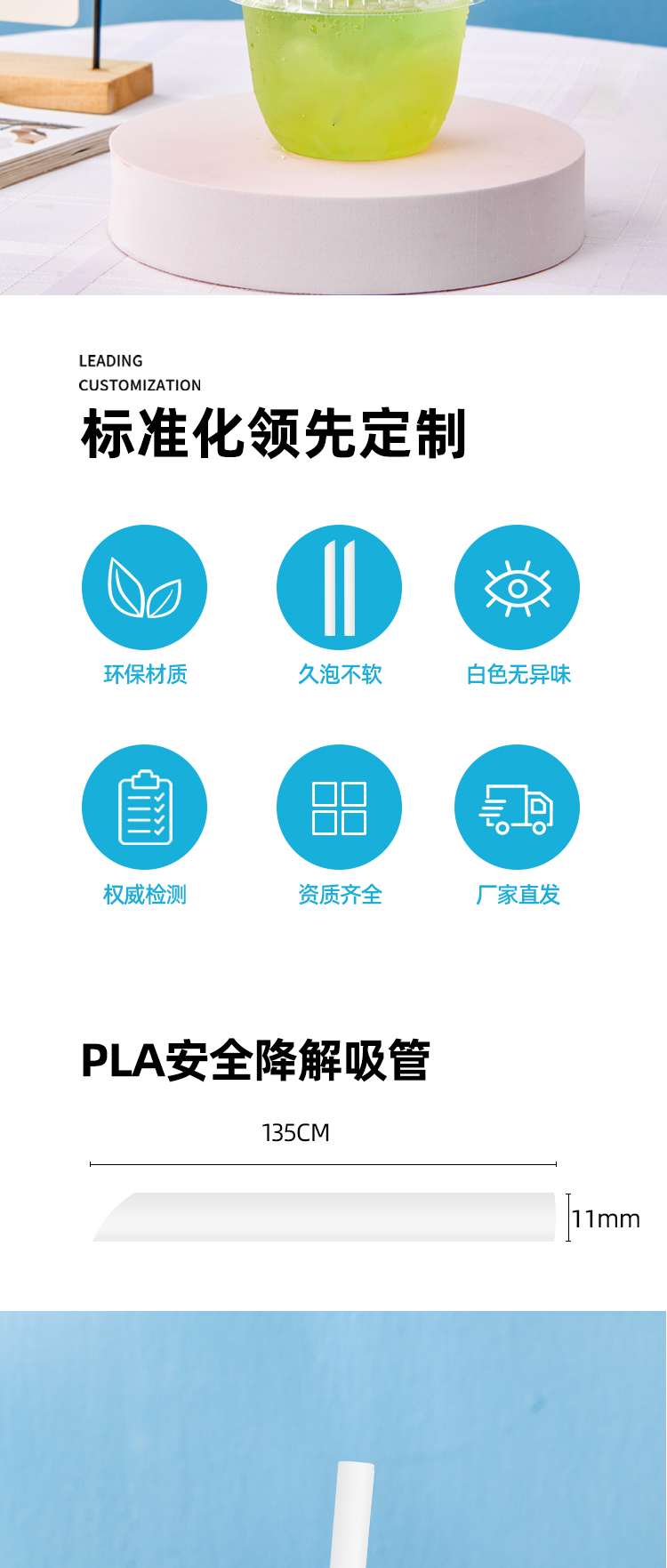 • PLA11 * 135mm 진주 빨대 50 친환경 생분해 성