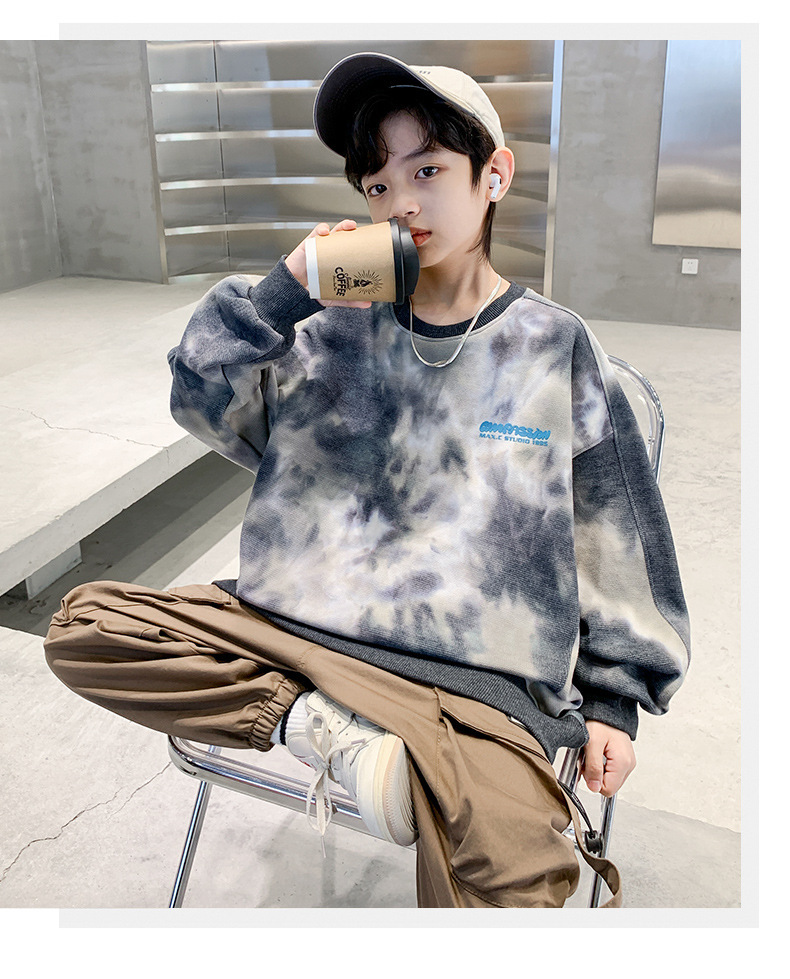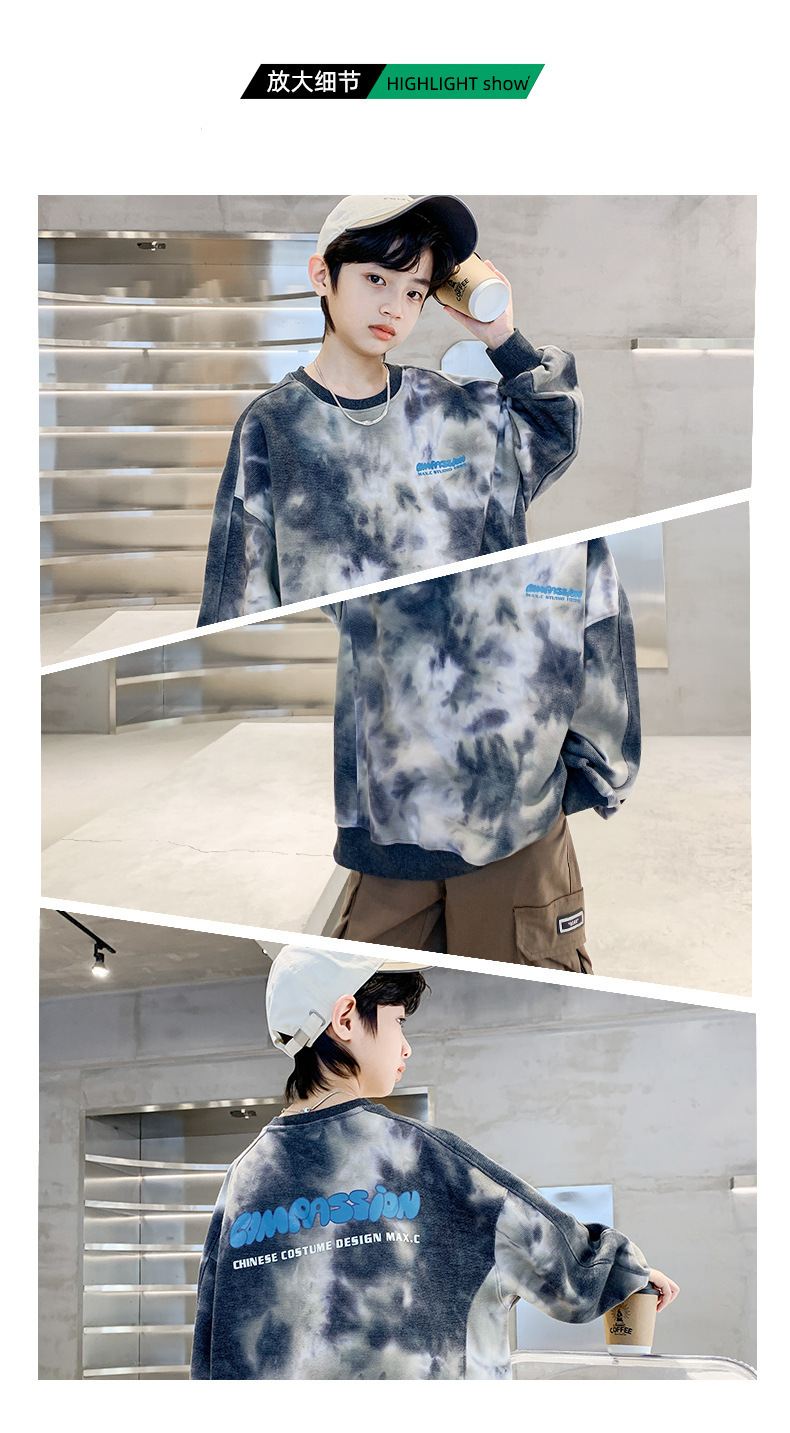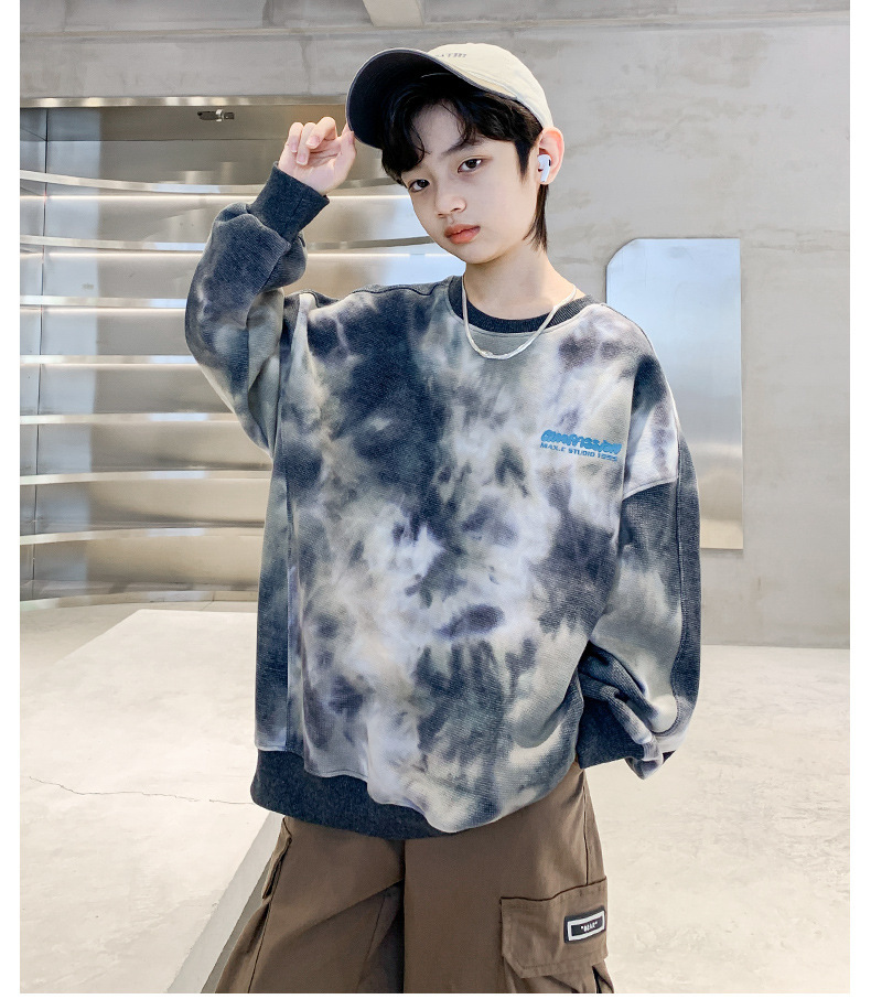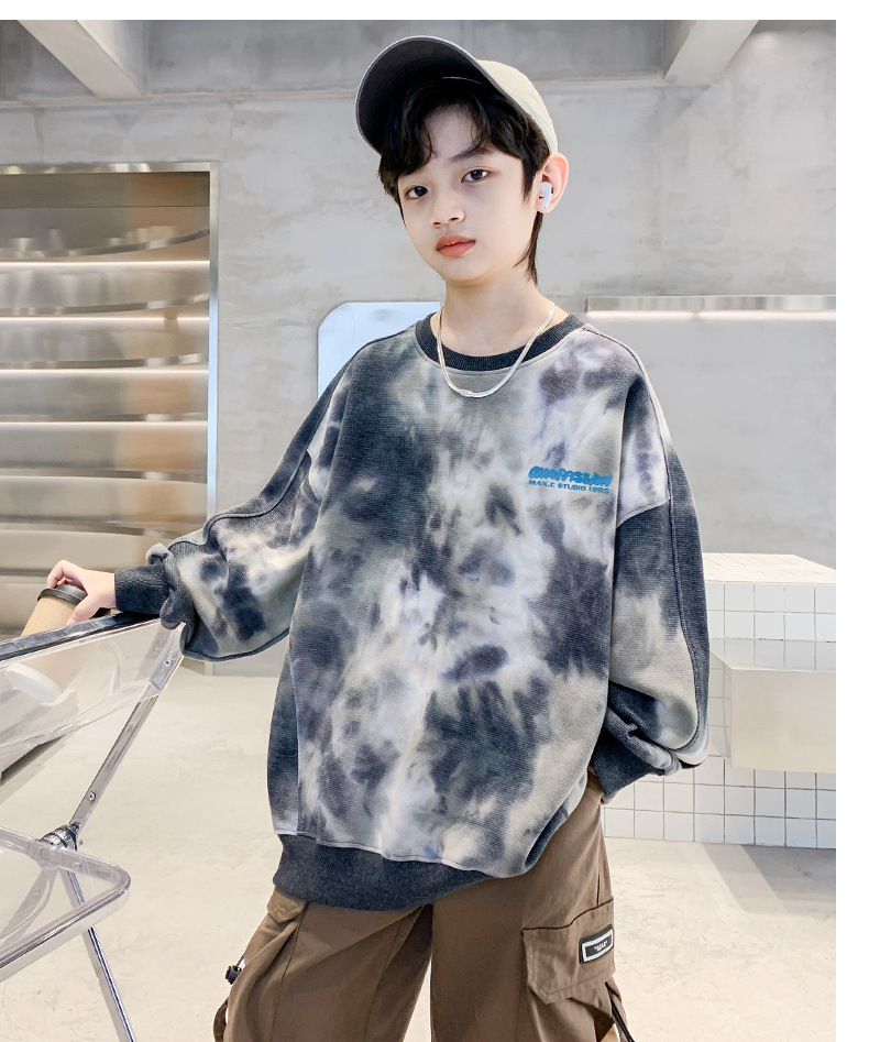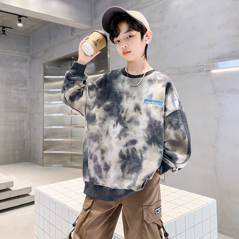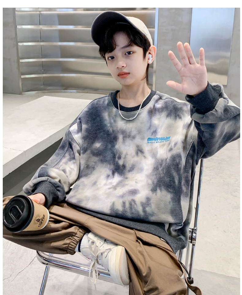 남아 레터 프린트 타이다이 스웨트셔츠 라운드넥 한국식 긴팔 루즈한 스포츠 캐주얼 올매치 미들 빅 키즈 베이스 레이어 셔츠