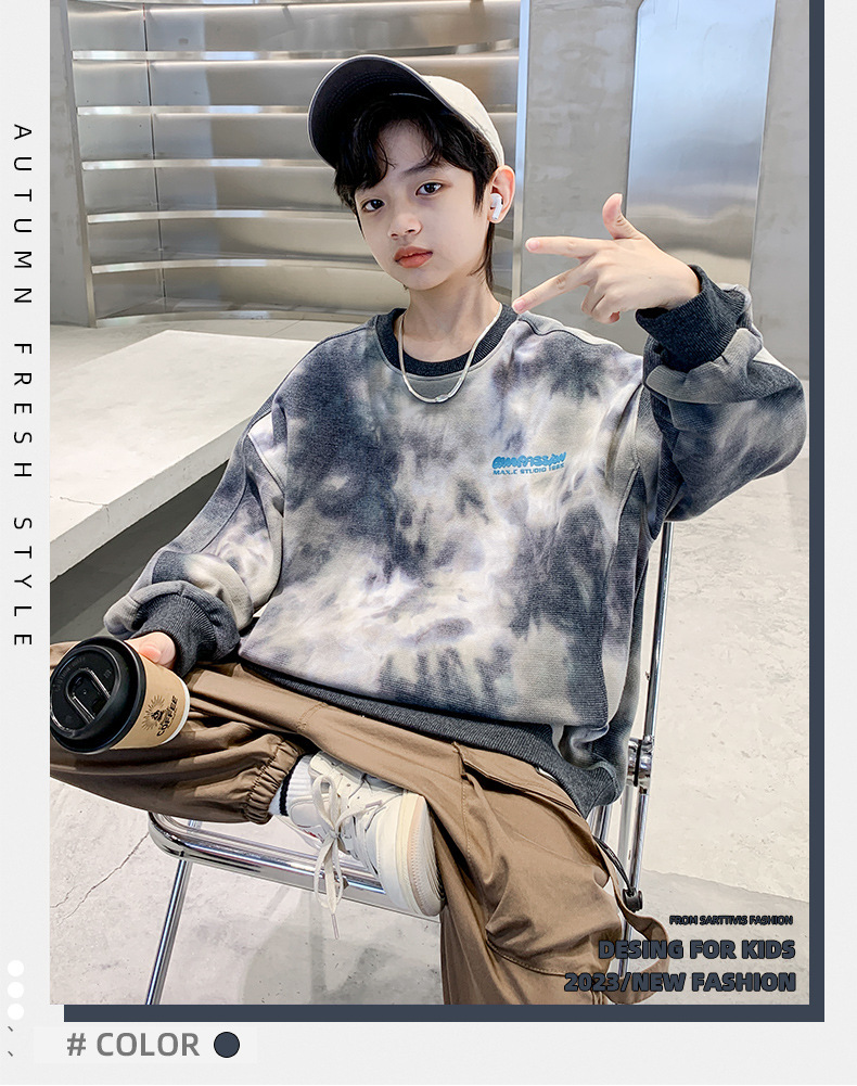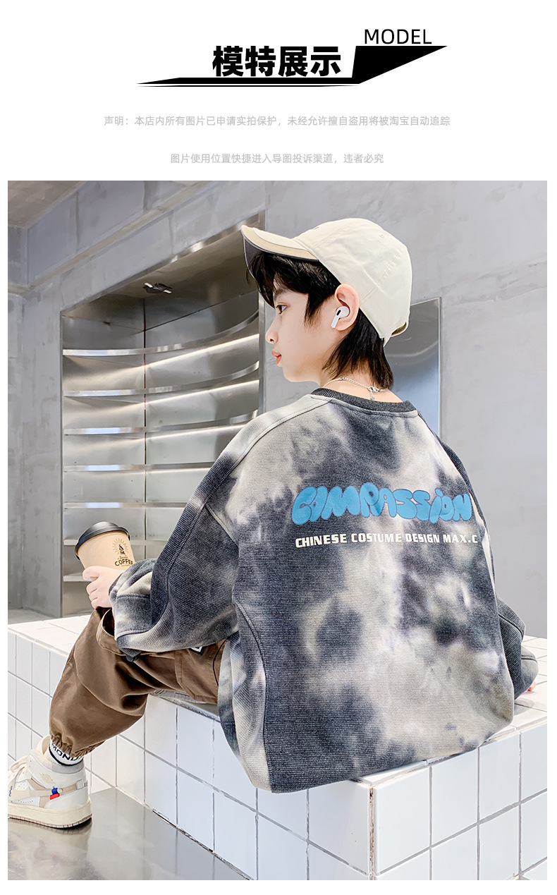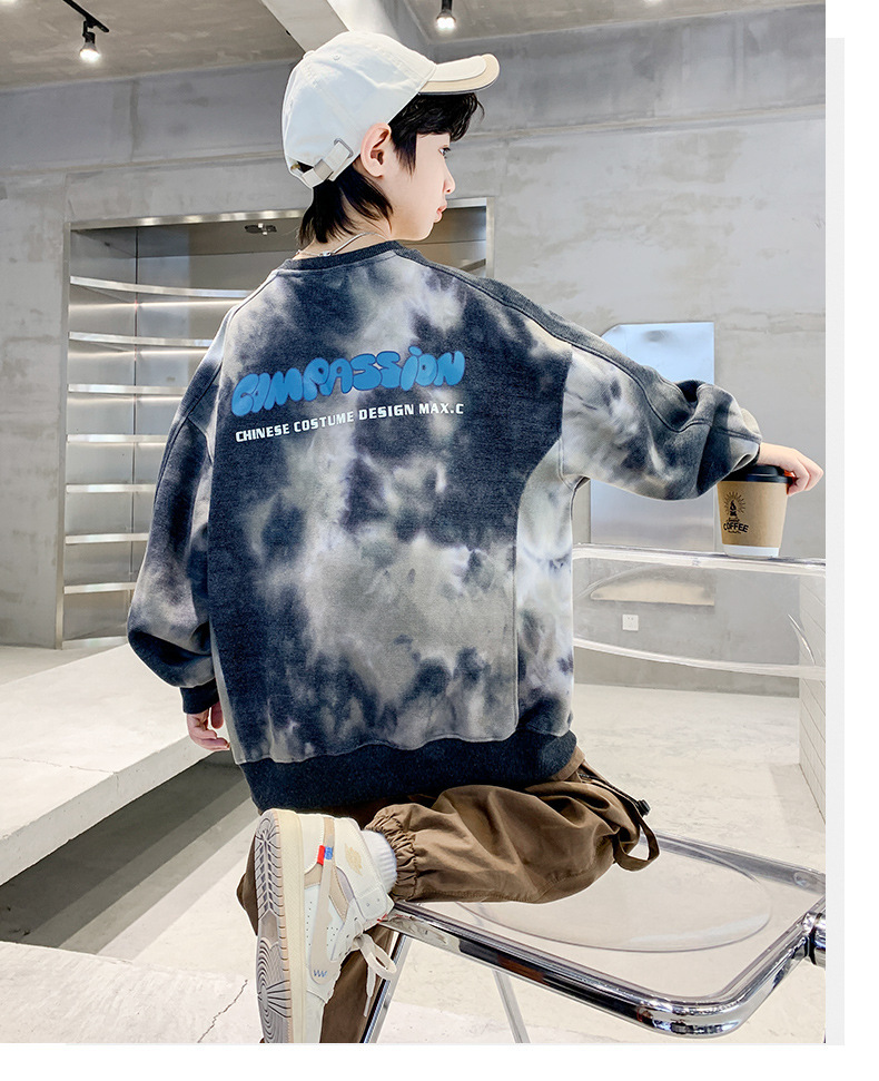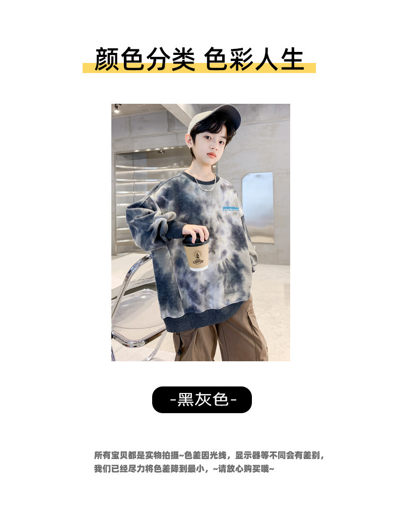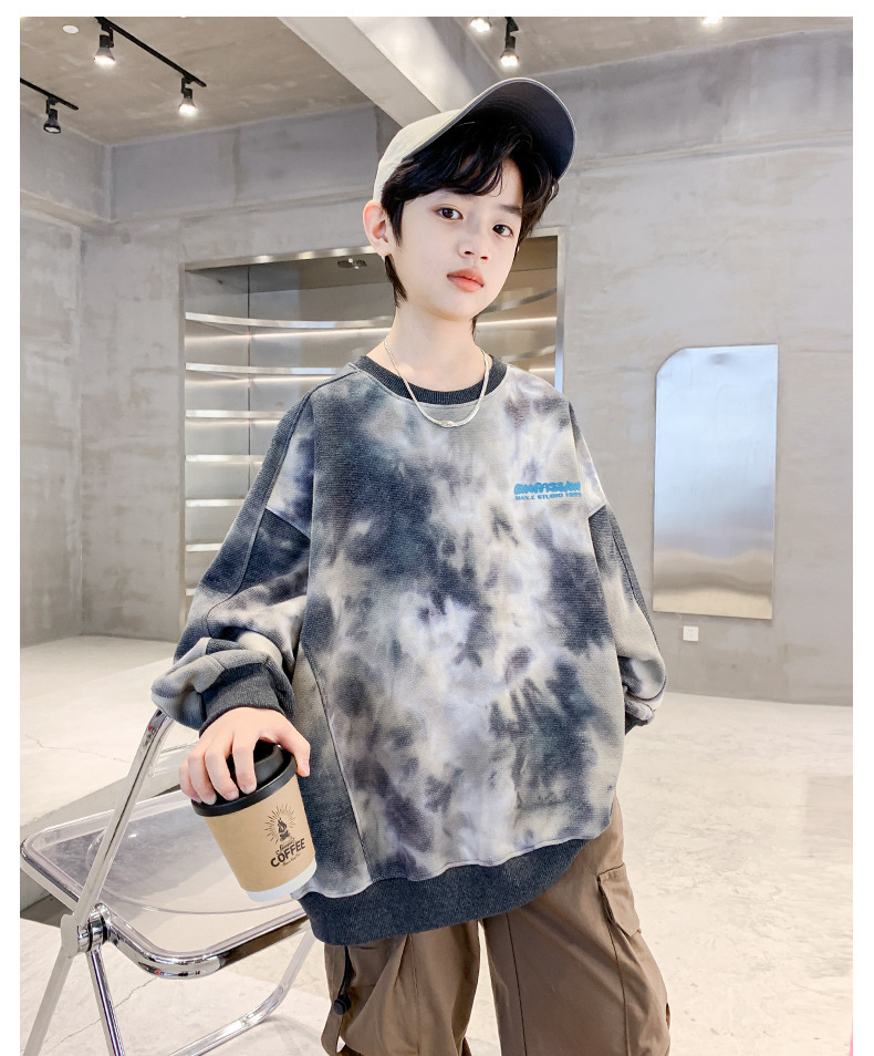 남아 레터 프린트 타이다이 스웨트셔츠 라운드넥 한국식 긴팔 루즈한 스포츠 캐주얼 올매치 미들 빅 키즈 베이스 레이어 셔츠