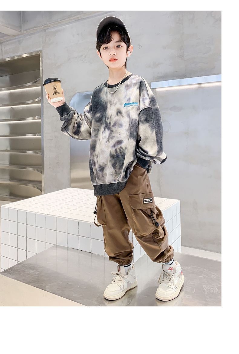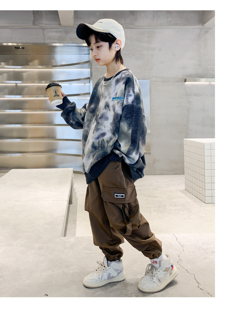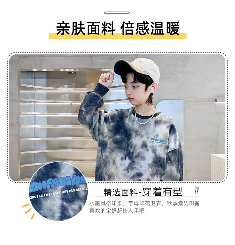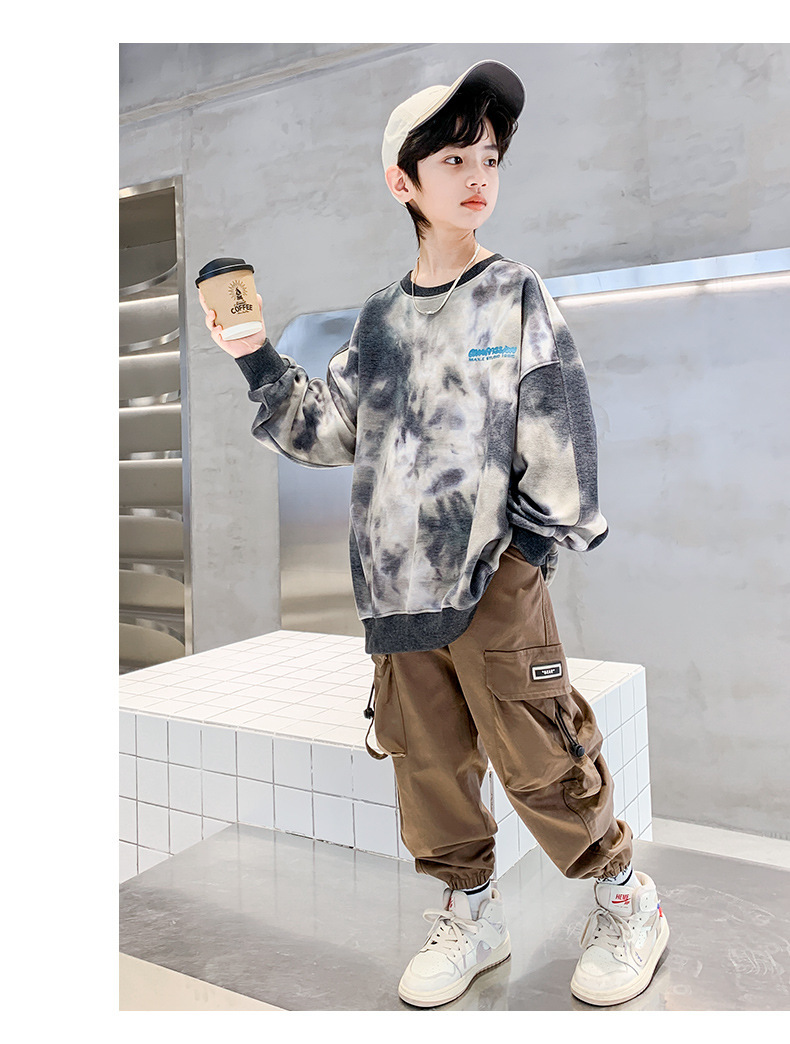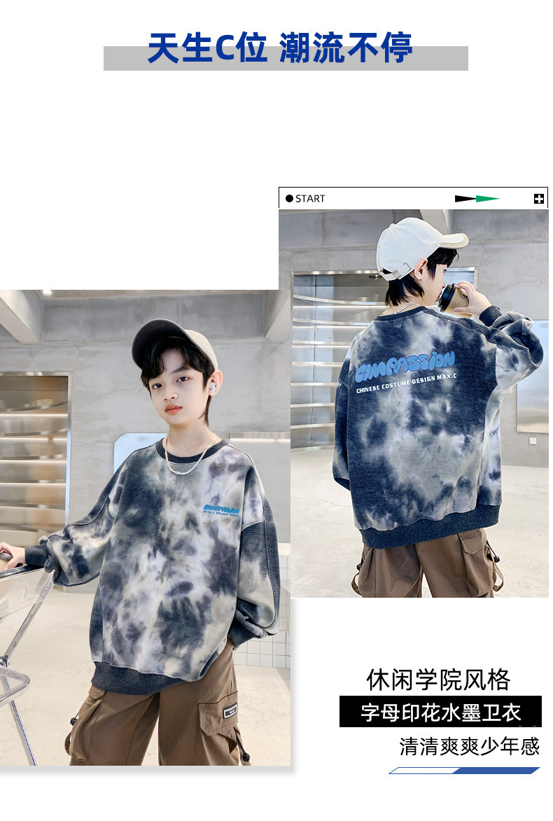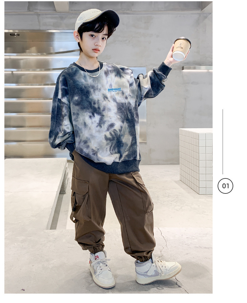 남아 레터 프린트 타이다이 스웨트셔츠 라운드넥 한국식 긴팔 루즈한 스포츠 캐주얼 올매치 미들 빅 키즈 베이스 레이어 셔츠