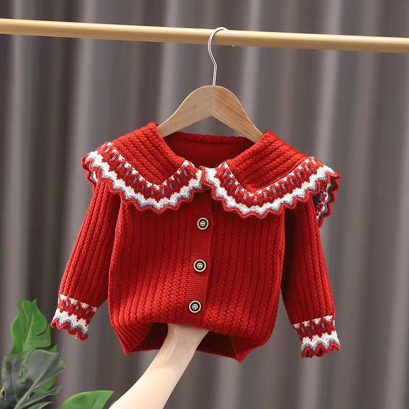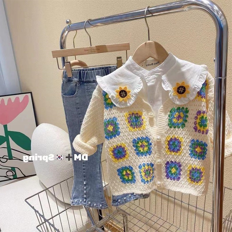 봄, 가을 여아, 중소형 아동용 꽃무늬 스웨터 가디건, 아동용 니트 스웨터, 패셔너블 [K 컬렉션]스토어 가기
