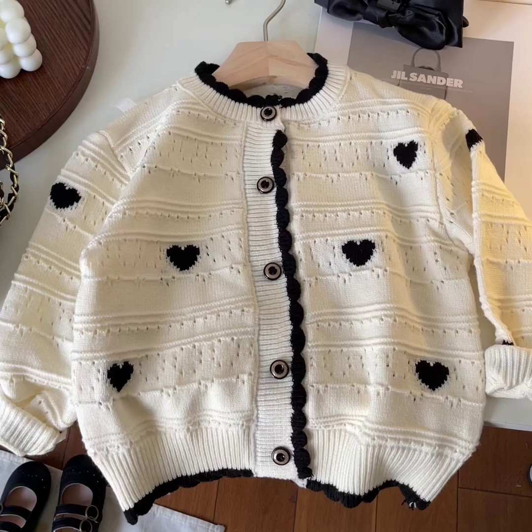 • 화이트 [K203 새는 닭 하트 카디건]