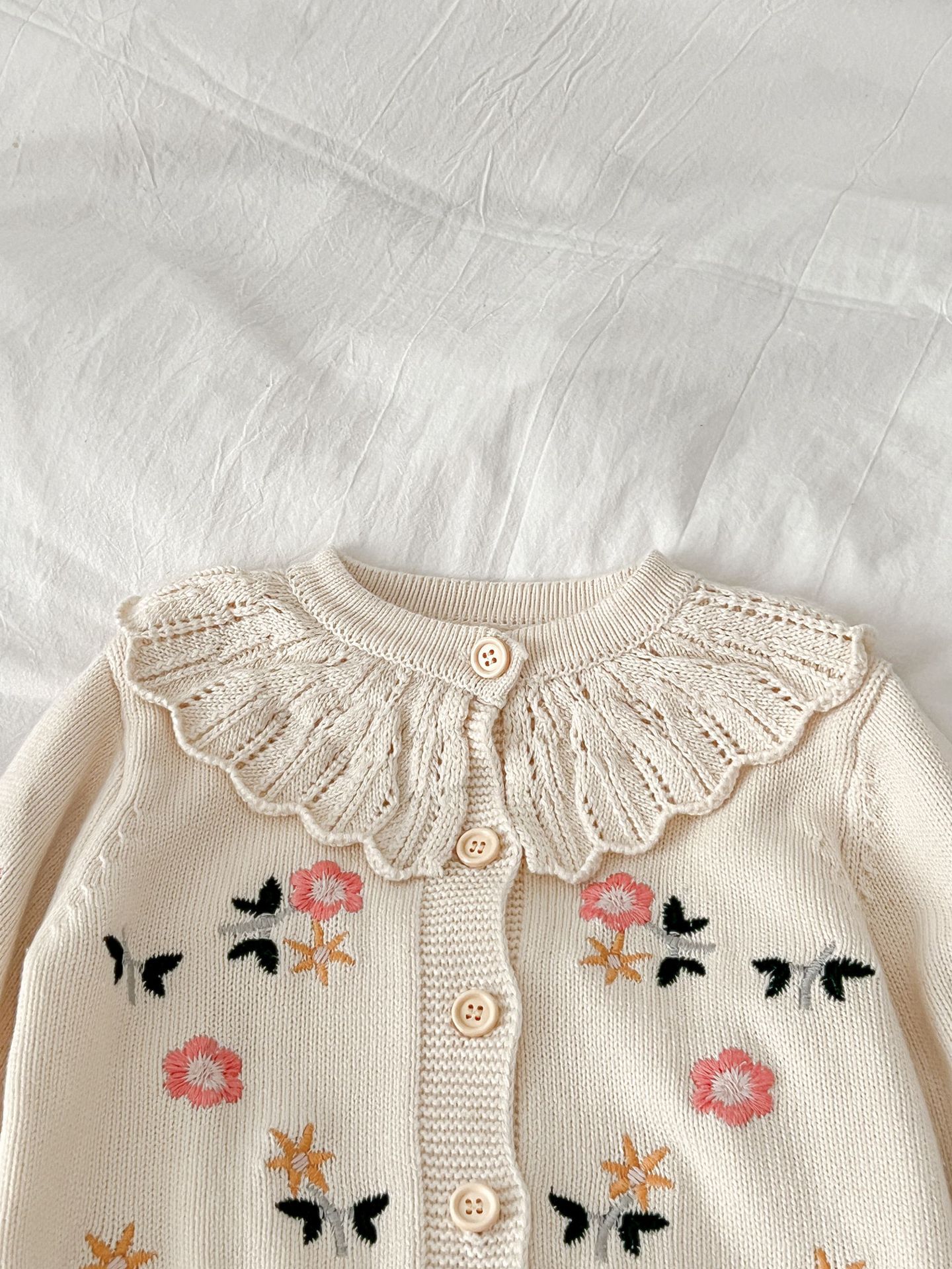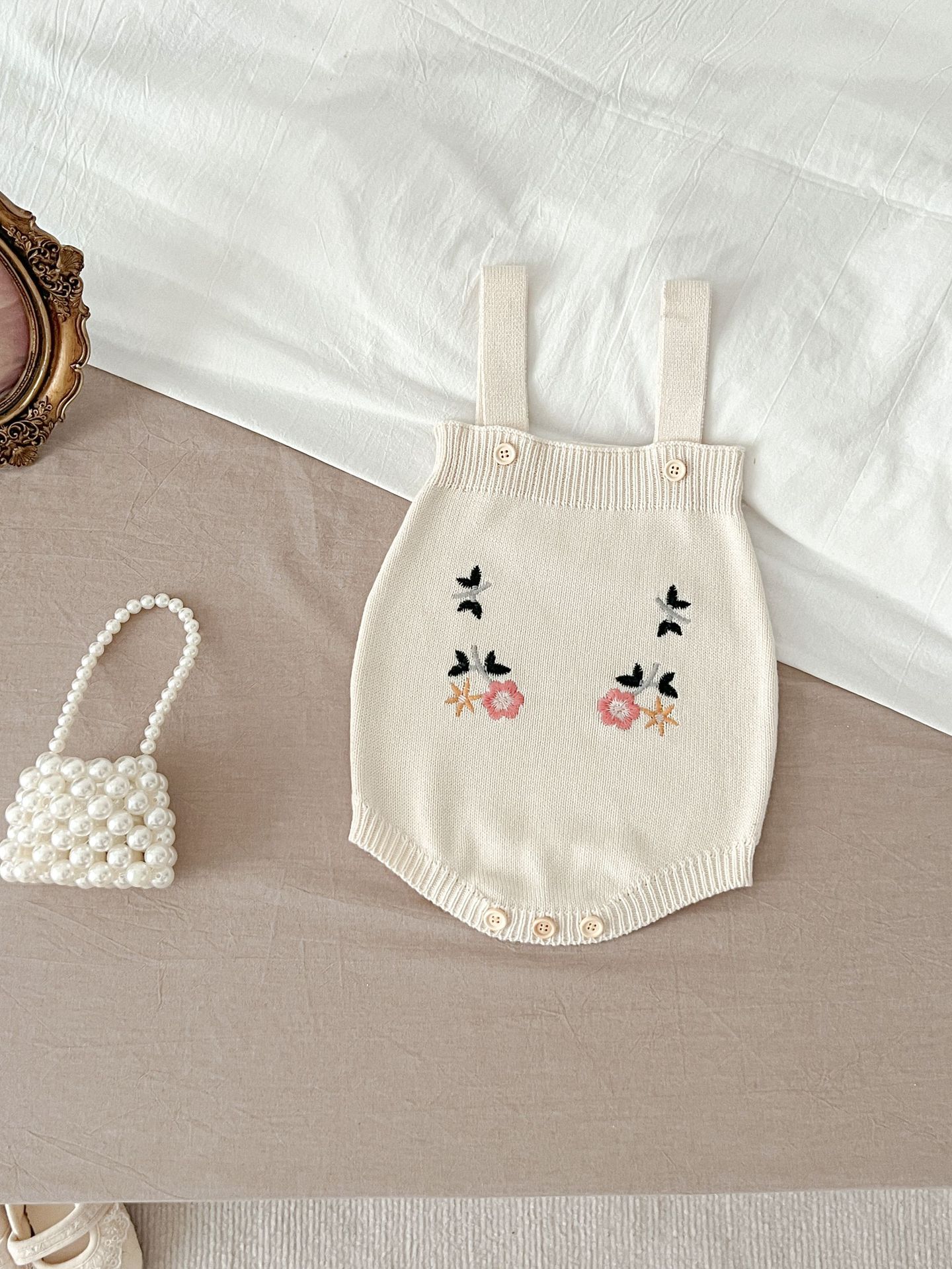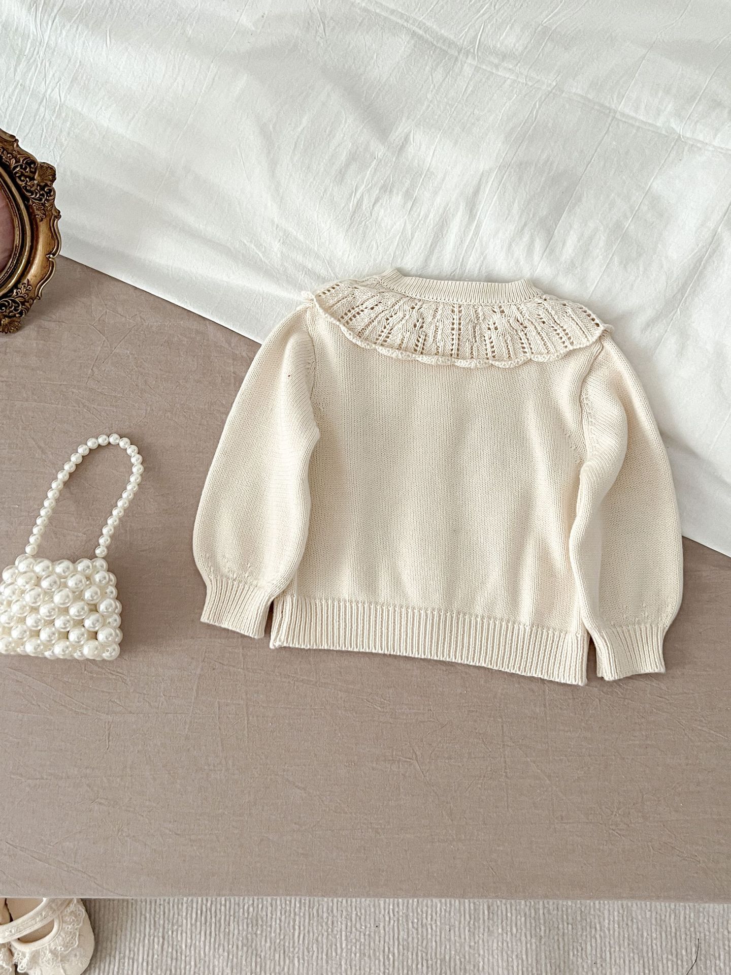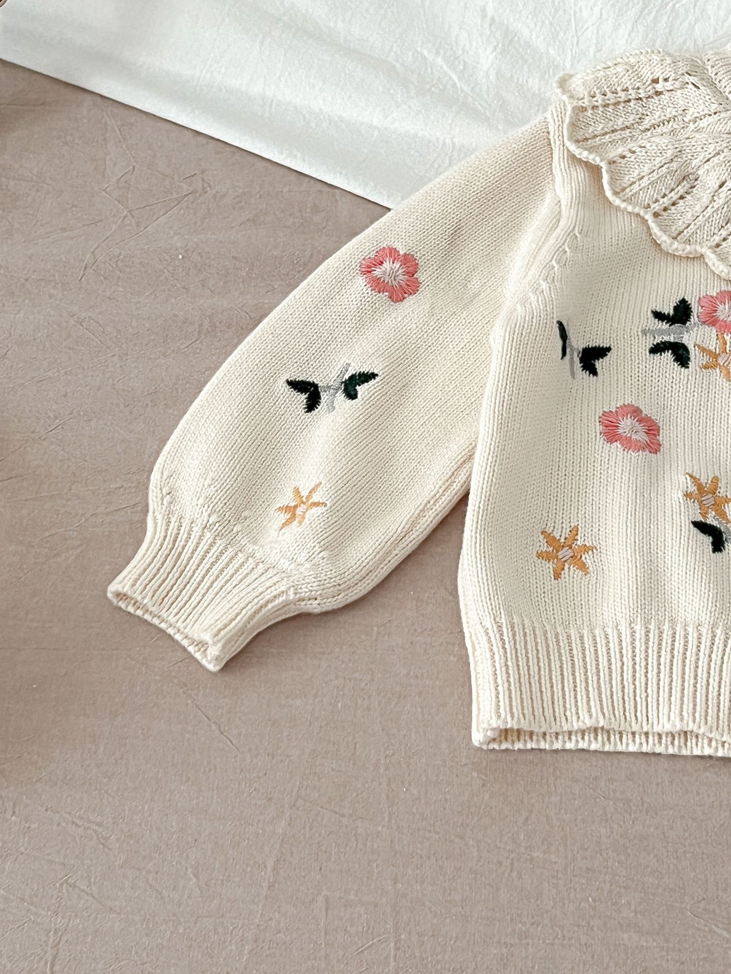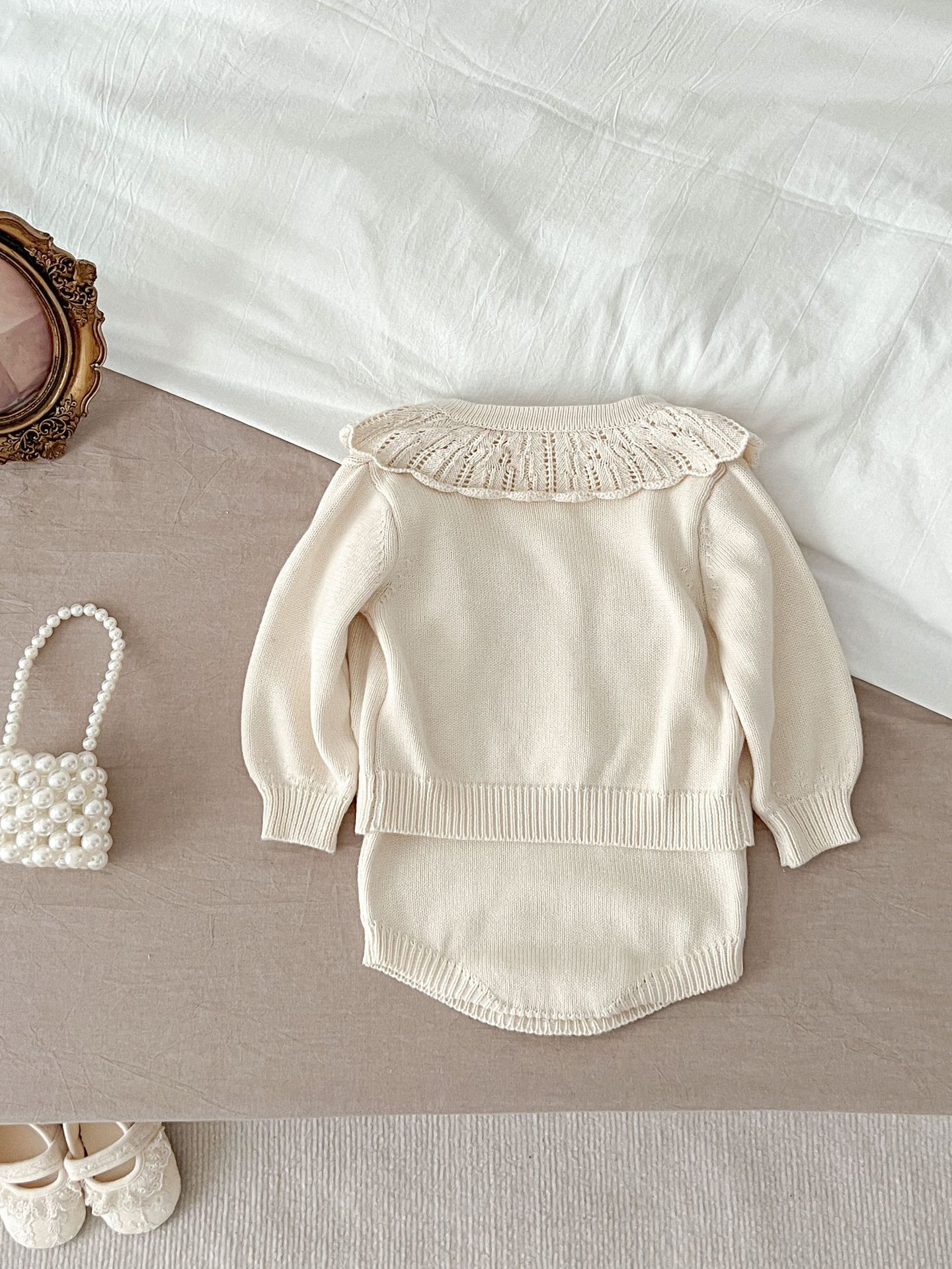 2025 가을 의류 유아 및 아동 여아 정장 자수 연꽃 잎 칼라 니트 탑 + 서스펜더 2피스 정장스토어 가기