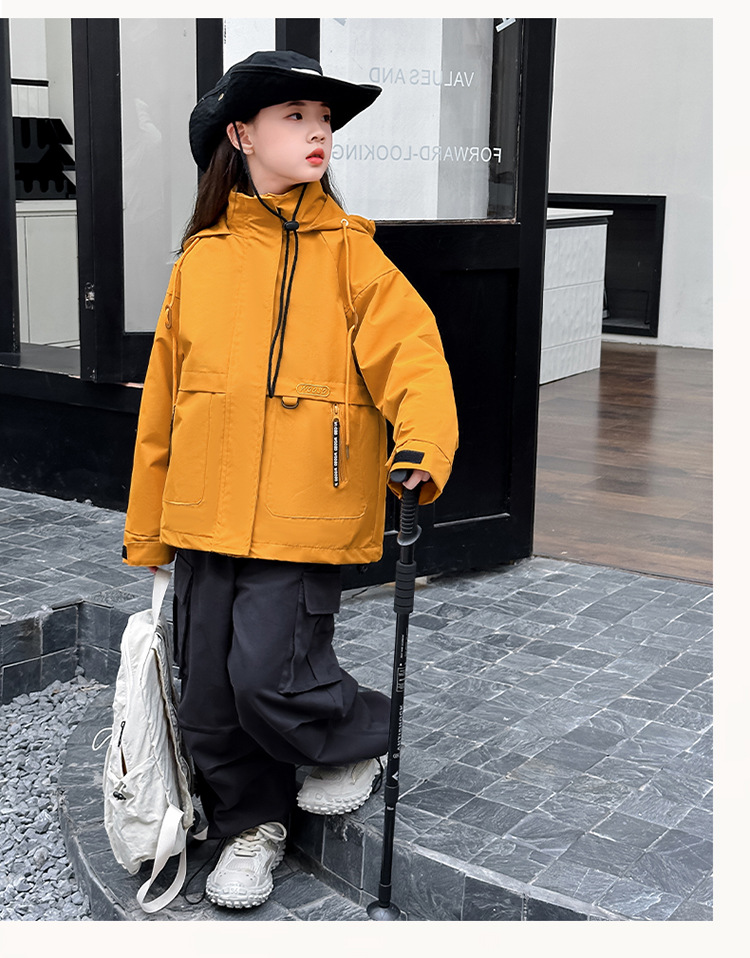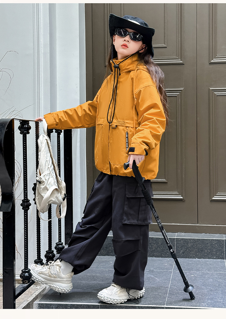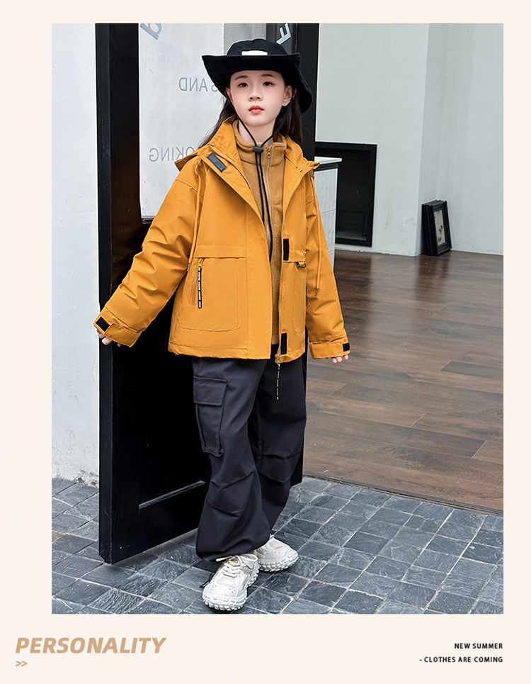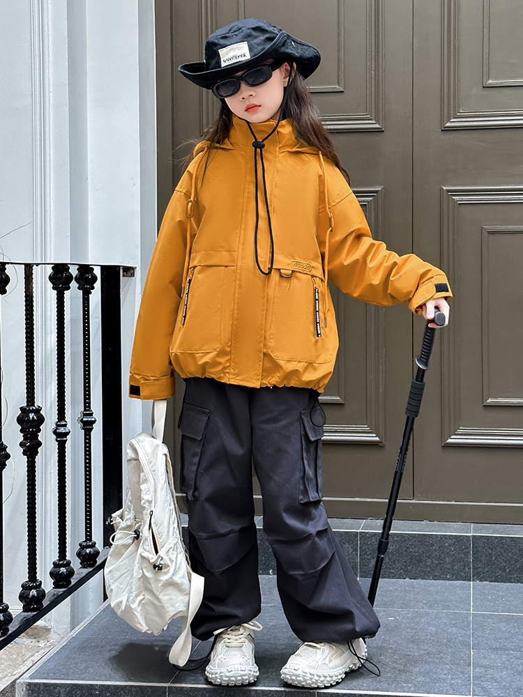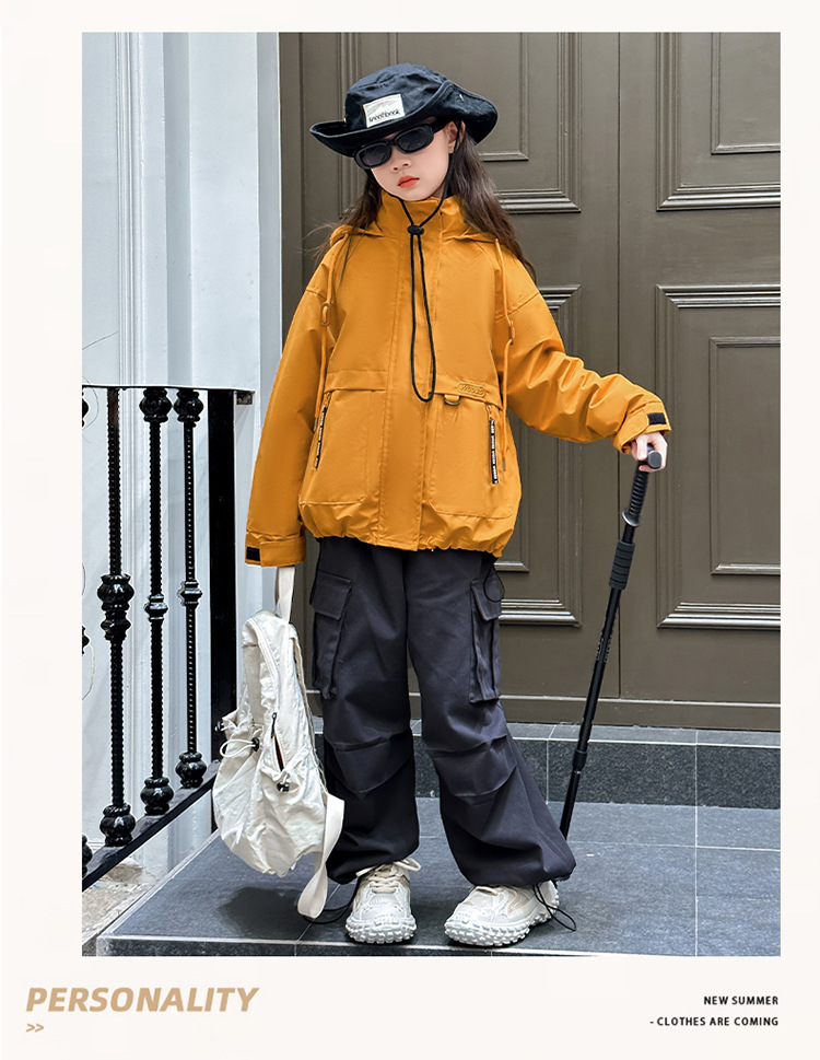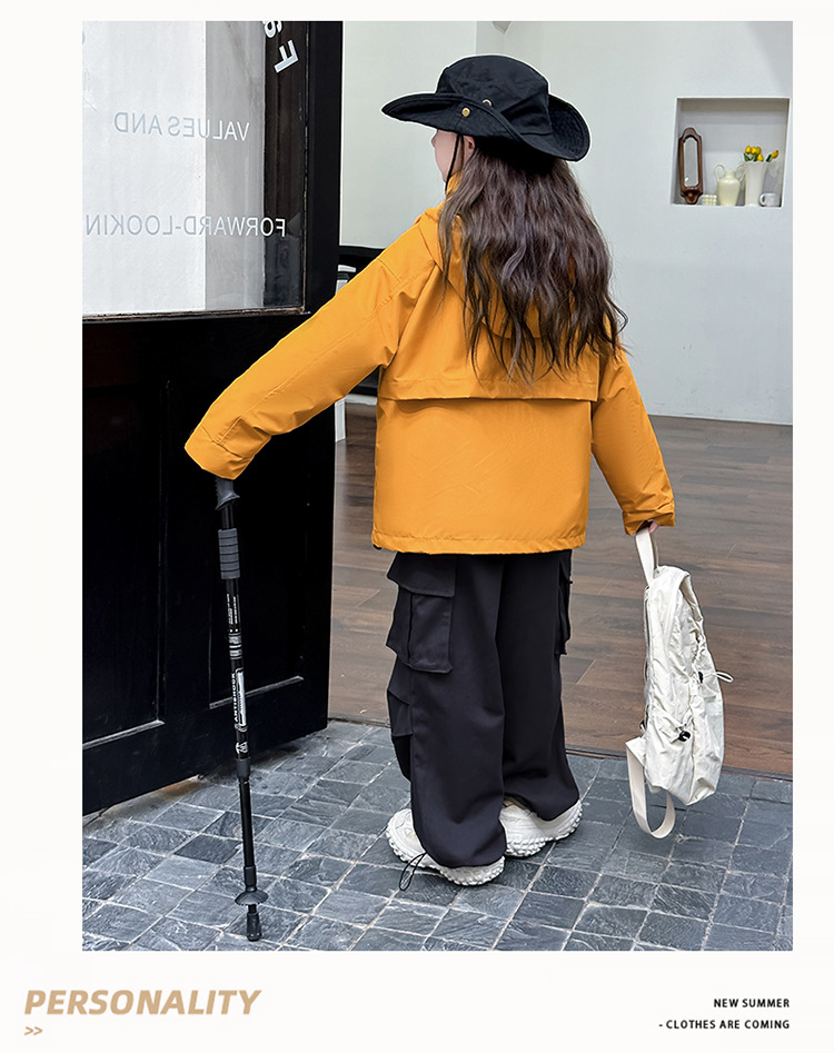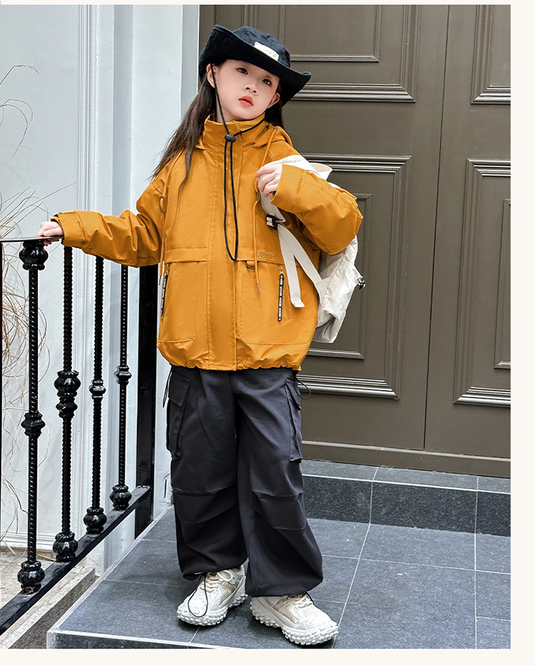 소녀 캐주얼 방풍 코트 봄과 가을 2024 새로운 서양 스타일 유행 중 큰 어린이 색상 매칭 후드 러시 의류 트렌디스토어 가기