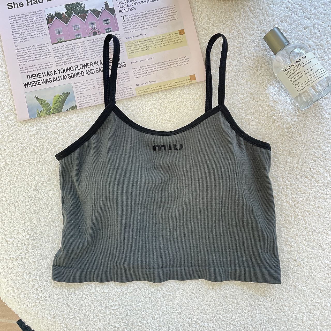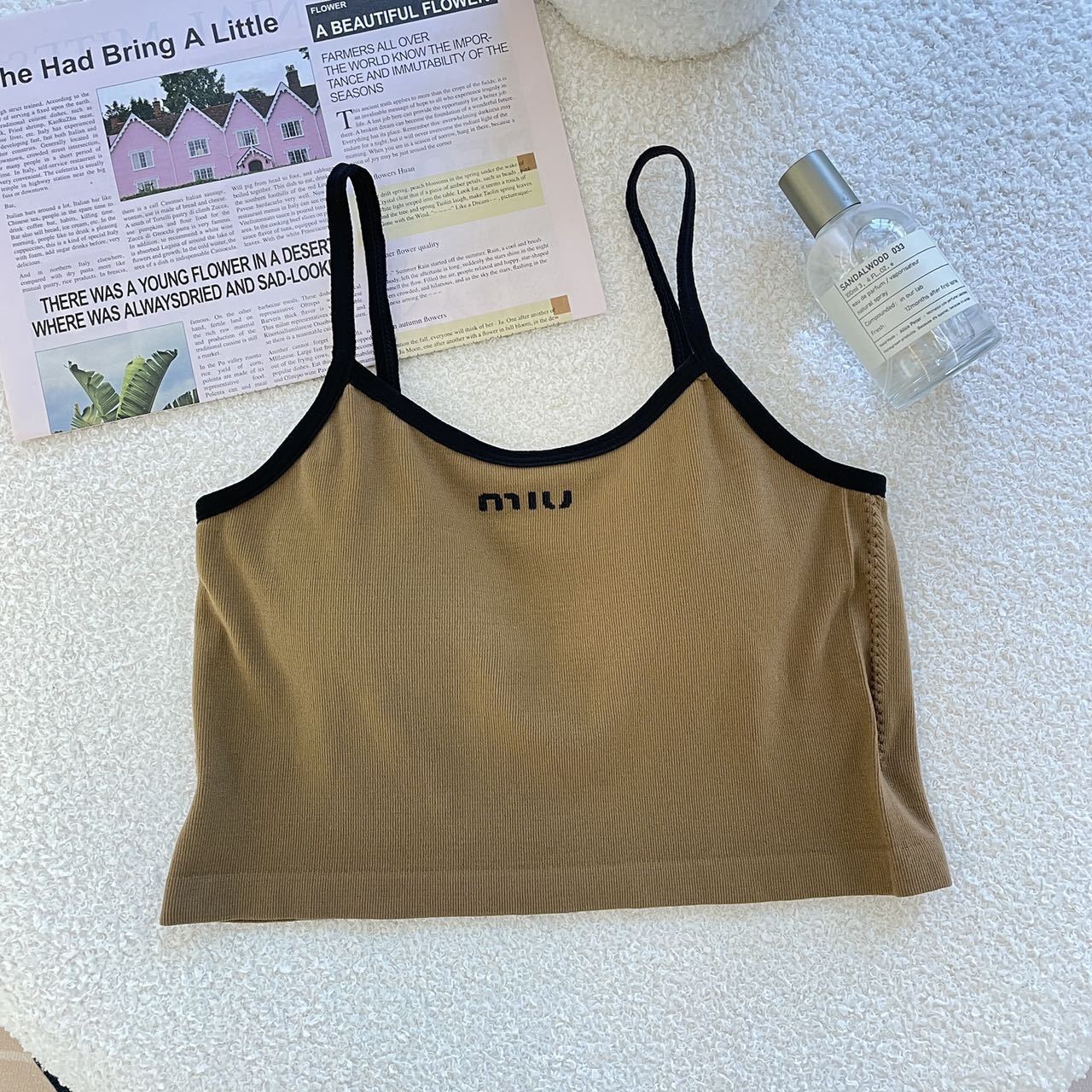 새로운 여름 스파이스 소녀 조끼 슬링 스트랩 가슴 패드 짧은 슬리밍 편지 인쇄 겉옷 내부 랩 속옷 여성용스토어 가기