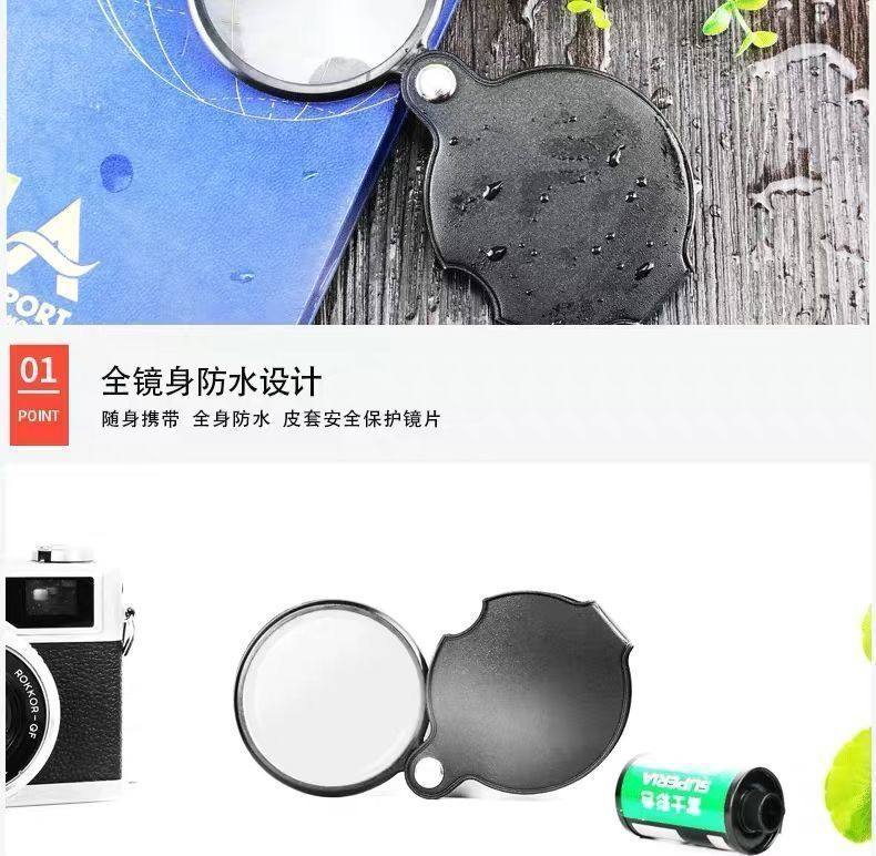 접이식 고화질 고배율 돋보기, 가죽 케이스 포함, 노인 독서용, 신문 읽기용, 초노인 전용스토어 가기