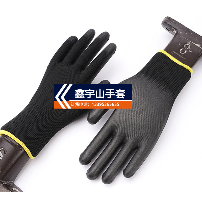 나일론 스트라이프 PU 코팅 손가락 및 손바닥 장갑, 내마모성, 전자 무진, 정전기 방지, 공장 제조업체 도매, 노동 보호 장갑스토어 가기