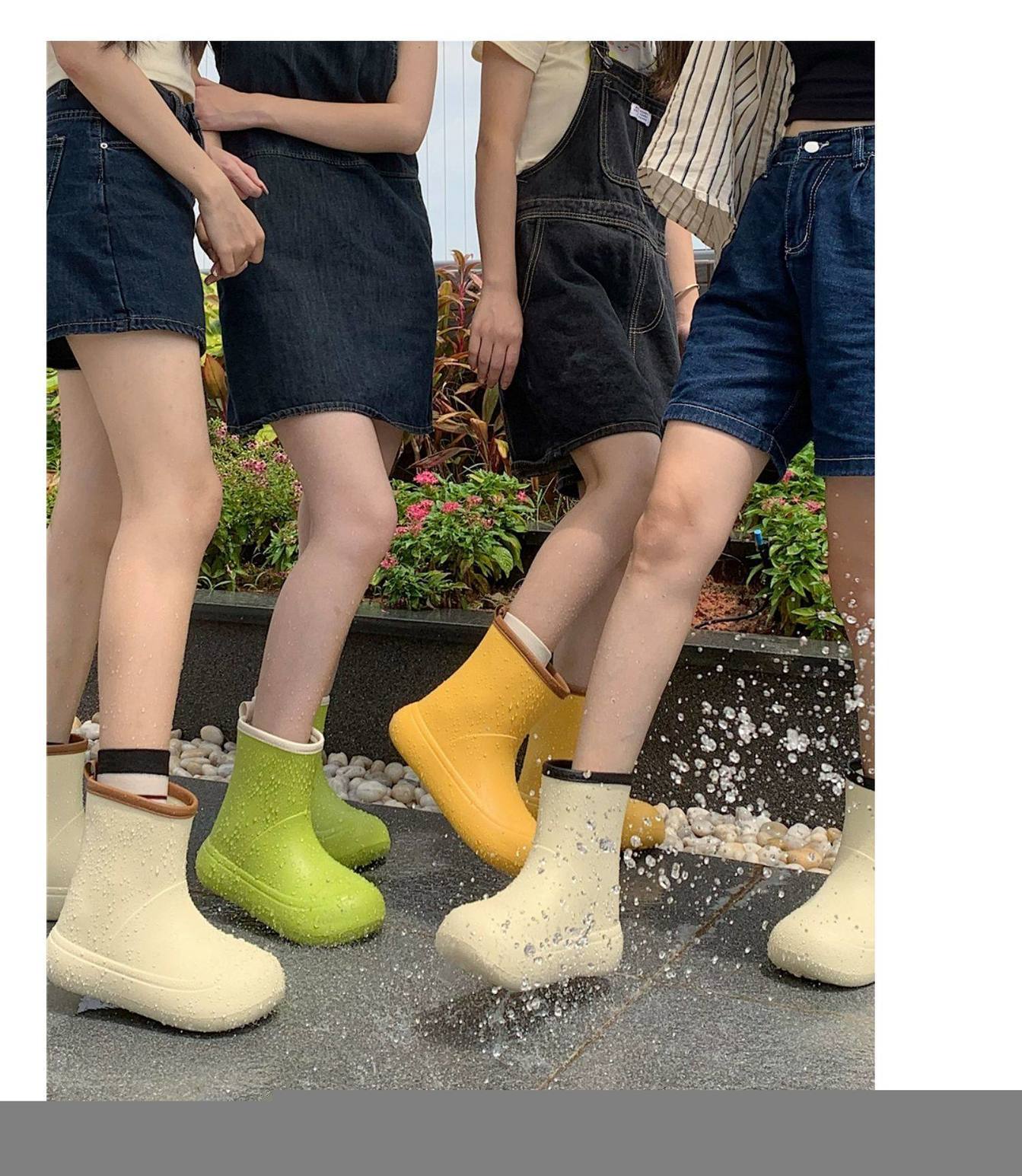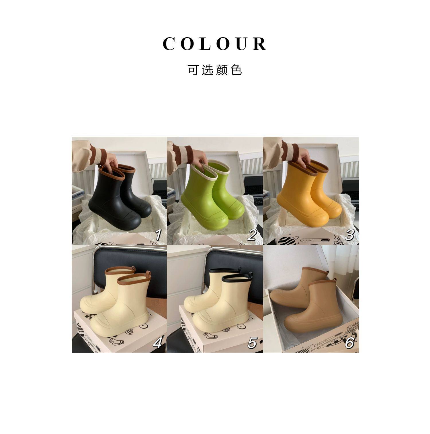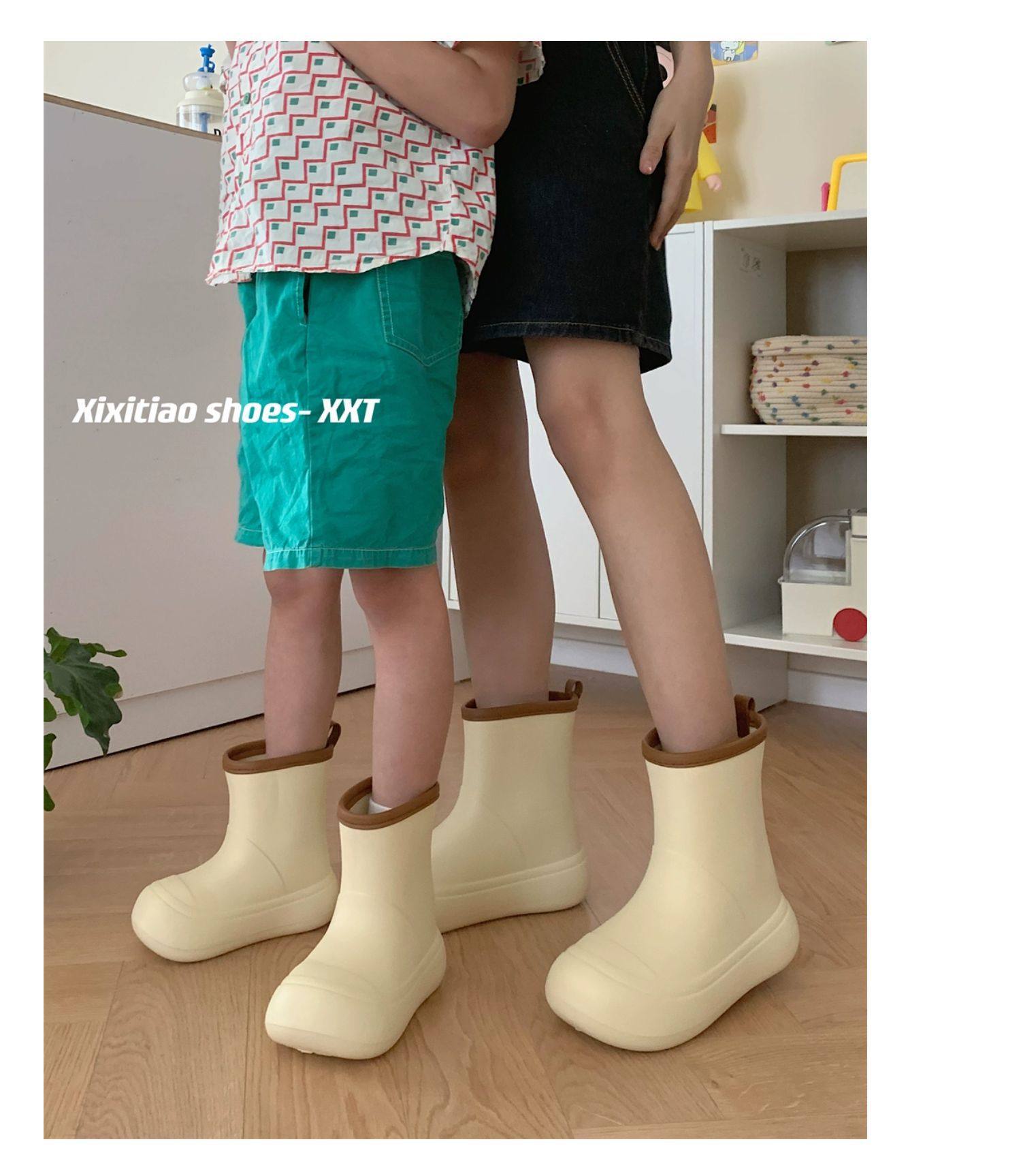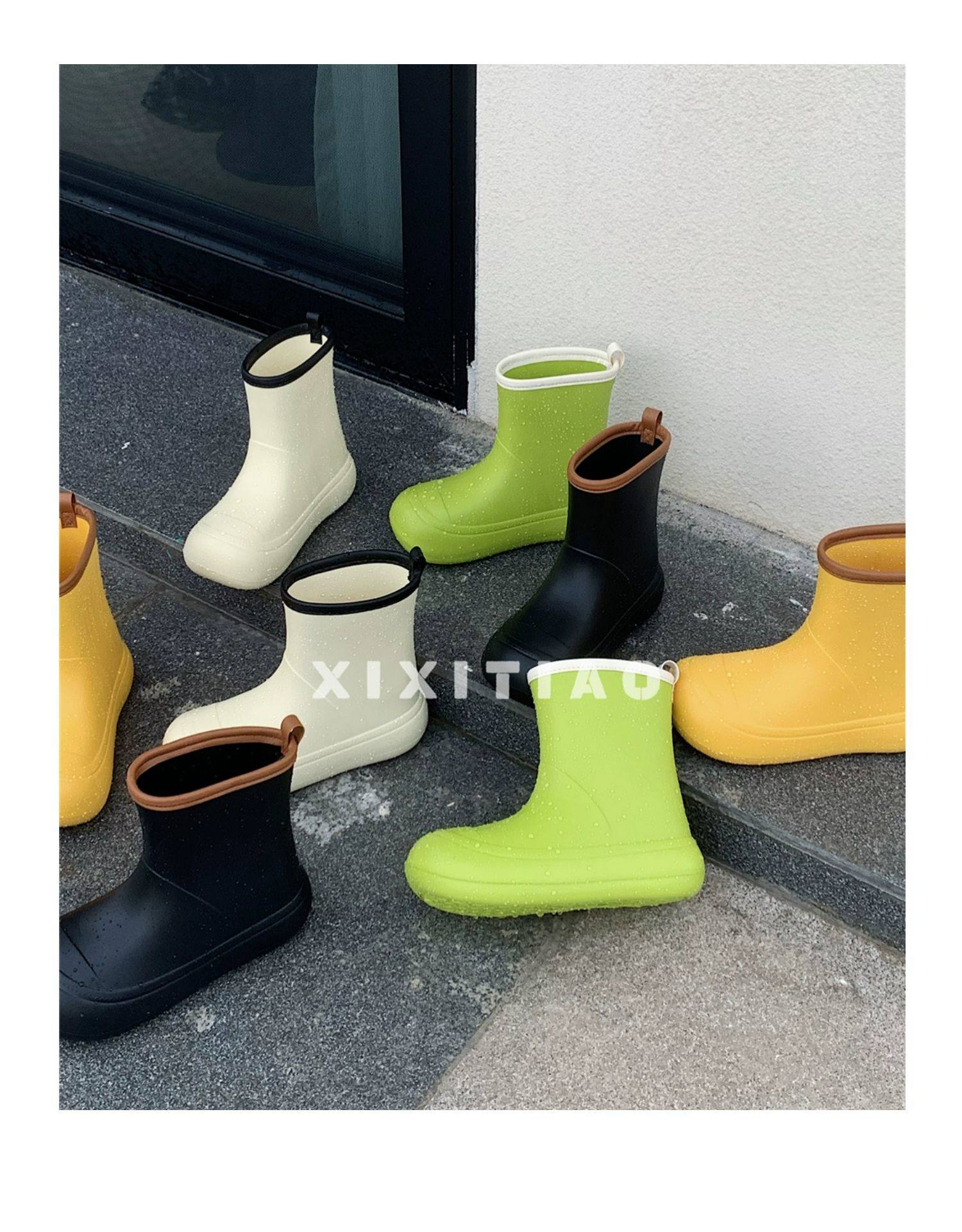 한국 스타일의 방수 겉옷 색상 일치 비오는 날 물 신발 레인 슈즈 여성 여름 부모-자식 부드러운 바닥 패션 캐주얼 장화스토어 가기