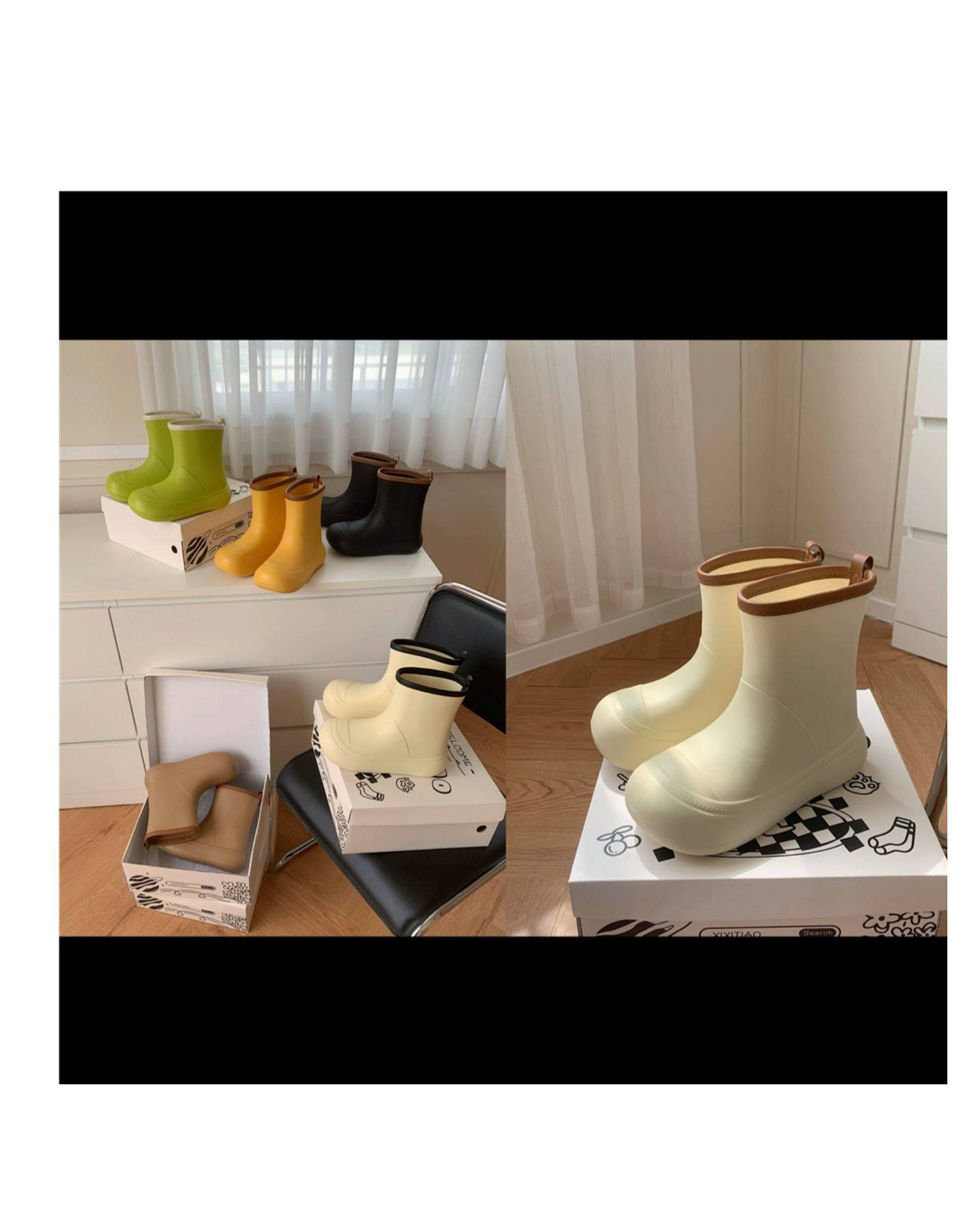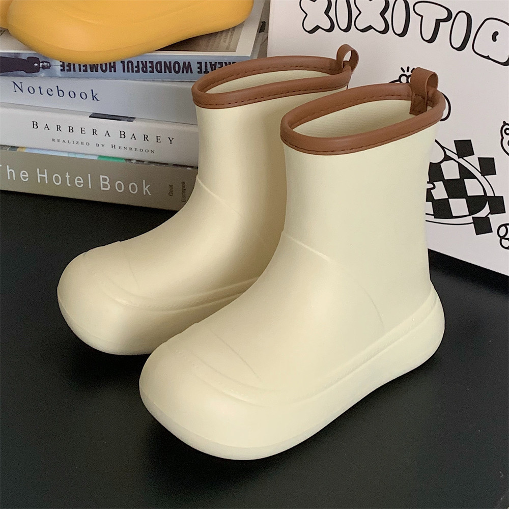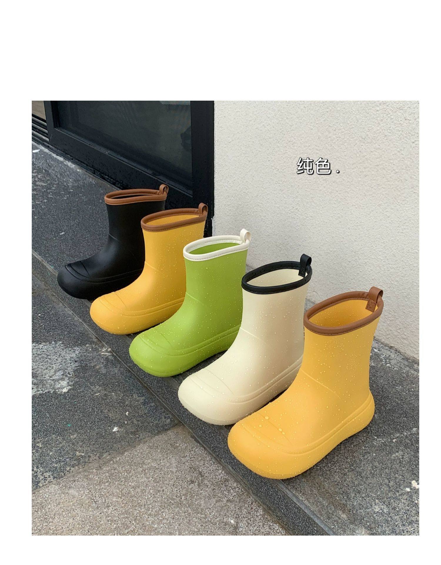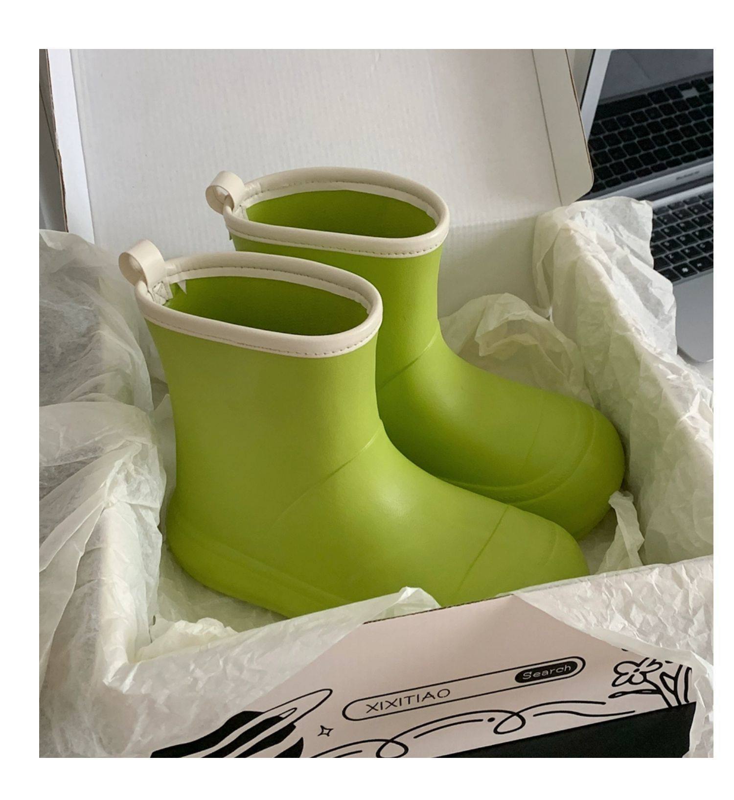 한국 스타일의 방수 겉옷 색상 일치 비오는 날 물 신발 레인 슈즈 여성 여름 부모-자식 부드러운 바닥 패션 캐주얼 장화스토어 가기