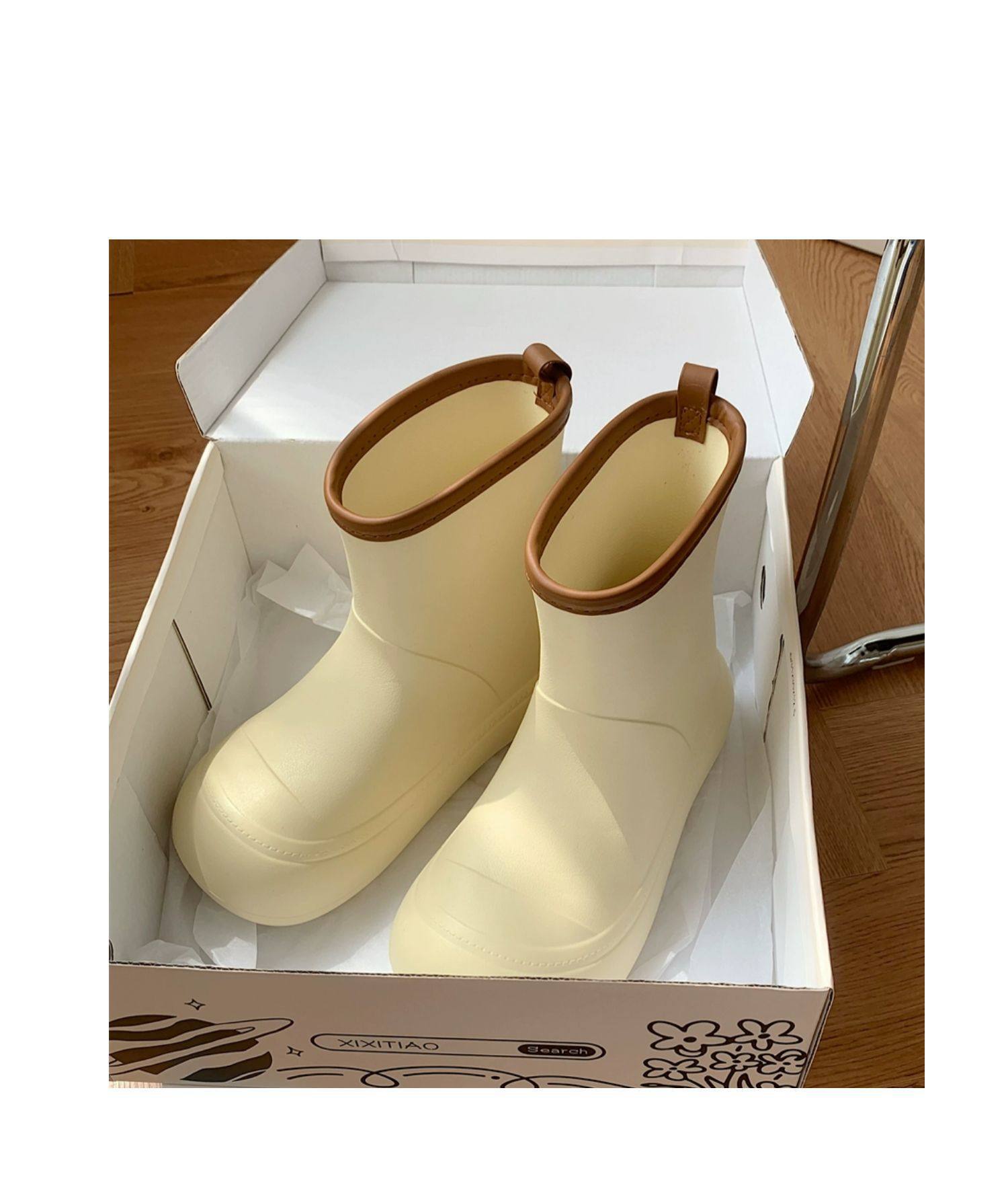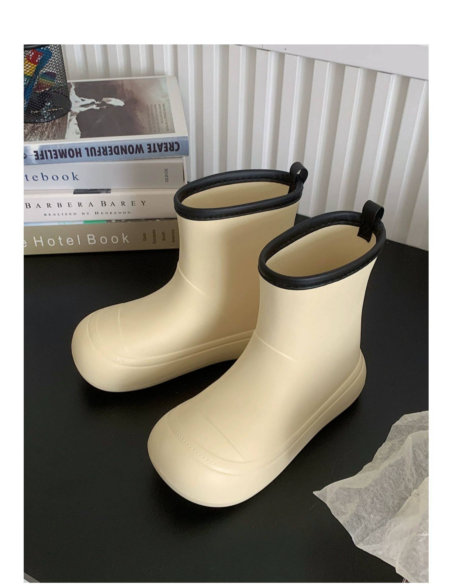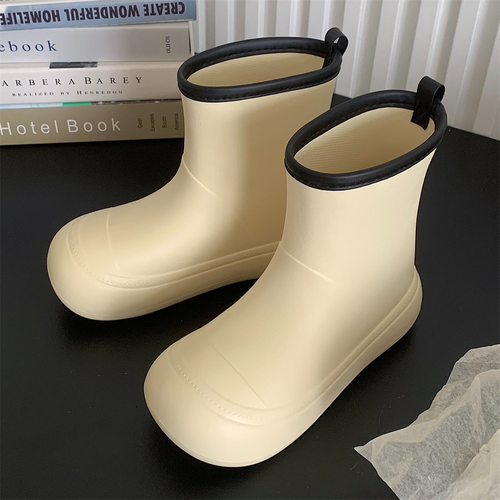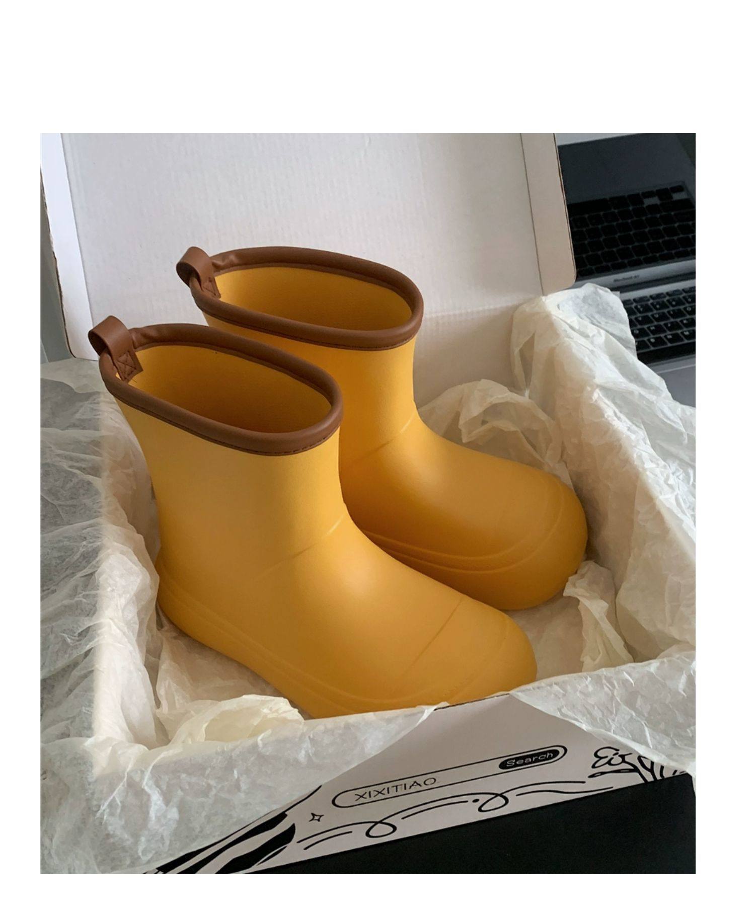 한국 스타일의 방수 겉옷 색상 일치 비오는 날 물 신발 레인 슈즈 여성 여름 부모-자식 부드러운 바닥 패션 캐주얼 장화스토어 가기