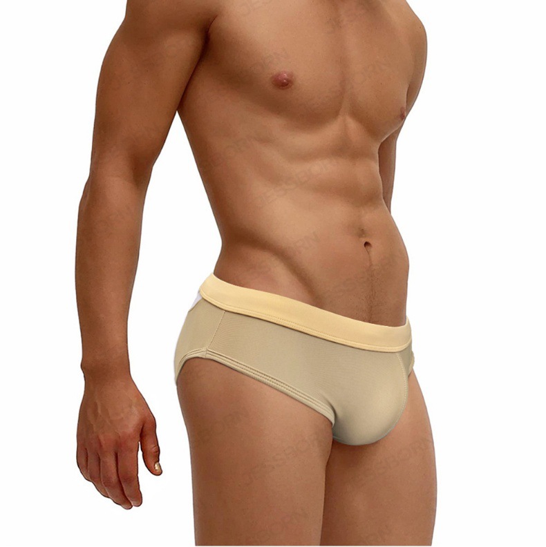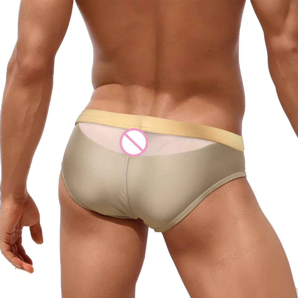 JESSBORN 리어 메쉬 카키 삼각형 수영 트렁크 남자의 낮은 허리 섹시 온천 수영복 무대 성능 브리프
