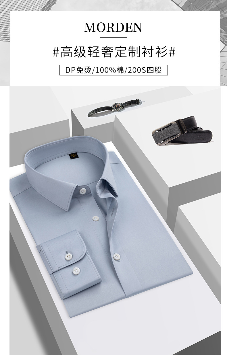남성용 고급 셔츠 남성용 비즈니스 시안 100 면 200 4 개 DP 기성복 비 다림질 캐주얼 긴 소매 셔츠