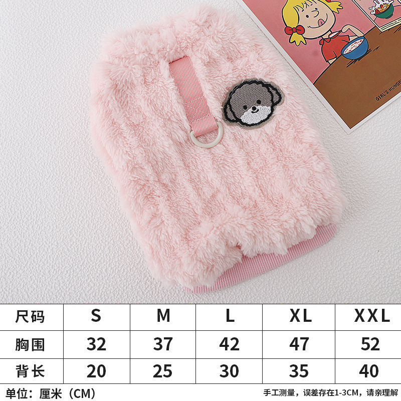 작은 몸 Marji 가을과 겨울 새로운 따뜻한 두꺼운 두 다리 옷 부드러운 편안한 귀여운 D 형 견인 링 버클스토어 가기
