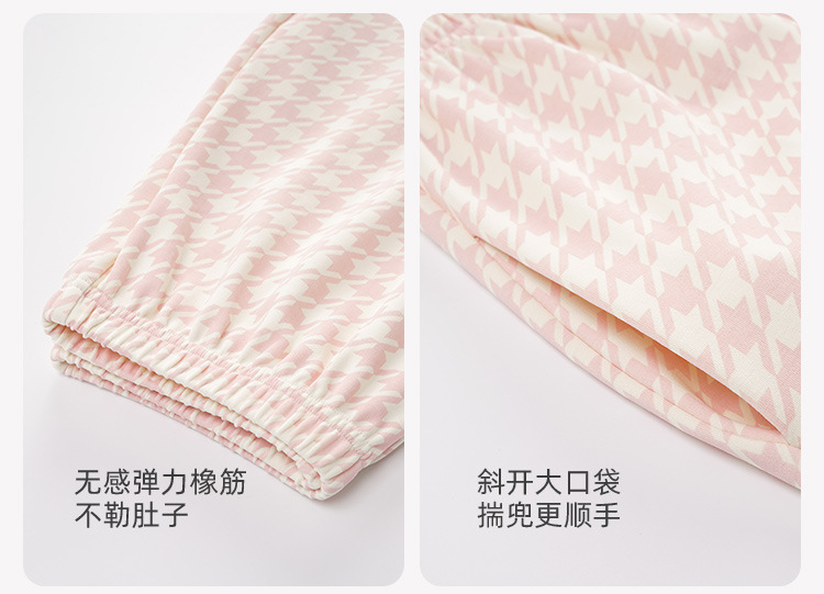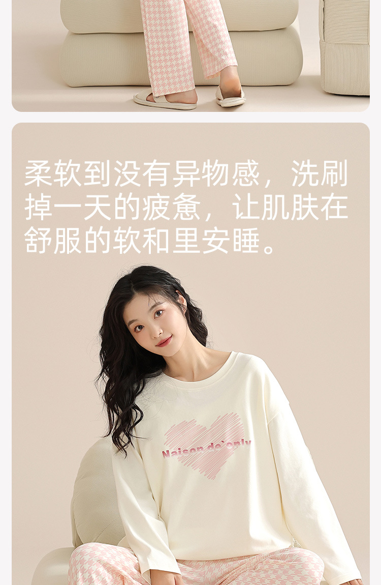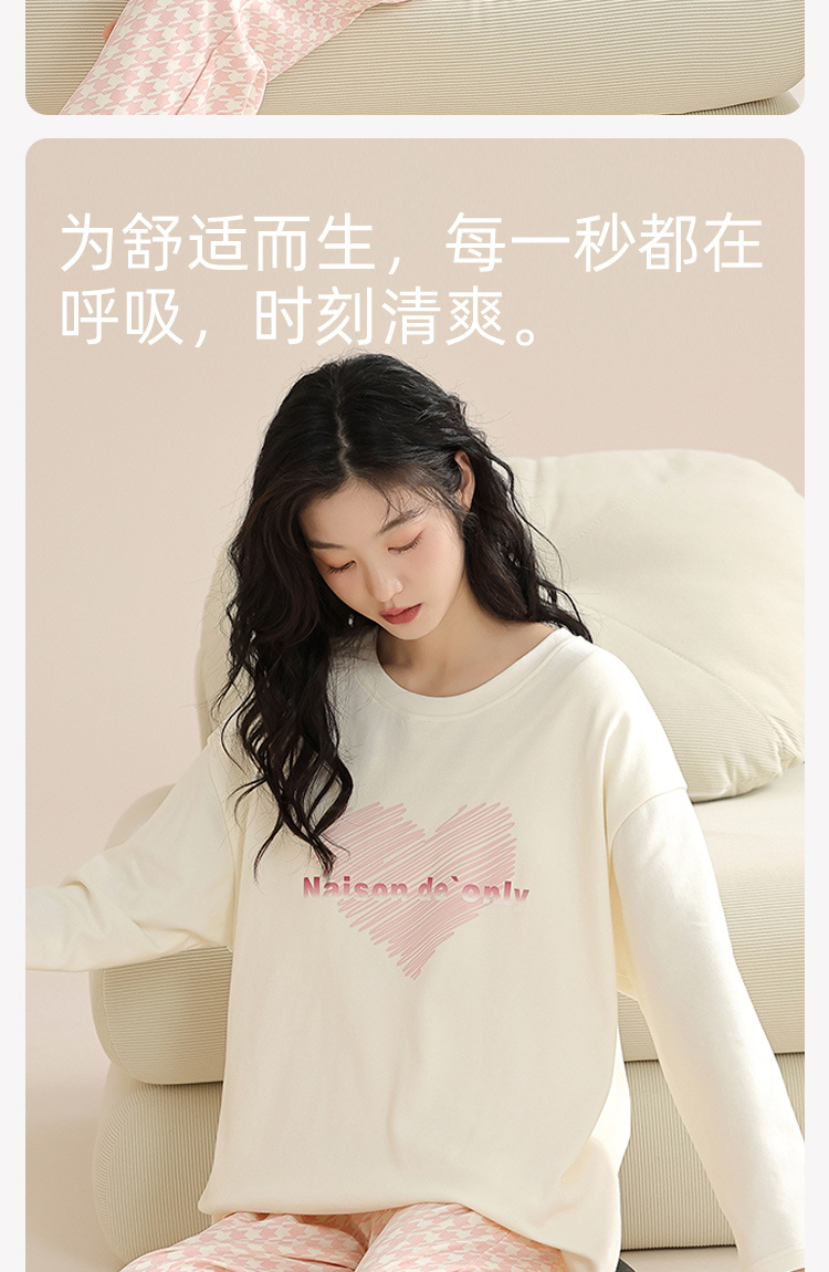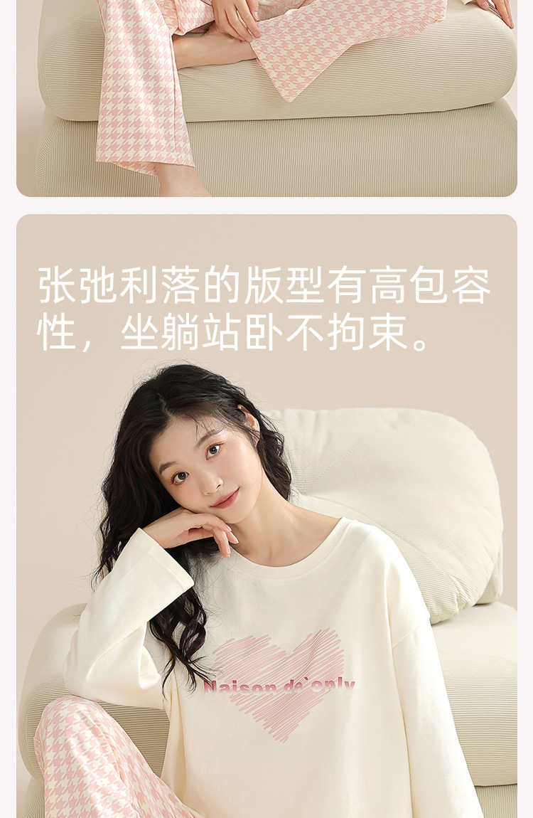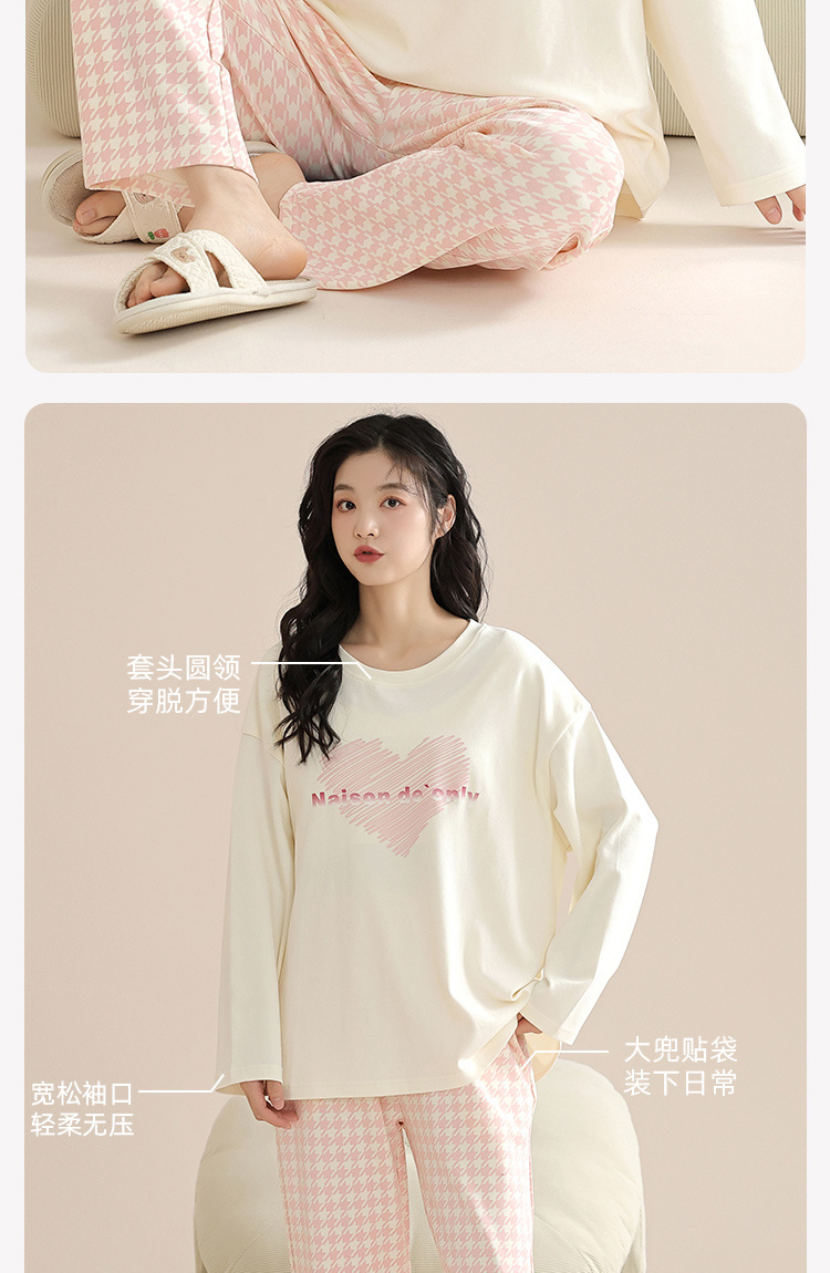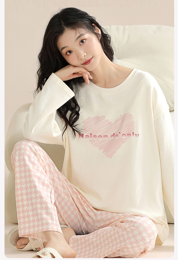 가슴 패드가있는 다양한 잠옷 여성용 가을과 겨울 라운드 넥 코튼 긴 소매 바지 가정용 의류는 투피스 세트 밖에서 착용 할 수 있습니다