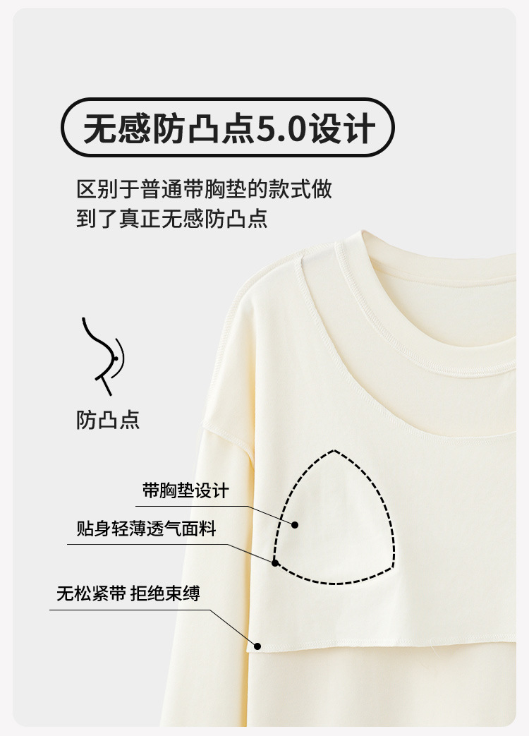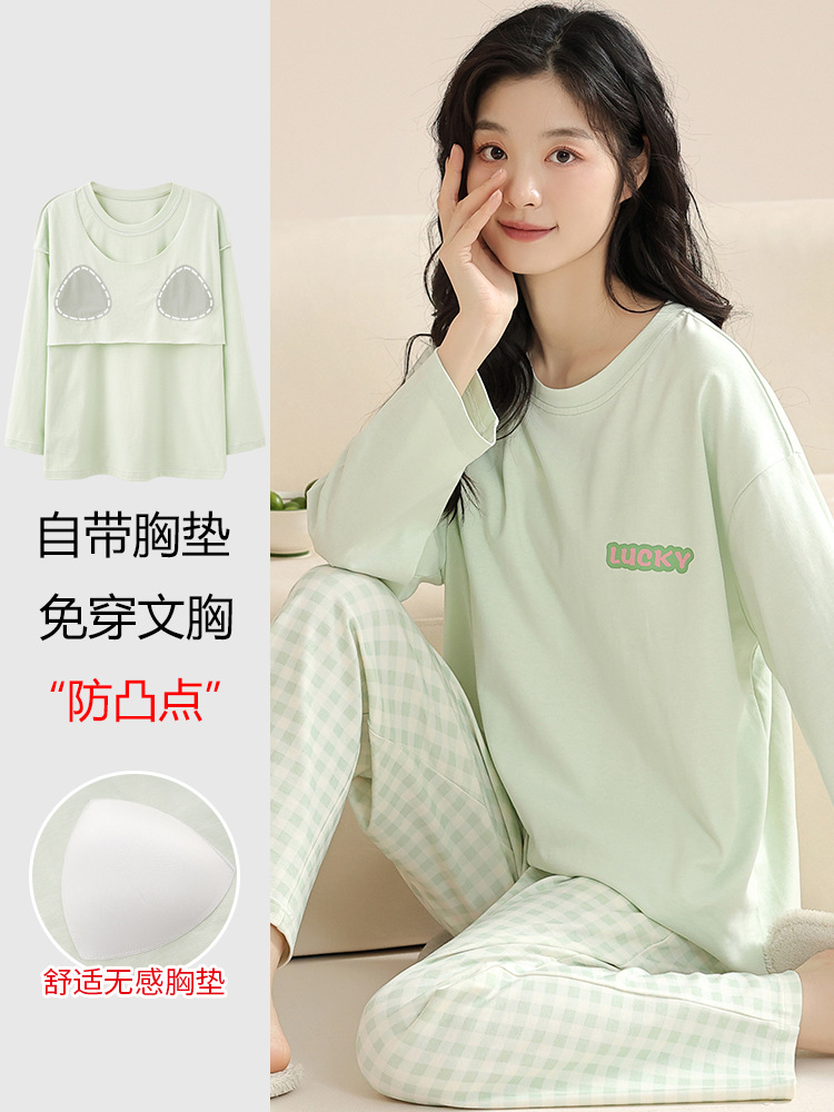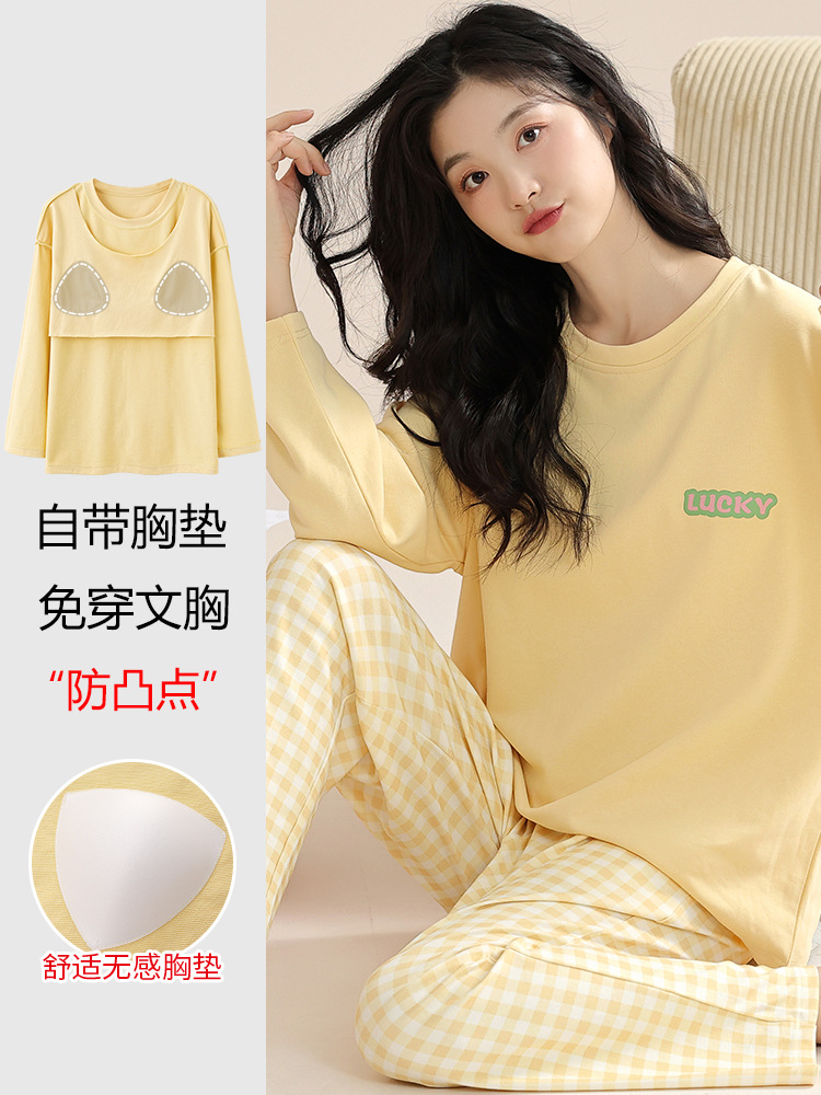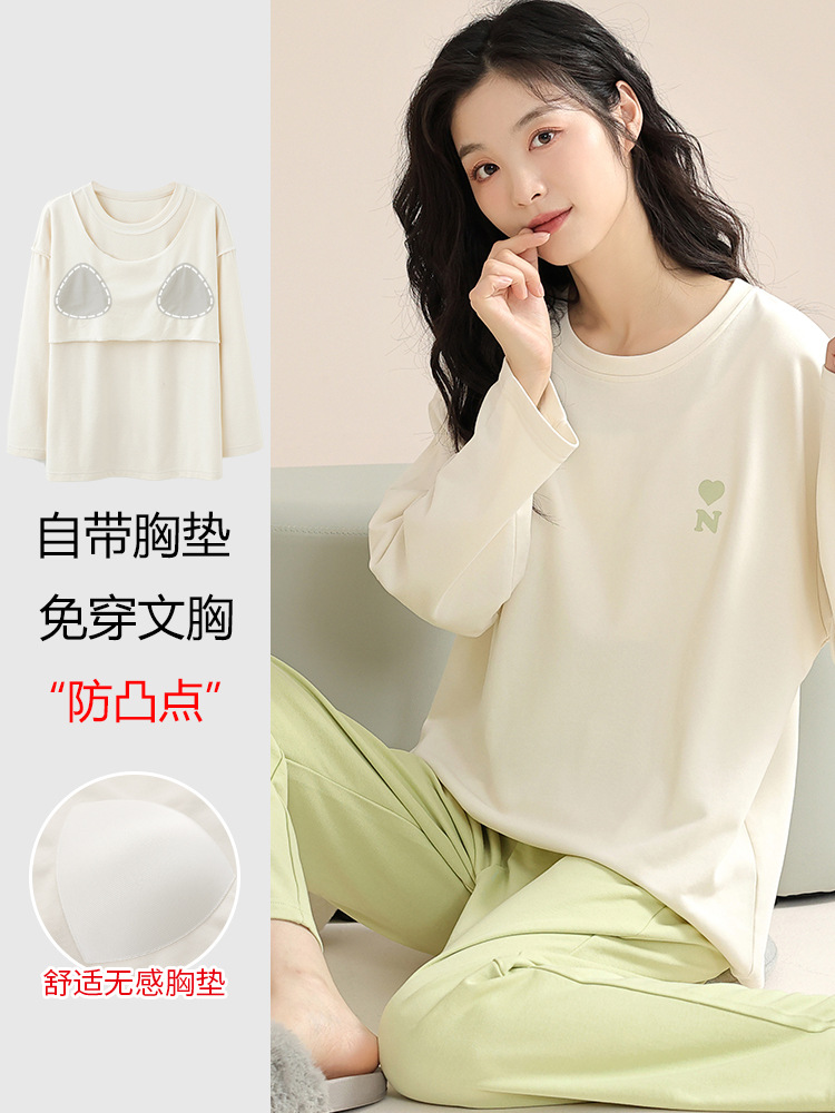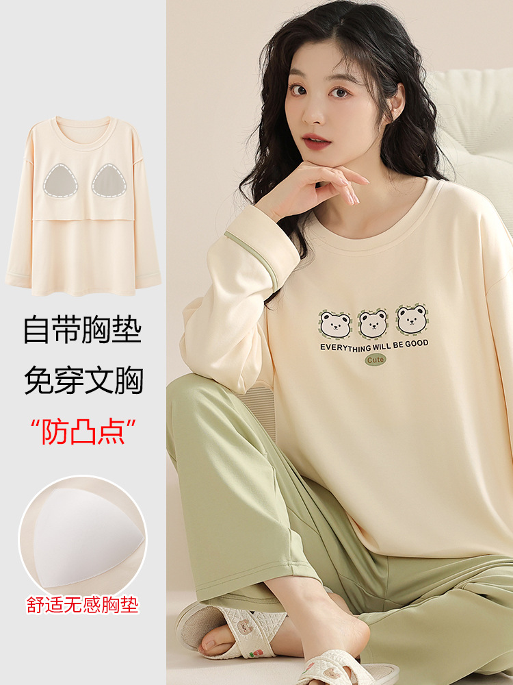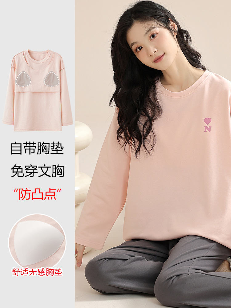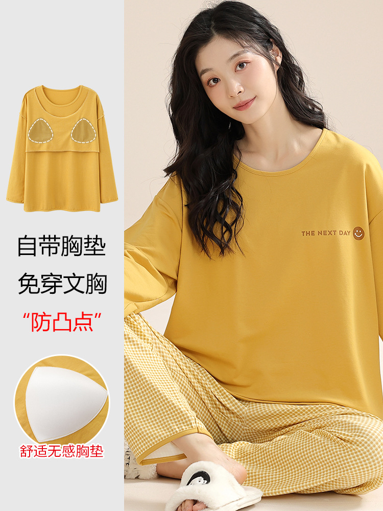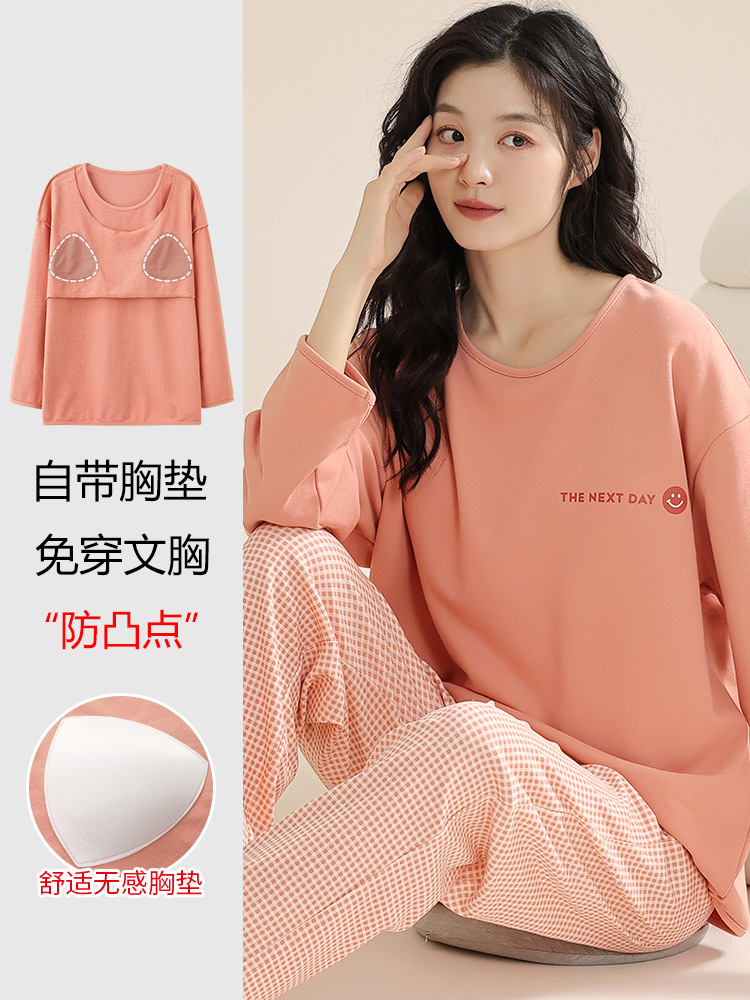 가슴 패드가있는 다양한 잠옷 여성용 가을과 겨울 라운드 넥 코튼 긴 소매 바지 가정용 의류는 투피스 세트 밖에서 착용 할 수 있습니다스토어 가기