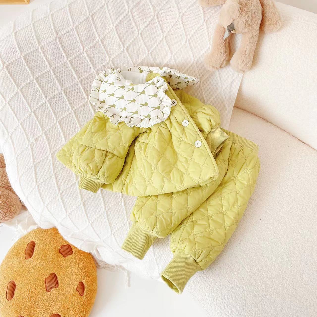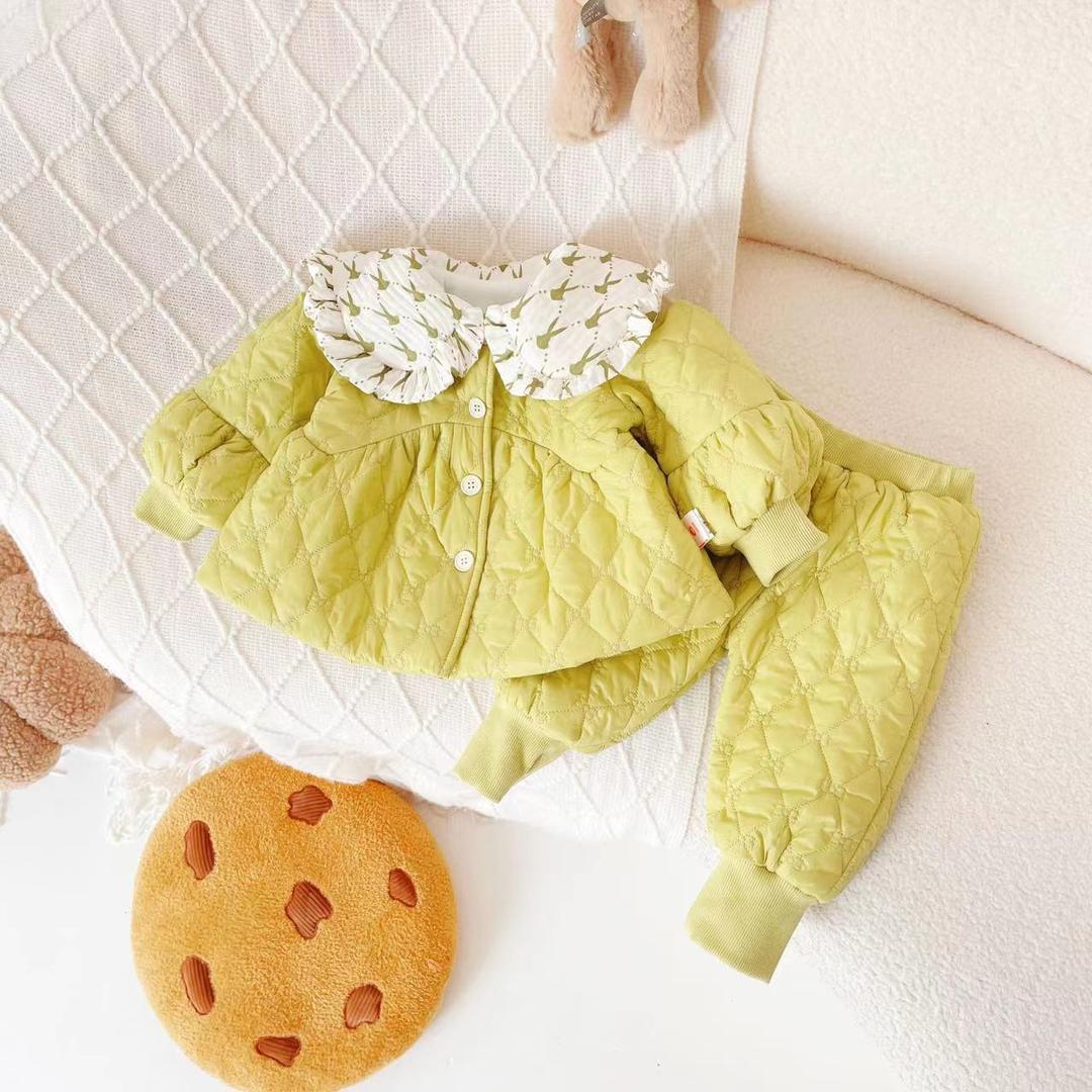 【재고 있음】아동용 기모 두꺼운 세트 2025 가을 겨울 신상 여아 세트 여자 아기 기모 두꺼운 투피스 세트