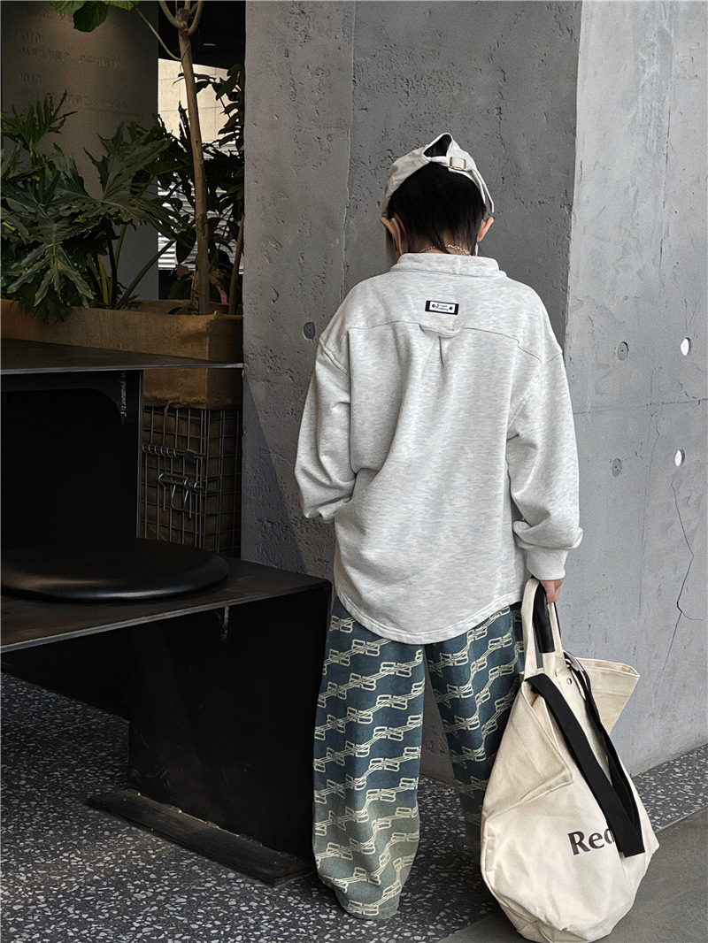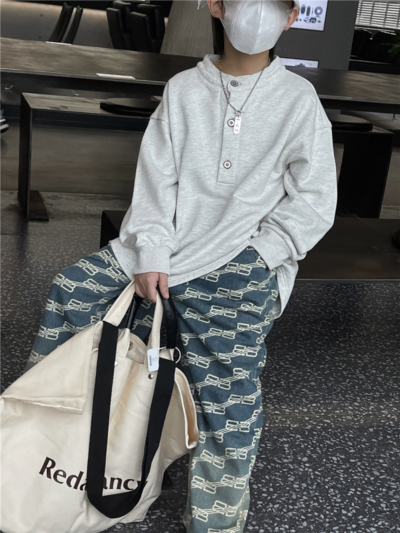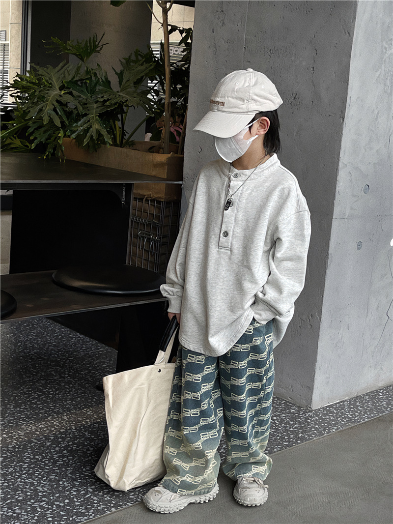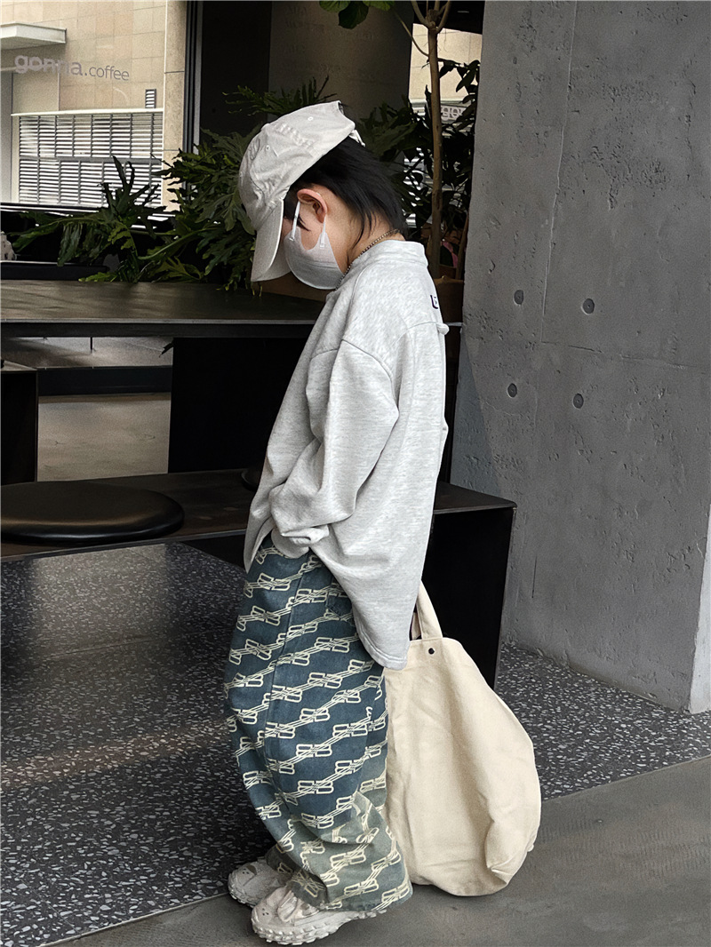 Baoduo 아동복 남아 청바지 가을 2023 새로운 서양 스타일 편지 캐주얼 바지 트렌디 잘 생긴 가을 스트레이트 바지스토어 가기