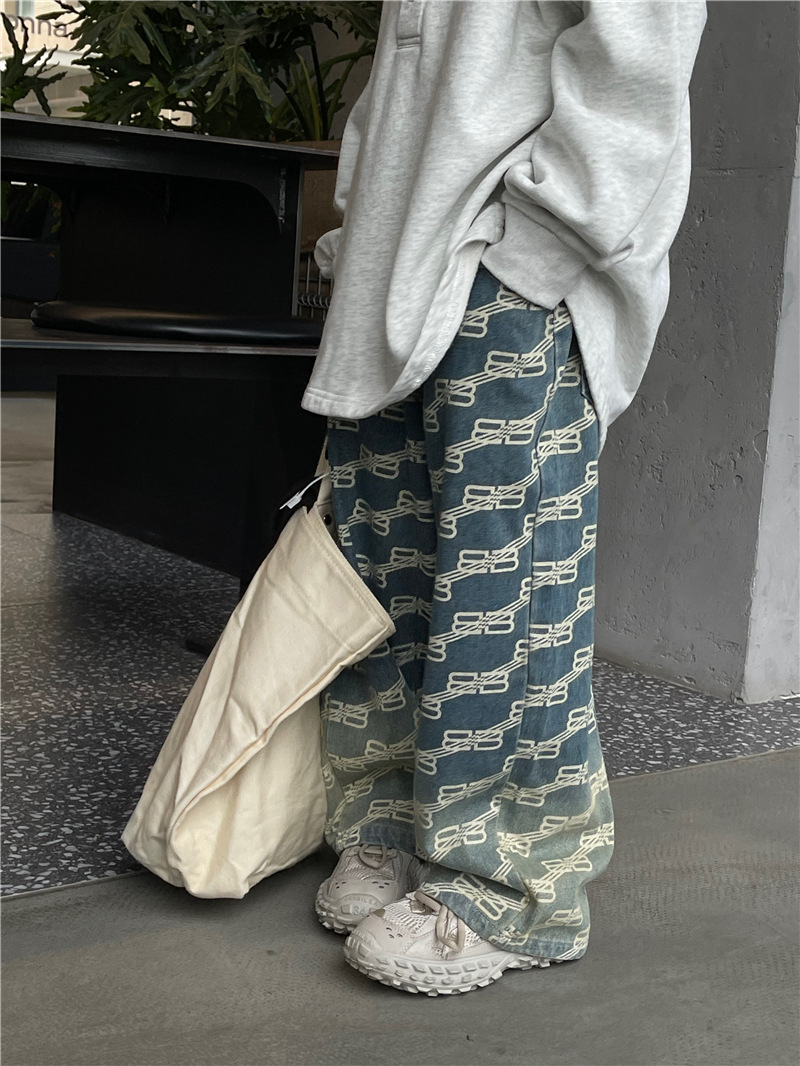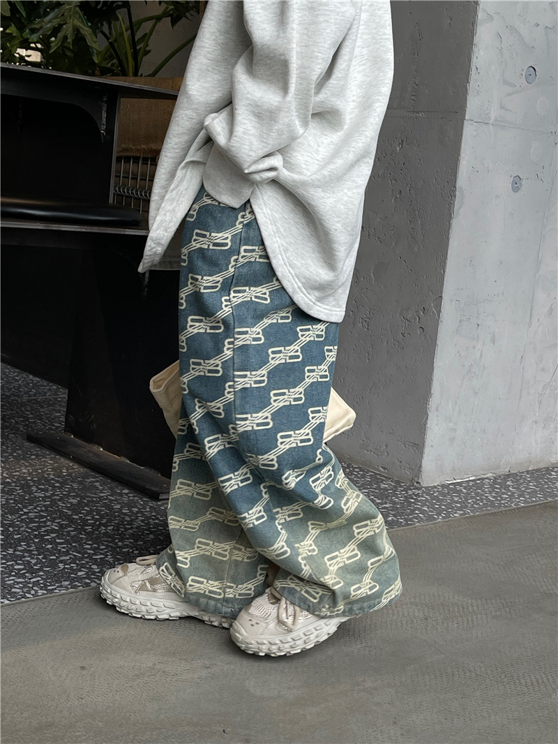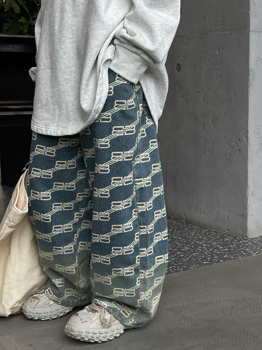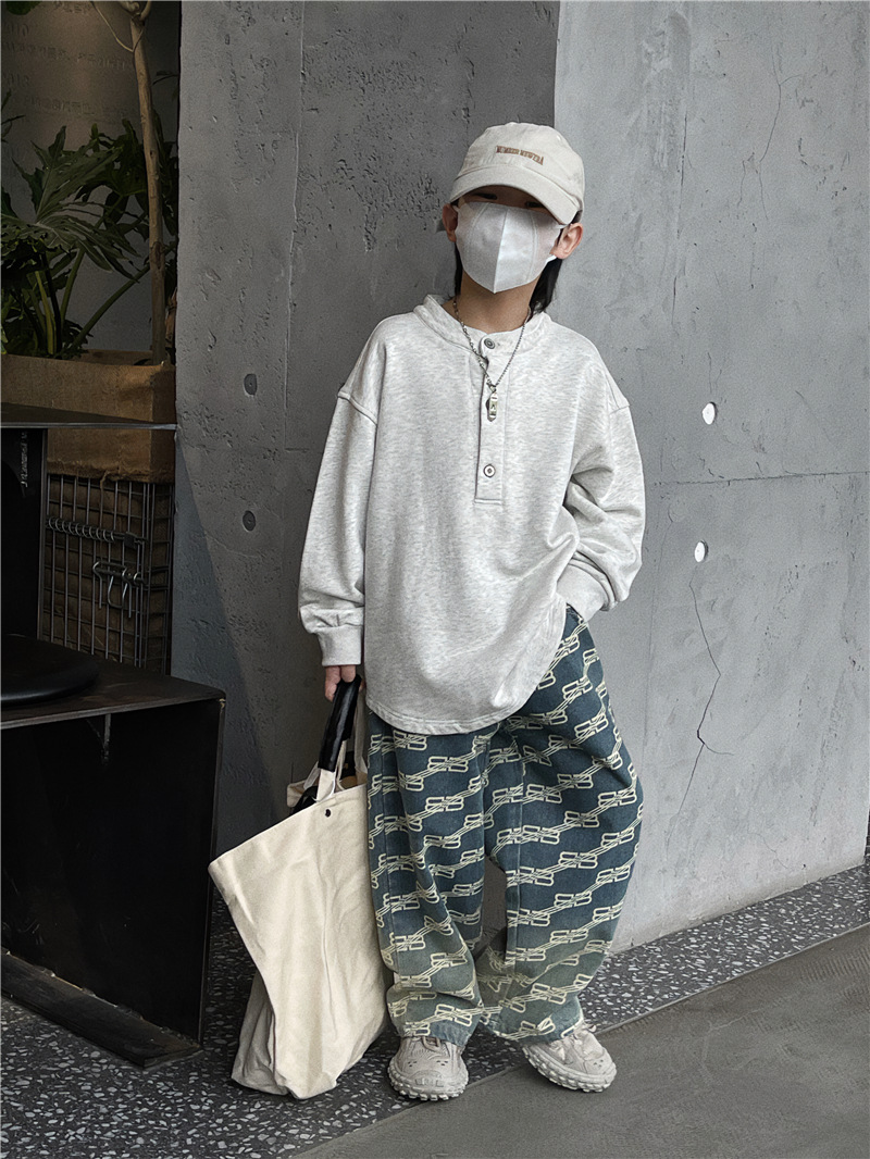 Baoduo 아동복 남아 청바지 가을 2023 새로운 서양 스타일 편지 캐주얼 바지 트렌디 잘 생긴 가을 스트레이트 바지스토어 가기