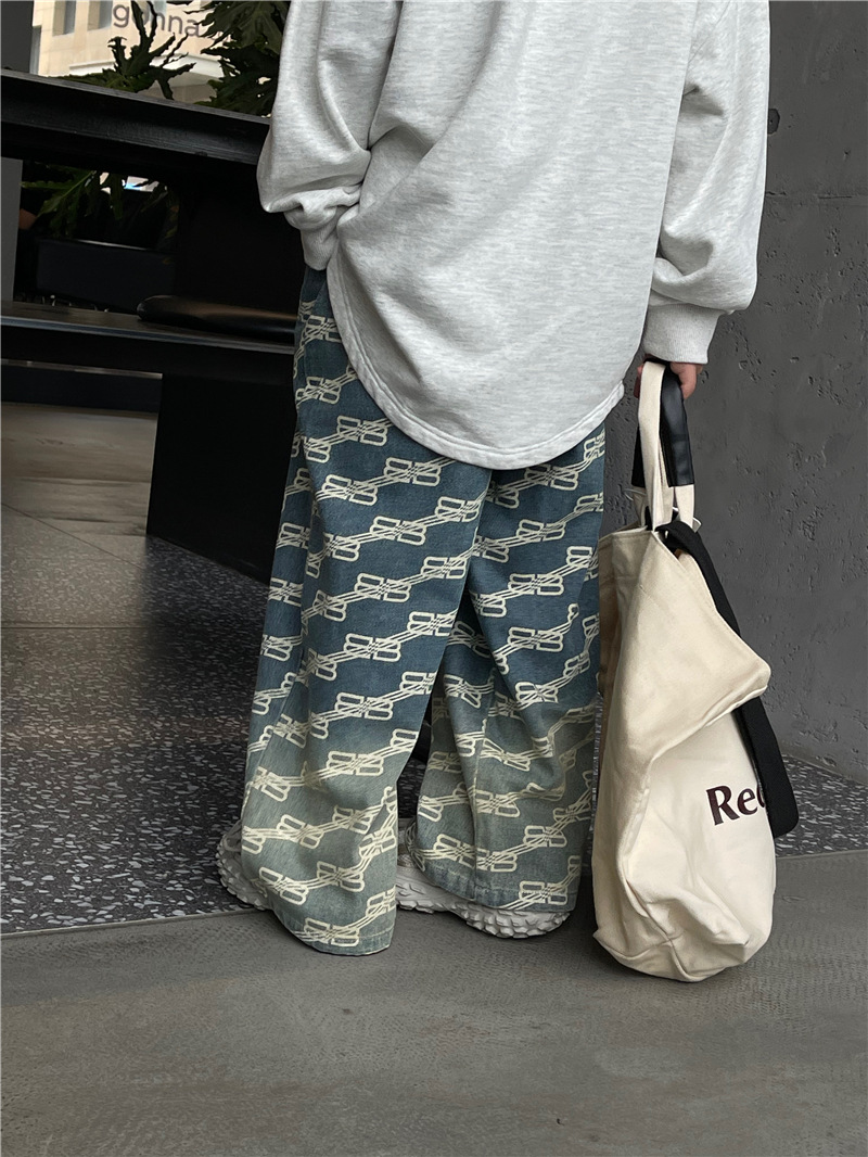 Baoduo 아동복 남아 청바지 가을 2023 새로운 서양 스타일 편지 캐주얼 바지 트렌디 잘 생긴 가을 스트레이트 바지