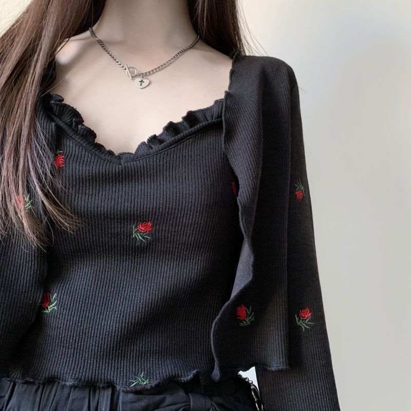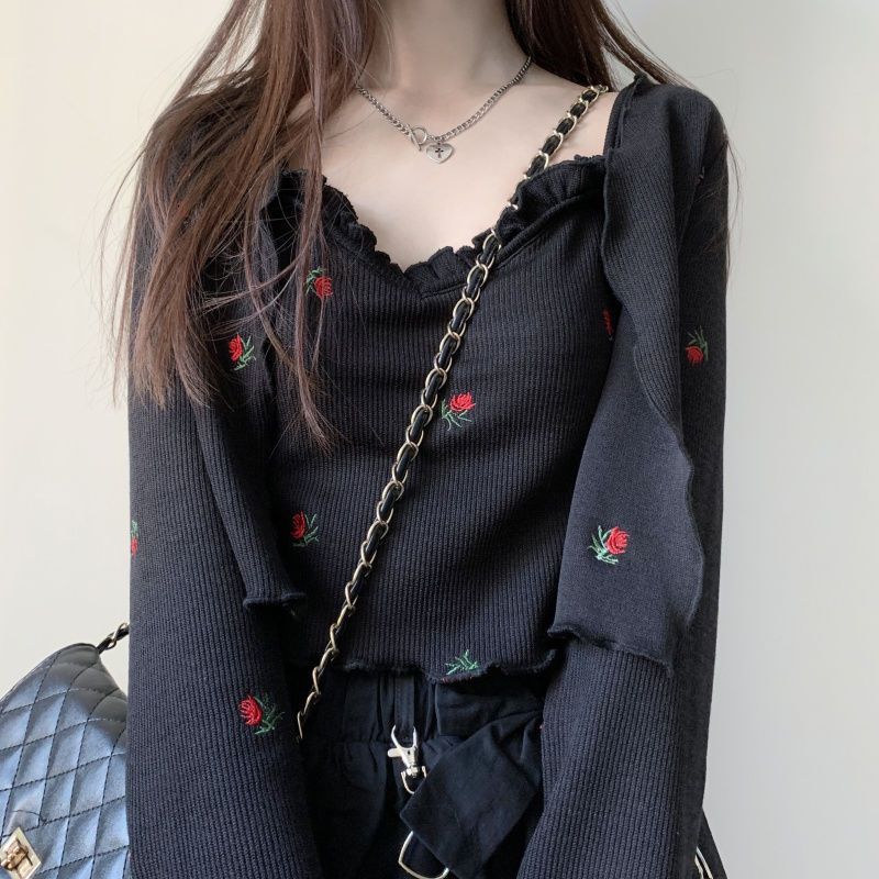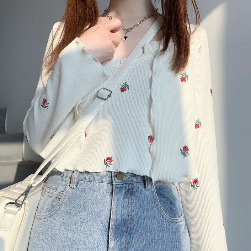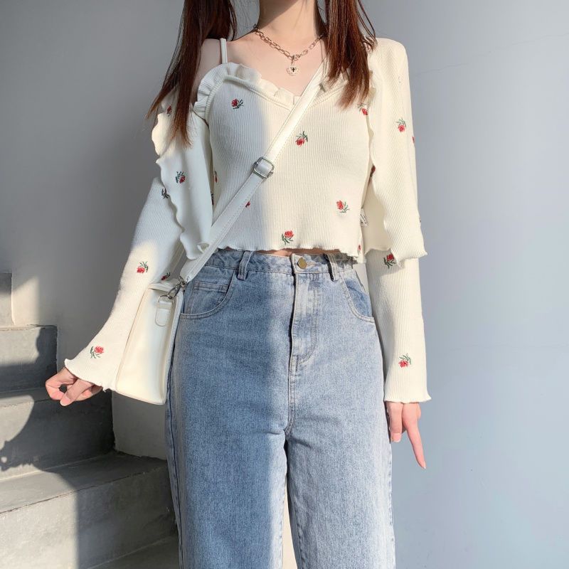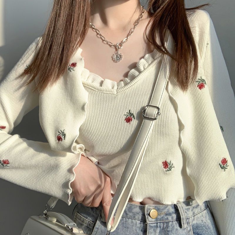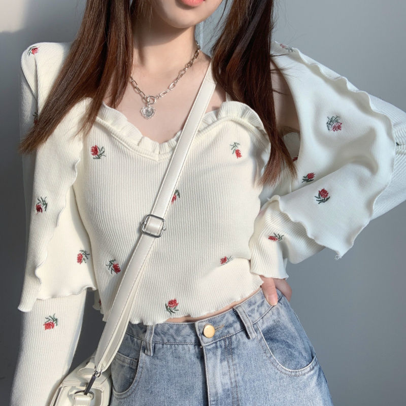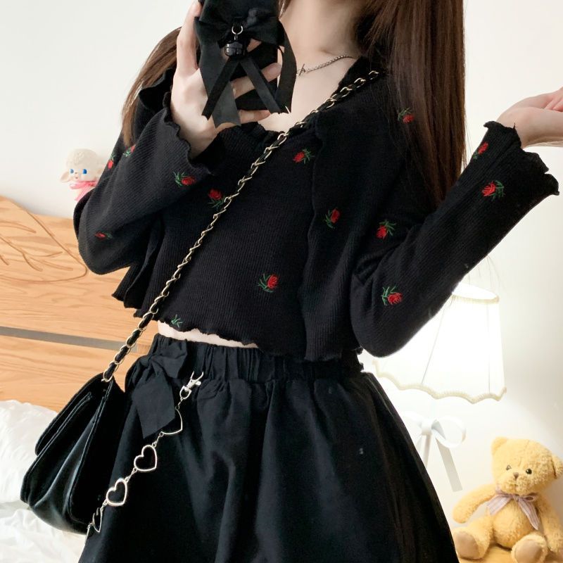 일본식 부드러운 소녀 자수 작은 슬링 봄 새로운 달콤한 소녀 느슨한 긴 소매 가디건 투피스 세트스토어 가기