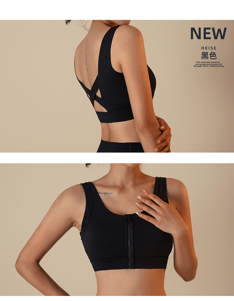 조정 가능한 전면 지퍼 스포츠 브라 충격 방지 통기성 무테 스포츠 조끼 요가 아름다운 등 속옷