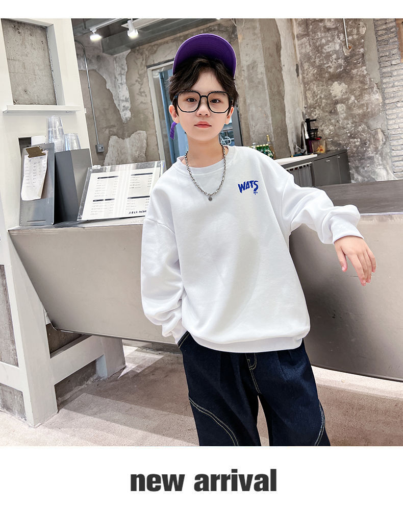 소년 스웨터 봄과 가을 새로운 한국 라운드 넥 앞면과 뒷면 인쇄 긴 소매 가을과 겨울 유행 멋진 편지 탑