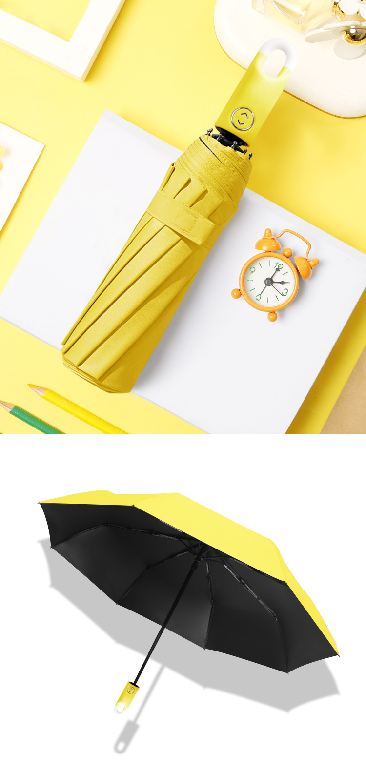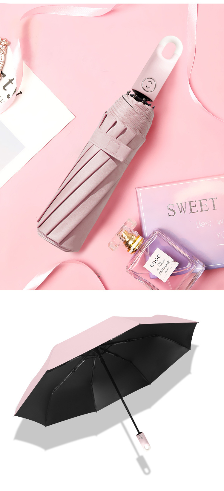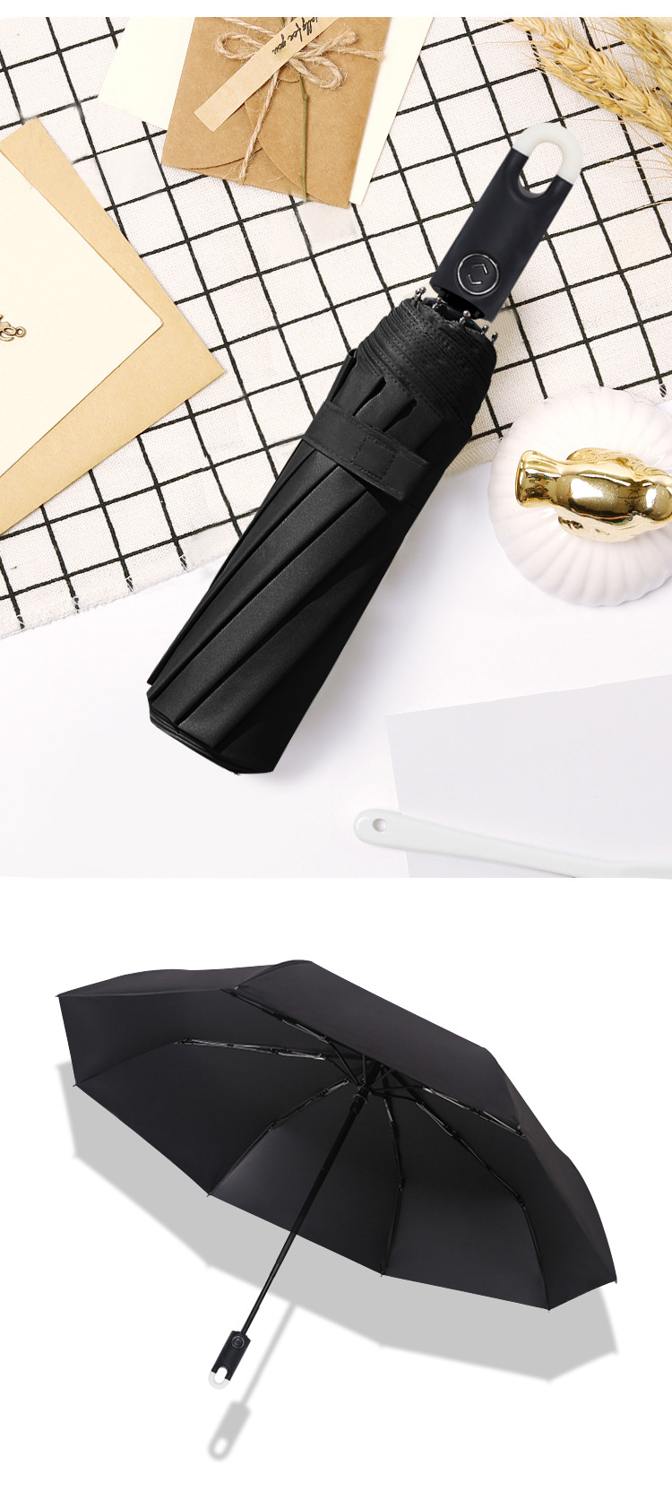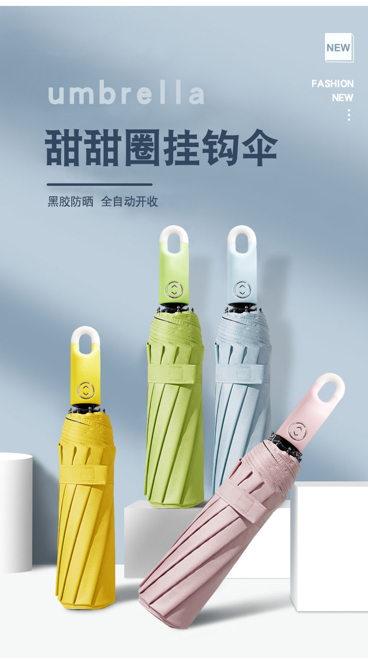 도넛 후크 우산 블랙 고무 자동 우산 잠금 맑고 비 이중 목적 태양 보호 UV 보호 태양 우산 차양