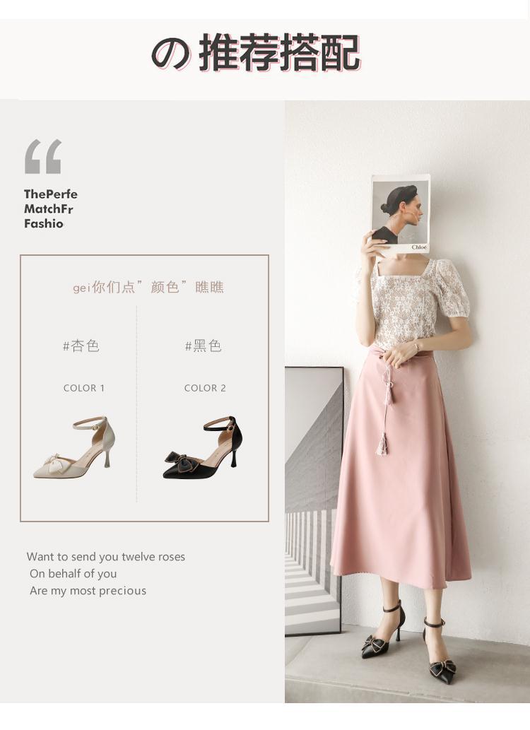 여성을위한 하이힐 신발 가을 새로운 스타일 활 한 단어 버클 스트랩 스틸레토 캐주얼 인터넷 연예인 중공 여성 싱글 신발 여성 신발