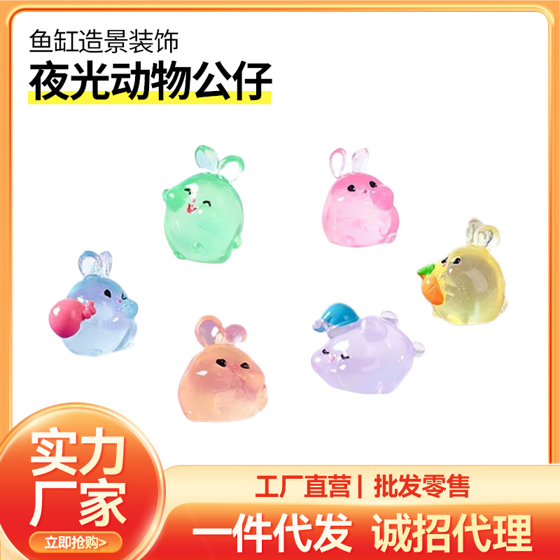 마이크로 풍경 귀여운 빛나는 뚱뚱한 토끼 동물 인형 장식 액세서리 수족관 조경 작은 장식품스토어 가기