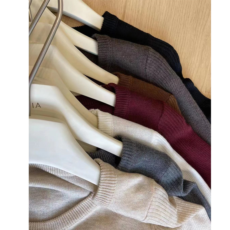 韩国简约高级感灰色U领针织衫女秋冬季百搭新款修身显瘦内搭打底