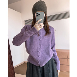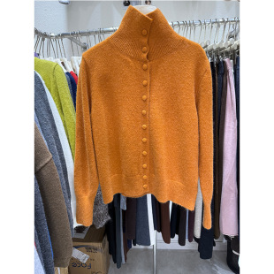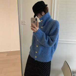 十三行新款韩系秋冬包扣立领针织开衫女宽松欧洲站纯色慵懒风毛衣