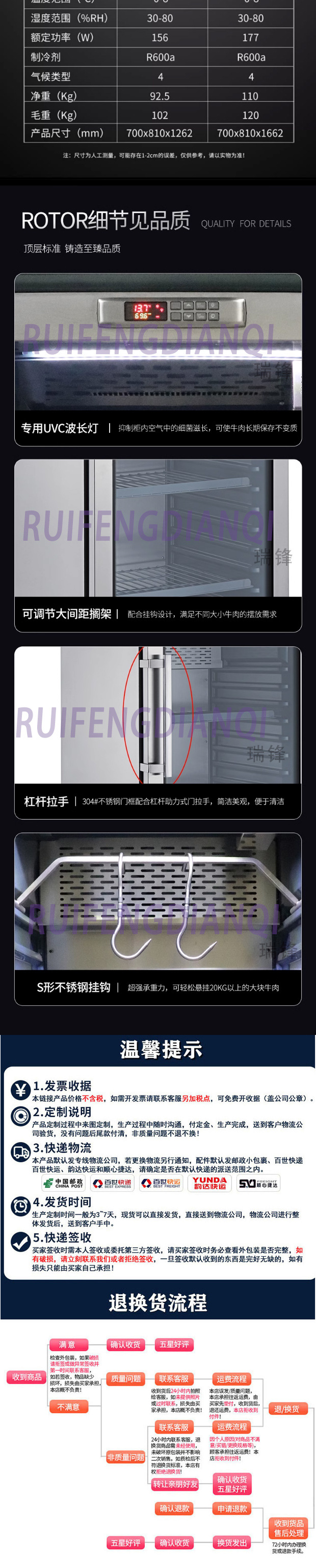 Ruifeng 건식 쇠고기 스테이크 산성 숙성 캐비닛 스테인레스 스틸 상업용 항온 캐비닛 서양 스테이크 냉장 신선한 고기 캐비닛스토어 가기