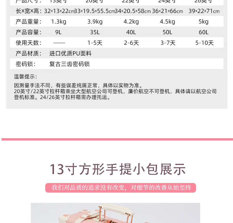 빈티지 트롤리 케이스 13inch 작은 화장품 케이스 26inch 대용량 레트로 여행 가방 유니버설 휠 빈티지 케이스 도매스토어 가기