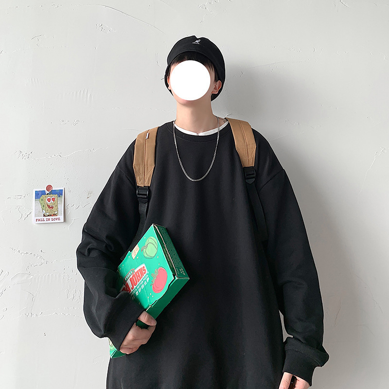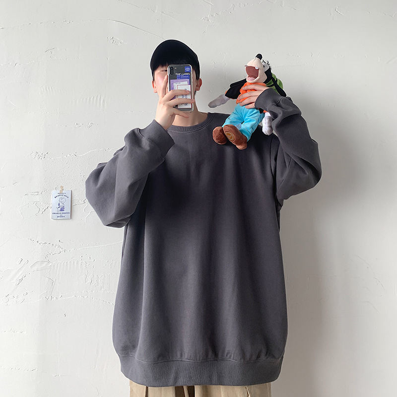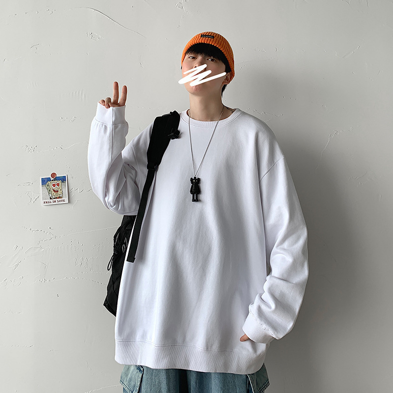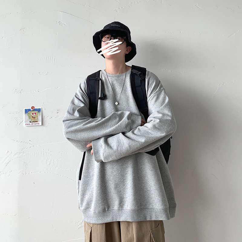 2020秋季新款长袖卫衣男日系宽松大码男装港风情侣纯色外套潮上衣