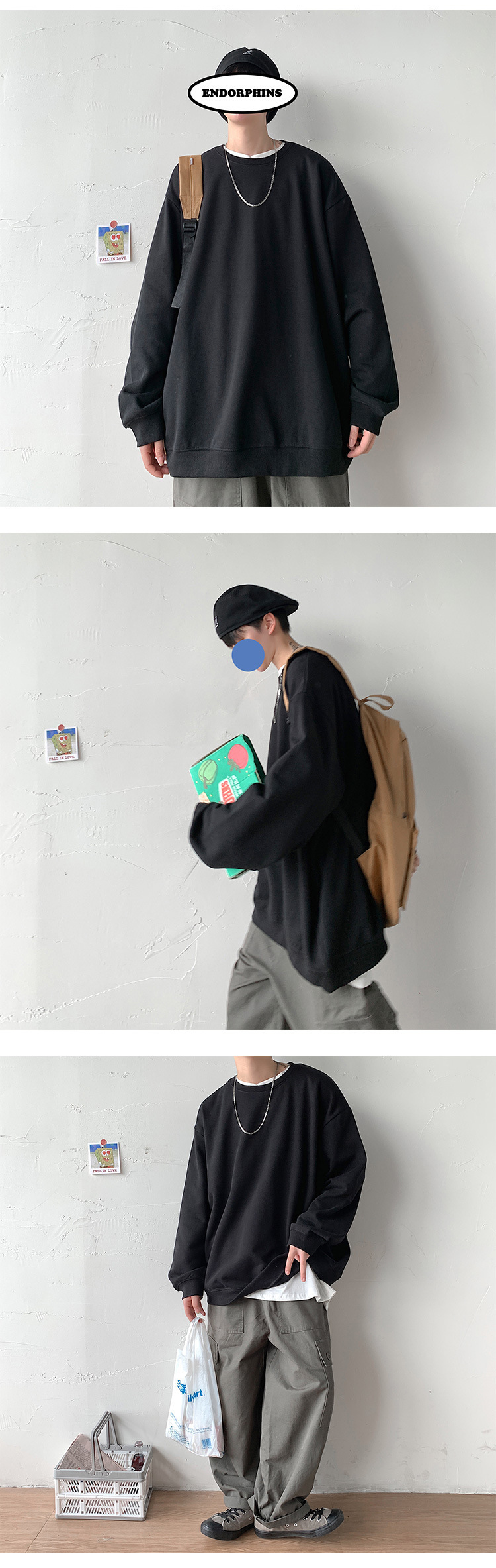 커플 스웨터 남성용 봄과 가을 긴팔 티셔츠 느슨한 모든 매치 캐주얼 플러스 사이즈 크루넥 학생 남성용 스웨터스토어 가기