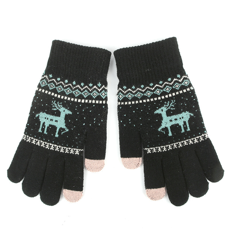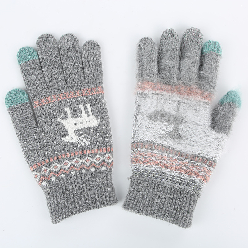 겨울 기모 새끼 사슴 커플 다기능 자카드 터치 스크린 장갑 두꺼운 손가락 니트 사이클링 방풍 및 따뜻한 장갑