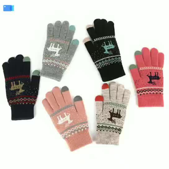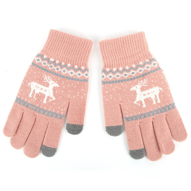 겨울 기모 새끼 사슴 커플 다기능 자카드 터치 스크린 장갑 두꺼운 손가락 니트 사이클링 방풍 및 따뜻한 장갑스토어 가기
