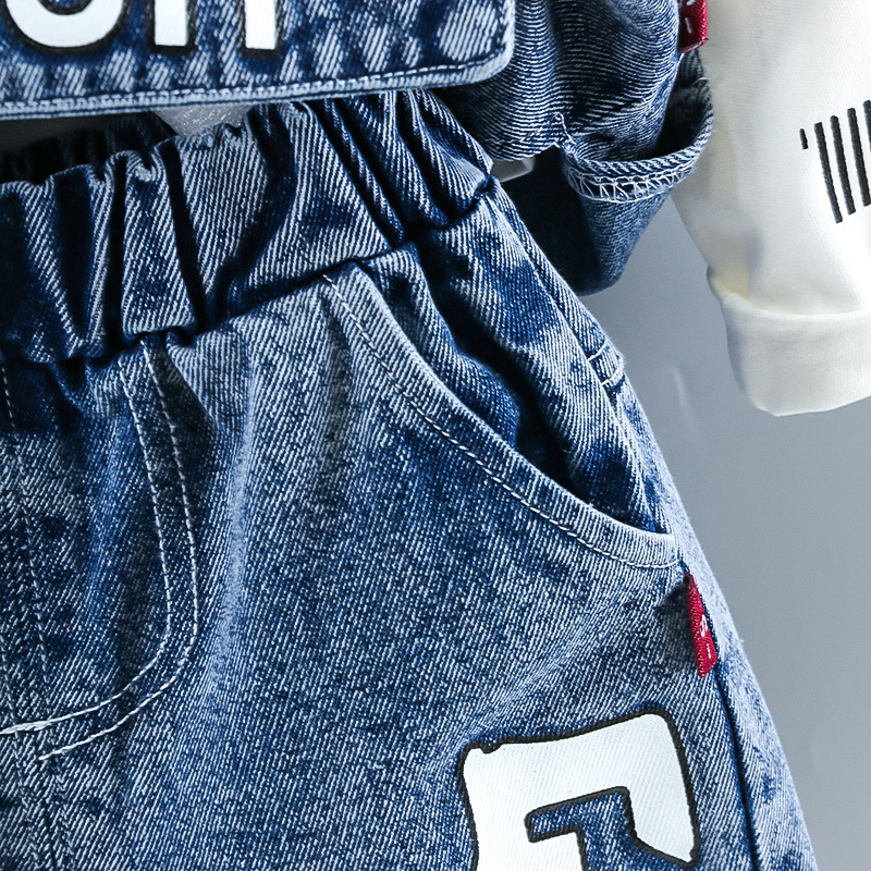 2023 아동복 봄 도매 데님 3 피스 소년 유행 후드 데님 세트 조수 아동 의류 머리카락의 세대