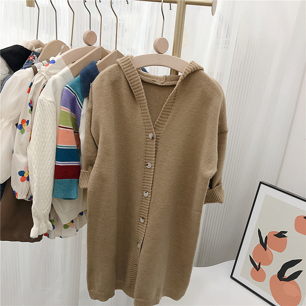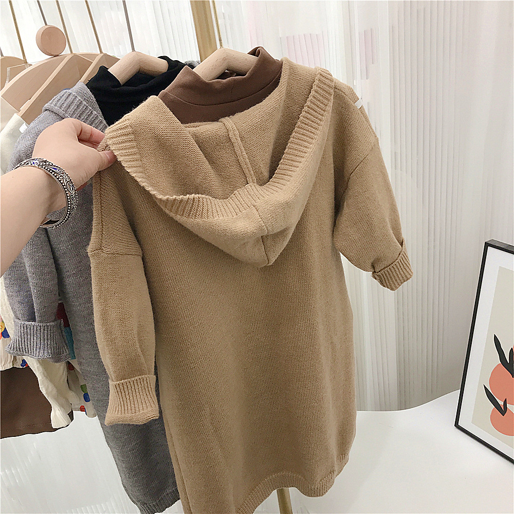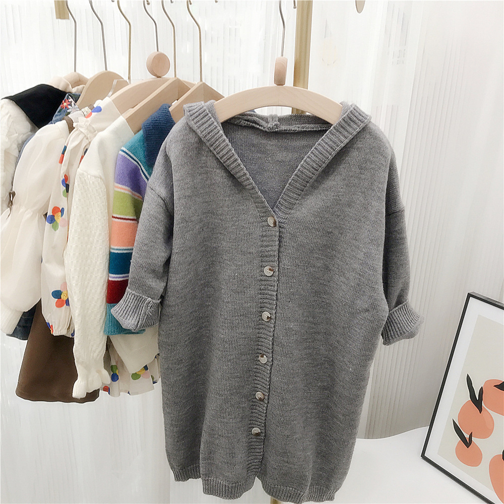 여자 긴 스웨터 카디건 봄과 가을 새로운 어린이 단색 후드 탑 아기 가을 니트 코트 대외 무역스토어 가기