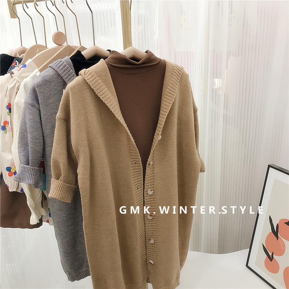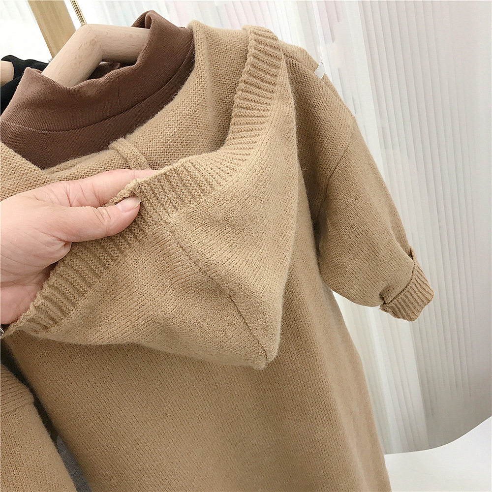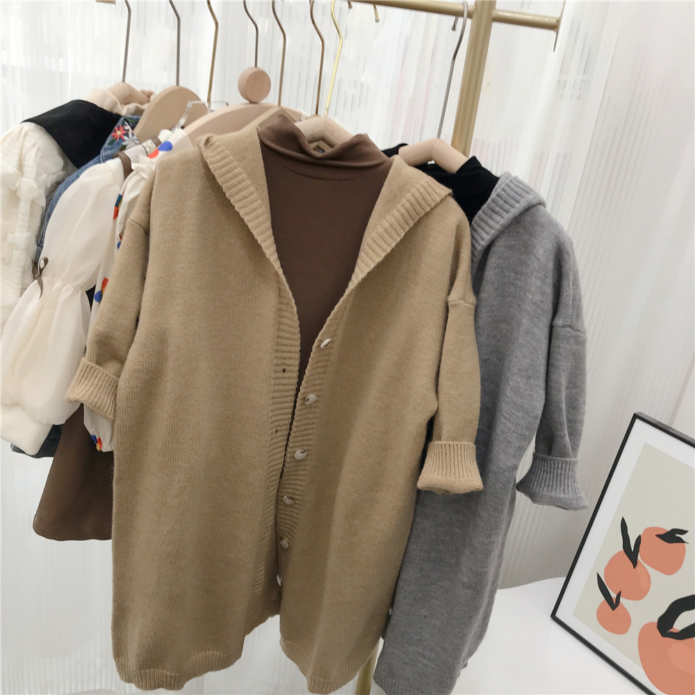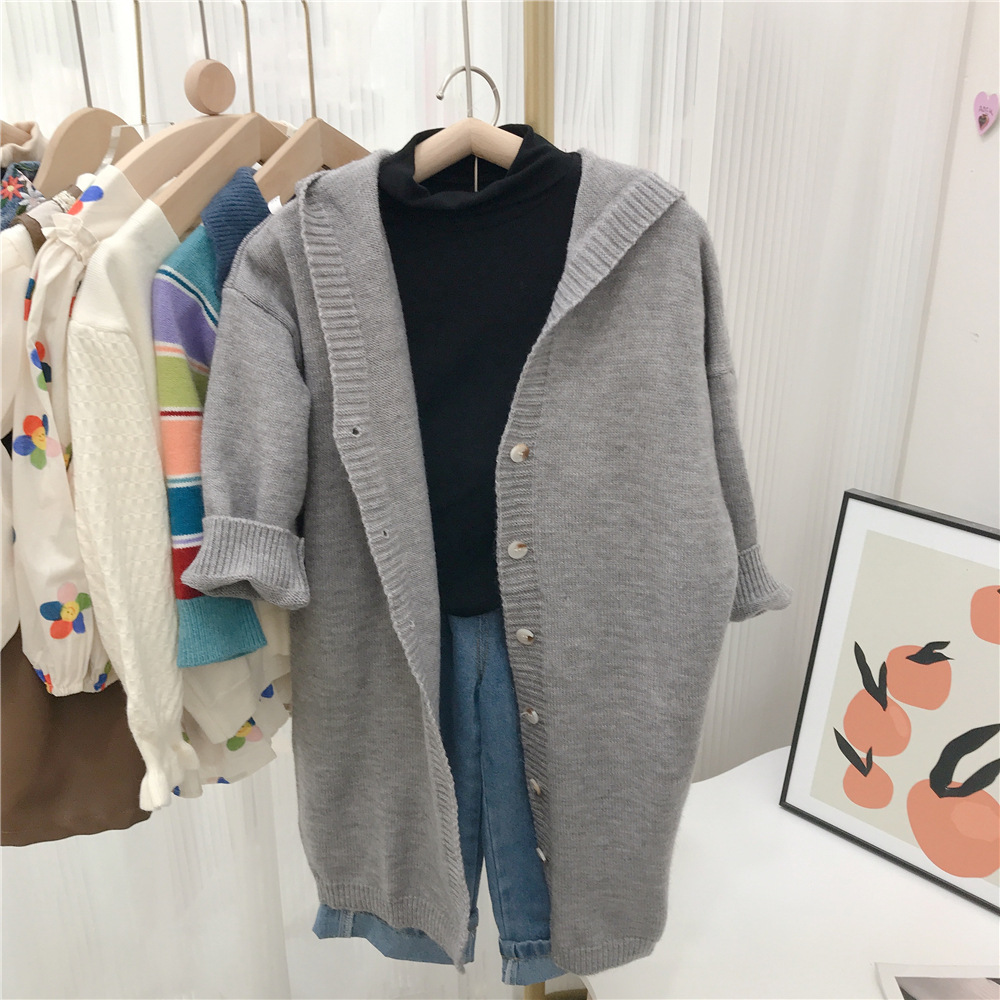 여자 긴 스웨터 카디건 봄과 가을 새로운 어린이 단색 후드 탑 아기 가을 니트 코트 대외 무역스토어 가기