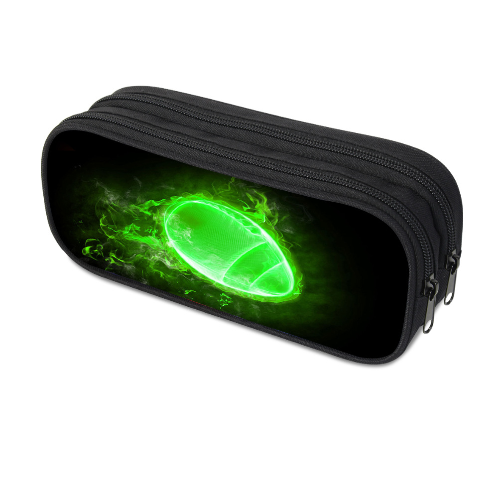 绿光火焰橄榄球3D印花双层笔袋返校季学生笔袋创意个性女士化妆包