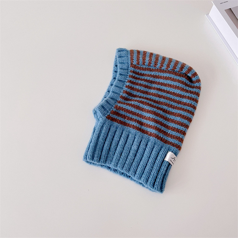 拼色条纹帽子围脖一体