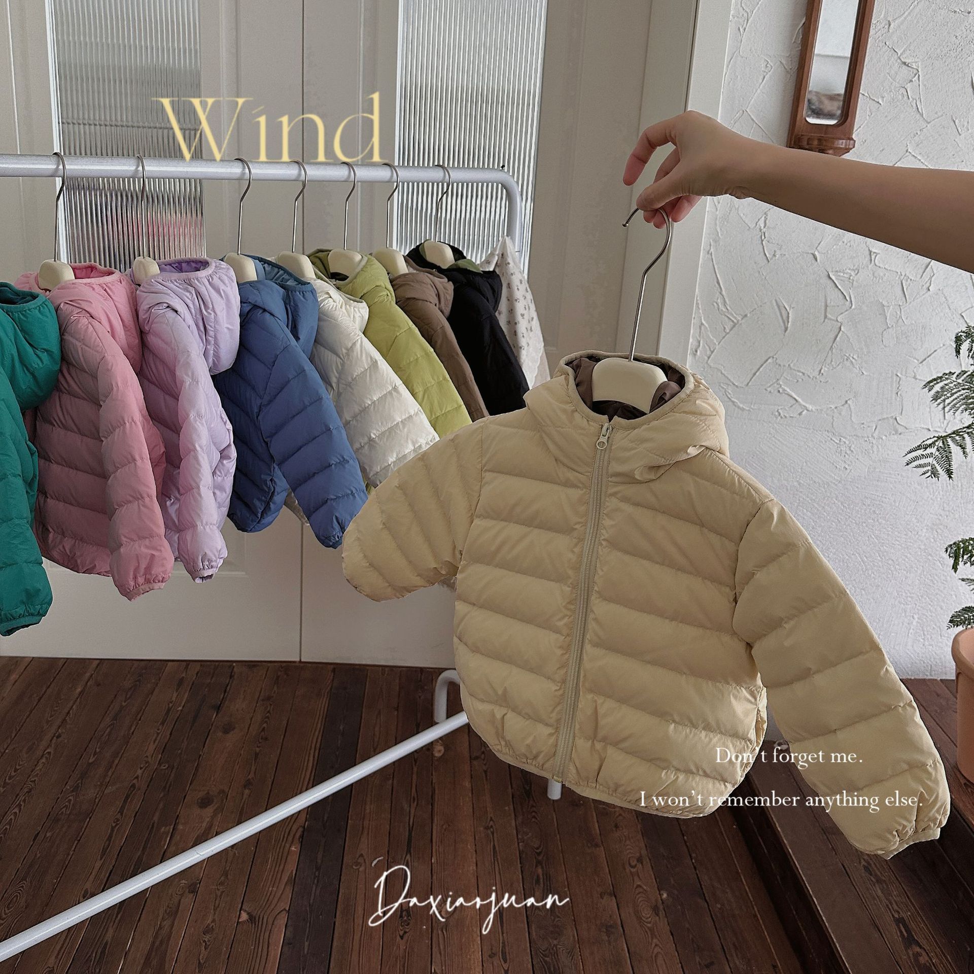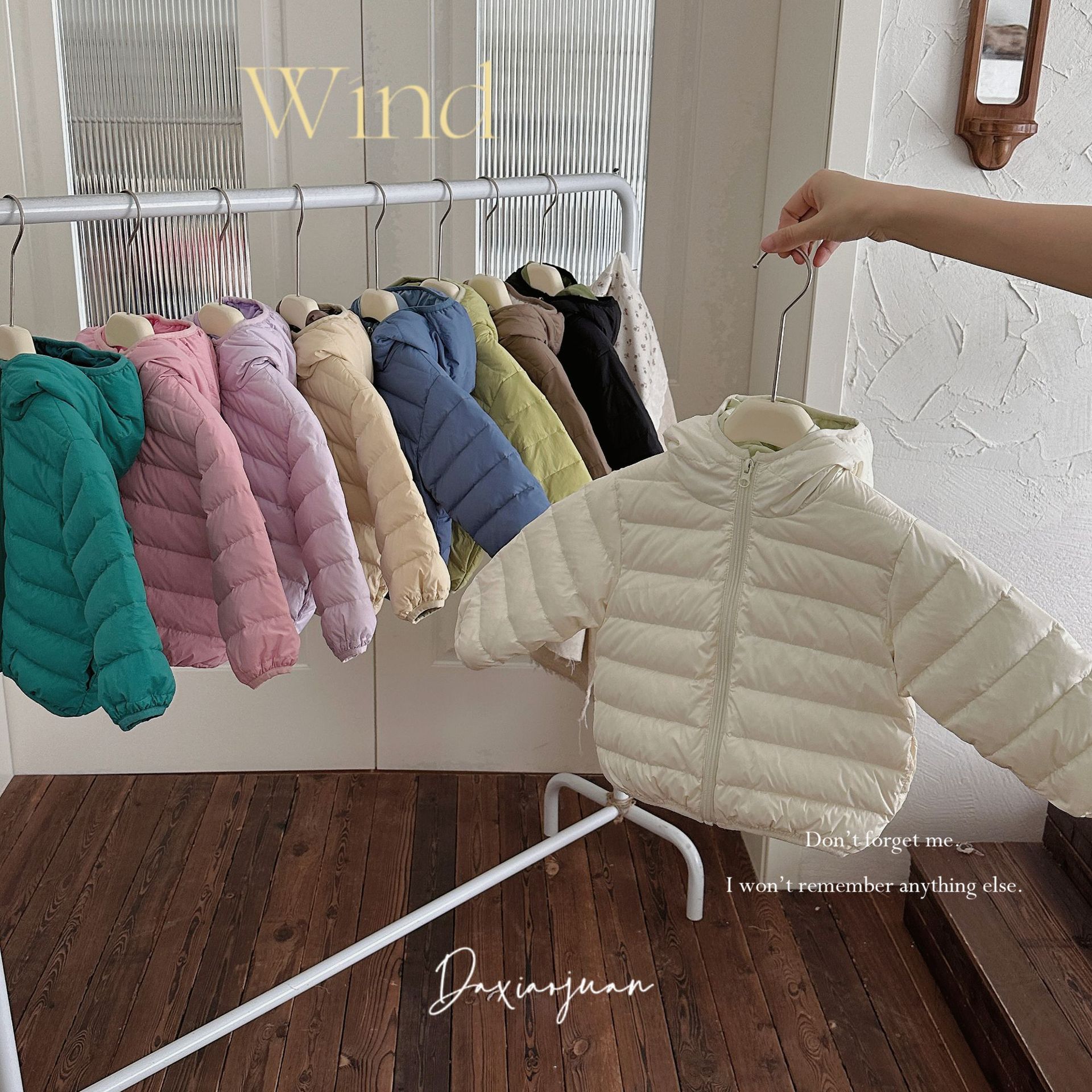 재고 사이즈 롤 23 가을/겨울 어린이 90 화이트 오리 다운 단색 경량 다운 재킷 후드 재킷 유행 아동 의류