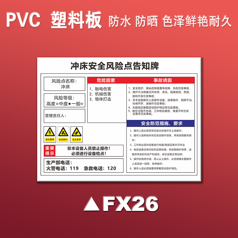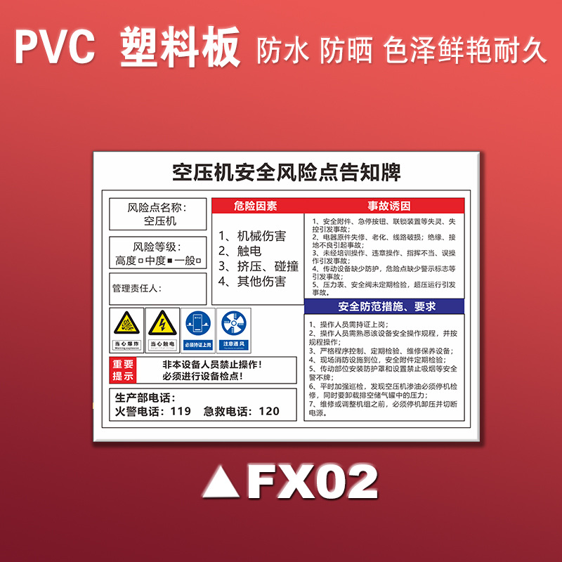 안전 위험 포인트 알림 카드 기계 장비 전원 분배 룸 기계 사출 성형 기계 공기 압축기 경고판