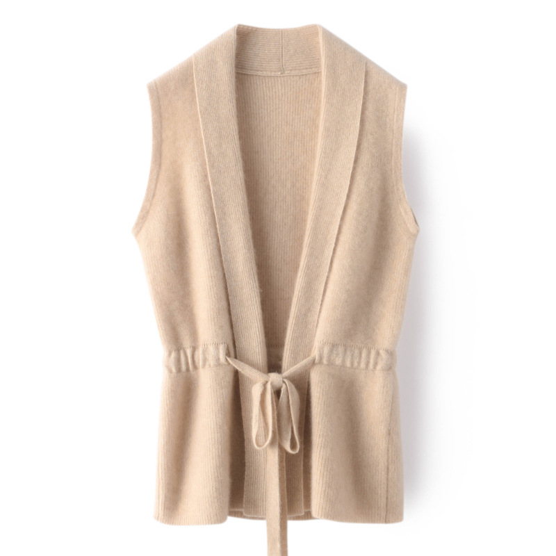 100 울 카디건 조끼 여성의 새로운 슬림하고 세련된 민소매 니트 바닥 스웨터 조끼