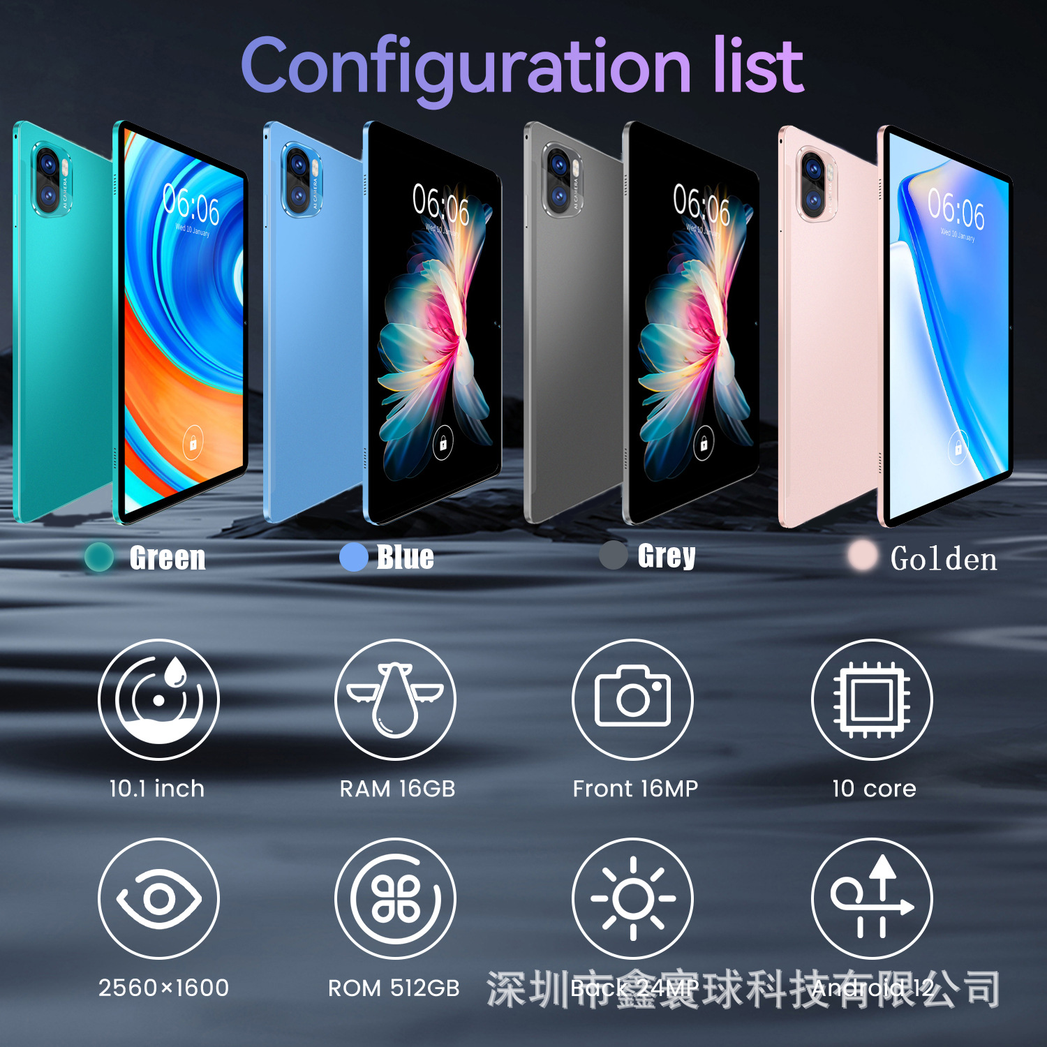 屏幕尺寸:10英寸IPS高清屏(显示屏采用曲线优美的圆角设计, 英寸是显示屏圆角拉伸为直角时的对角线长度)