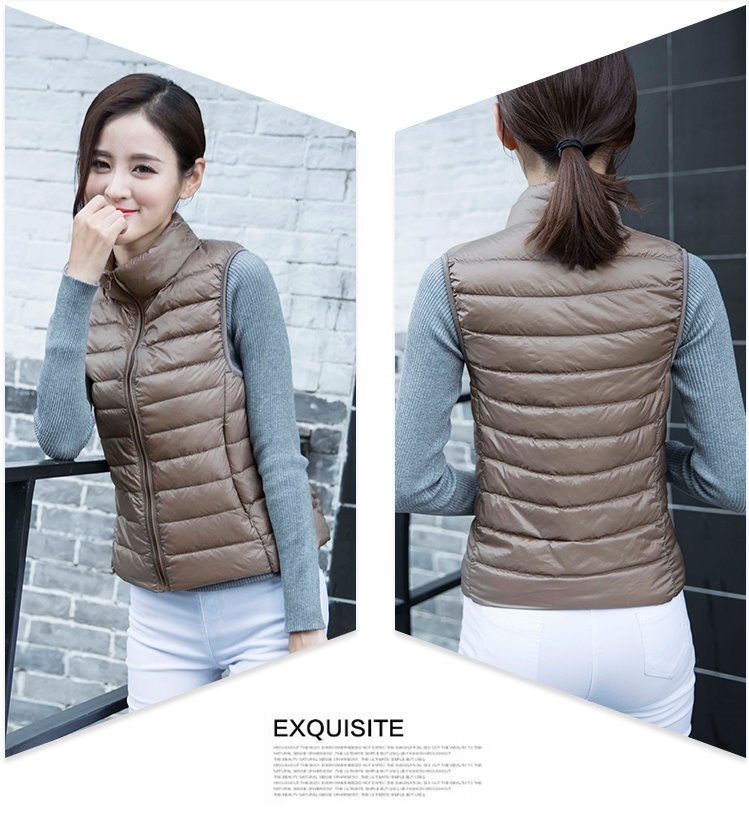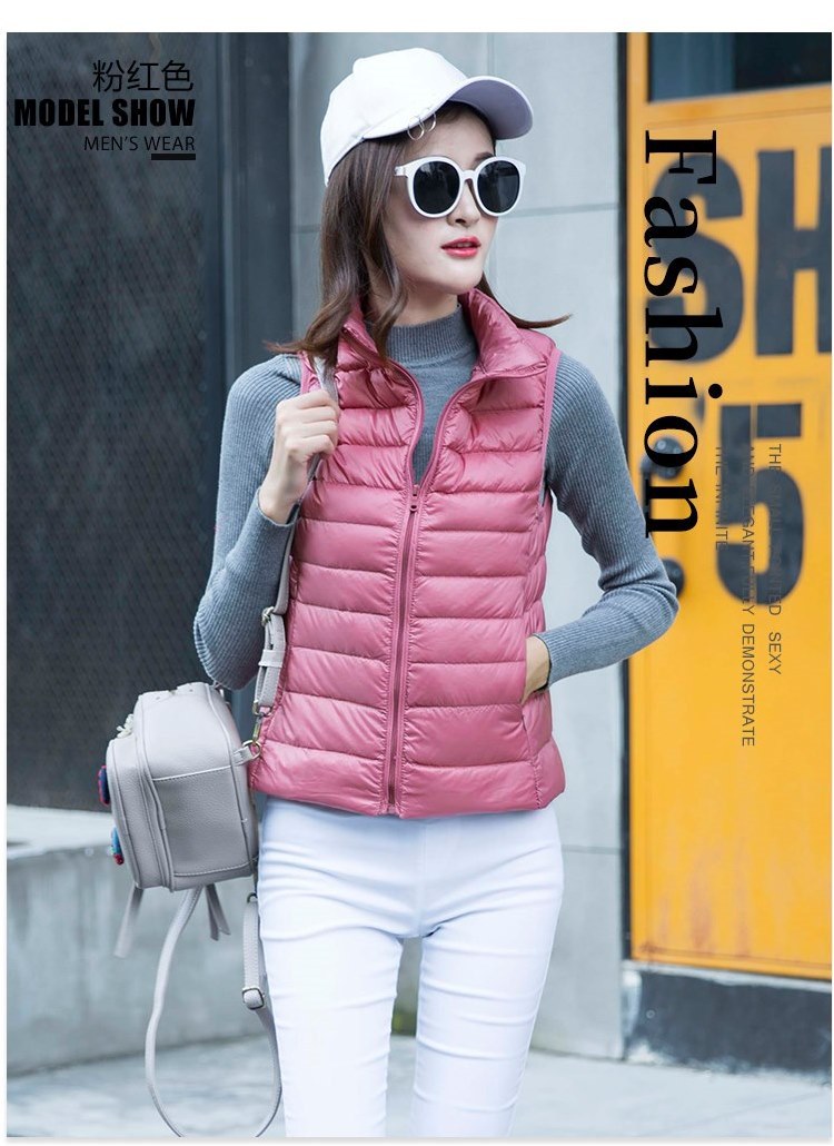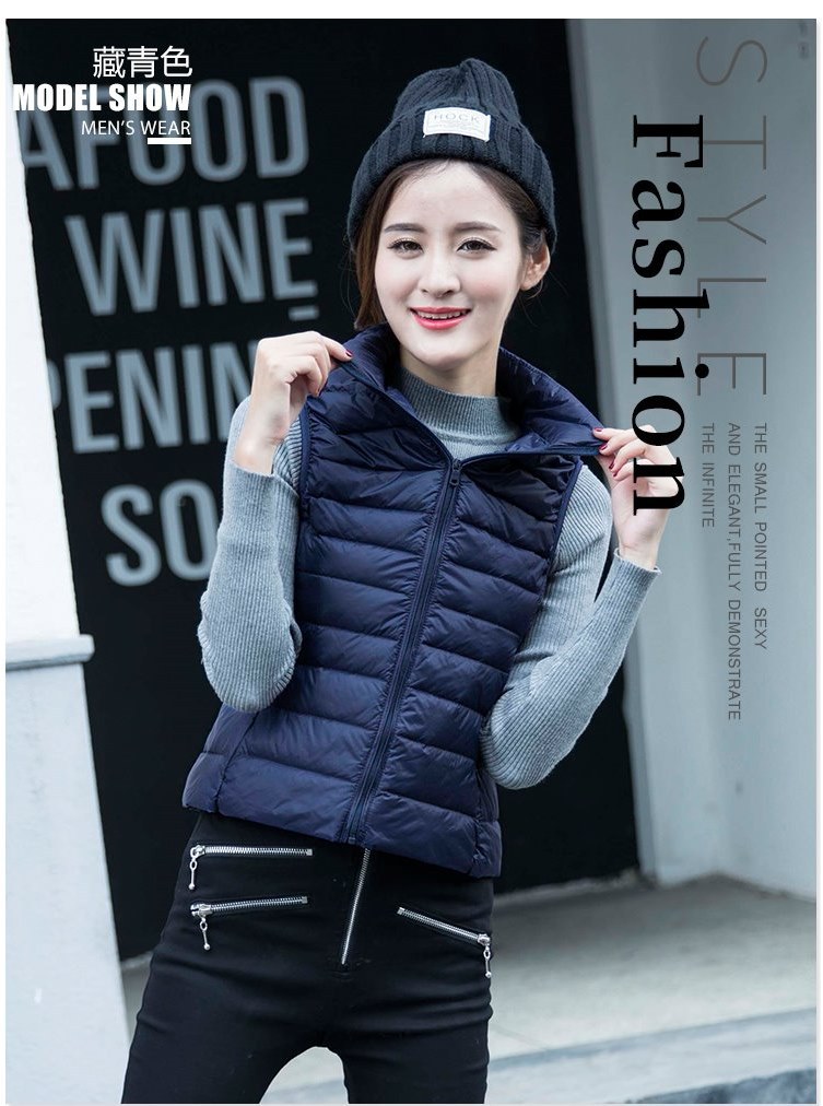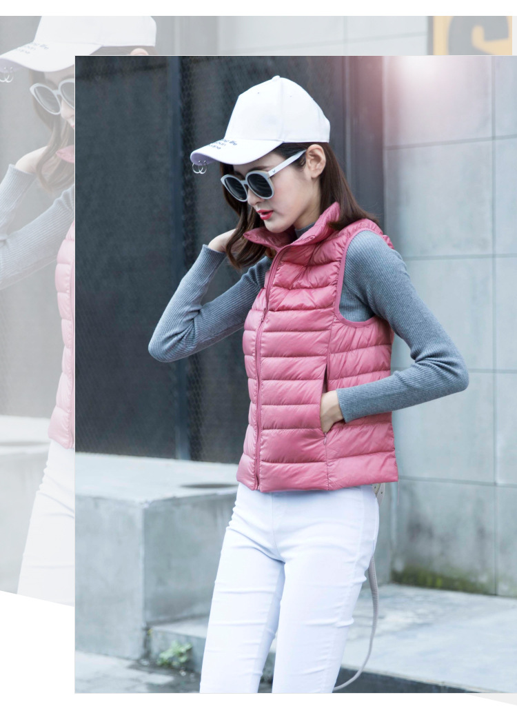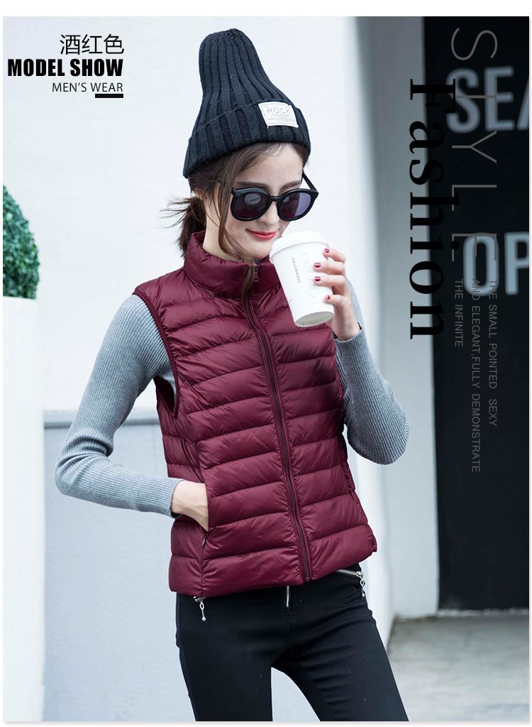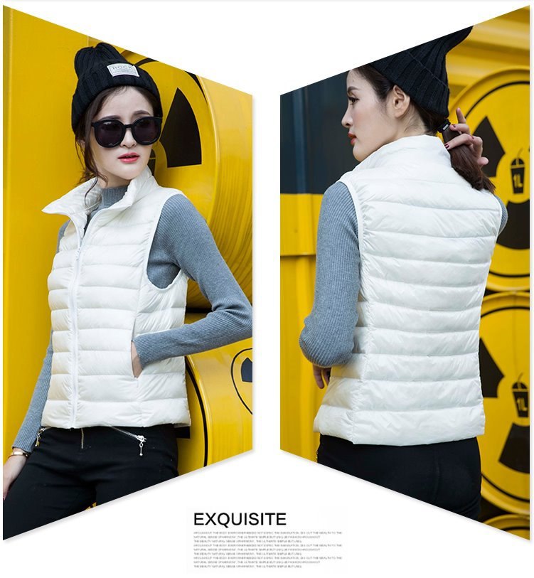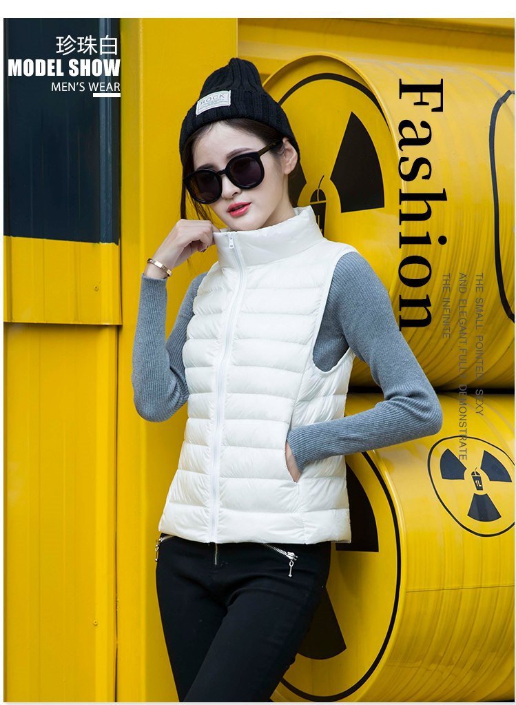 여성용 라이트 다운 조끼 짧은 스탠드 칼라 슬림 핏 조끼 가을과 겨울 새로운 다운 조끼 플러스 사이즈 조끼스토어 가기