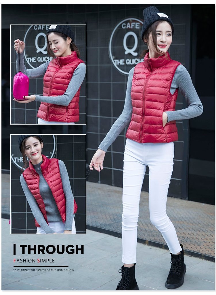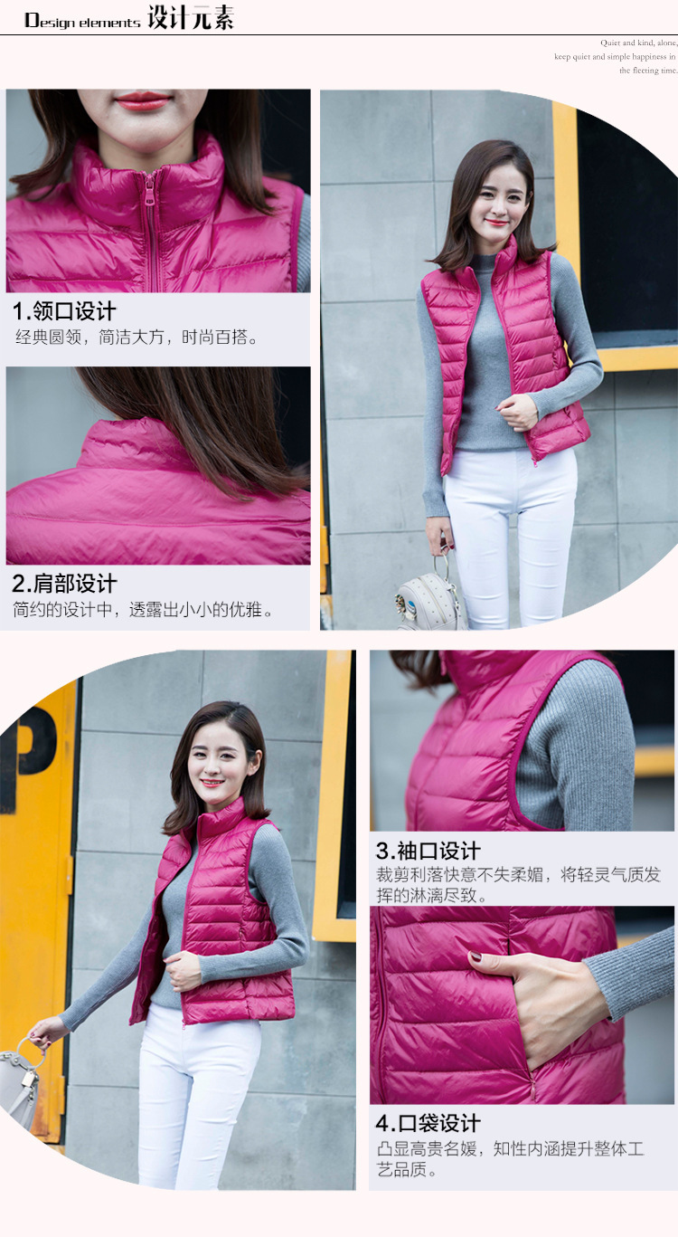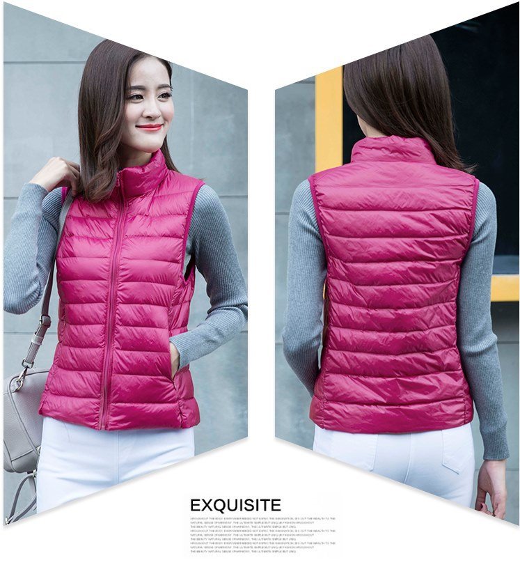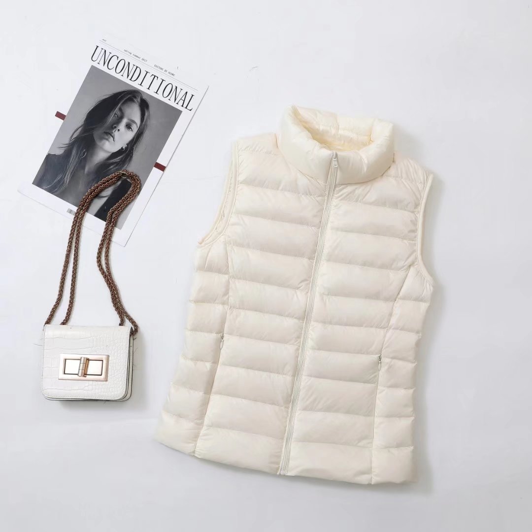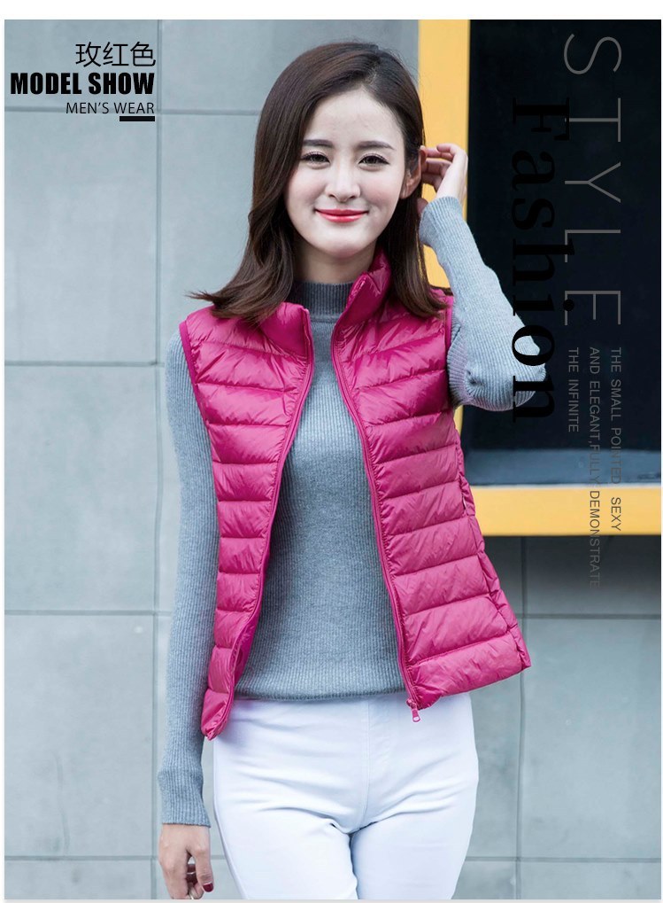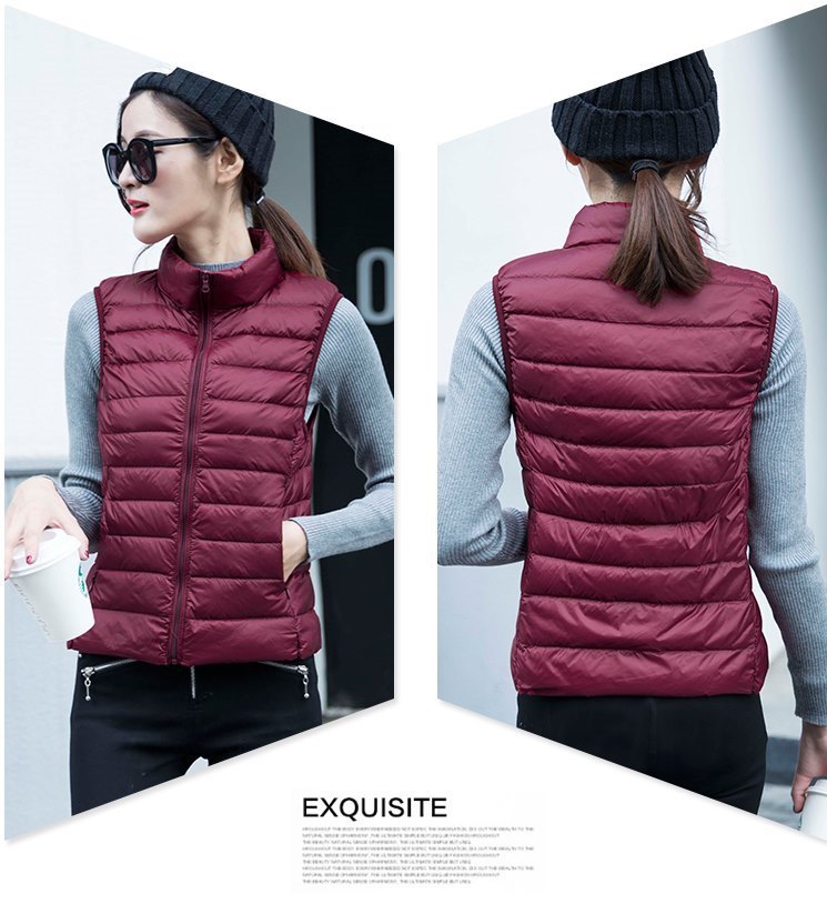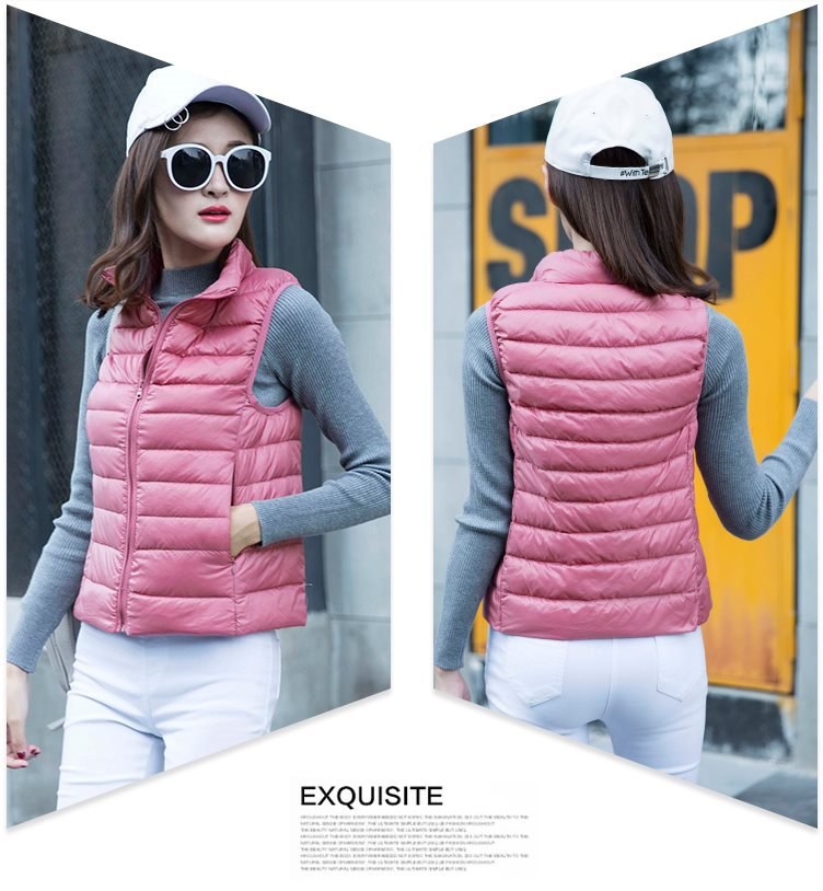 여성용 라이트 다운 조끼 짧은 스탠드 칼라 슬림 핏 조끼 가을과 겨울 새로운 다운 조끼 플러스 사이즈 조끼스토어 가기