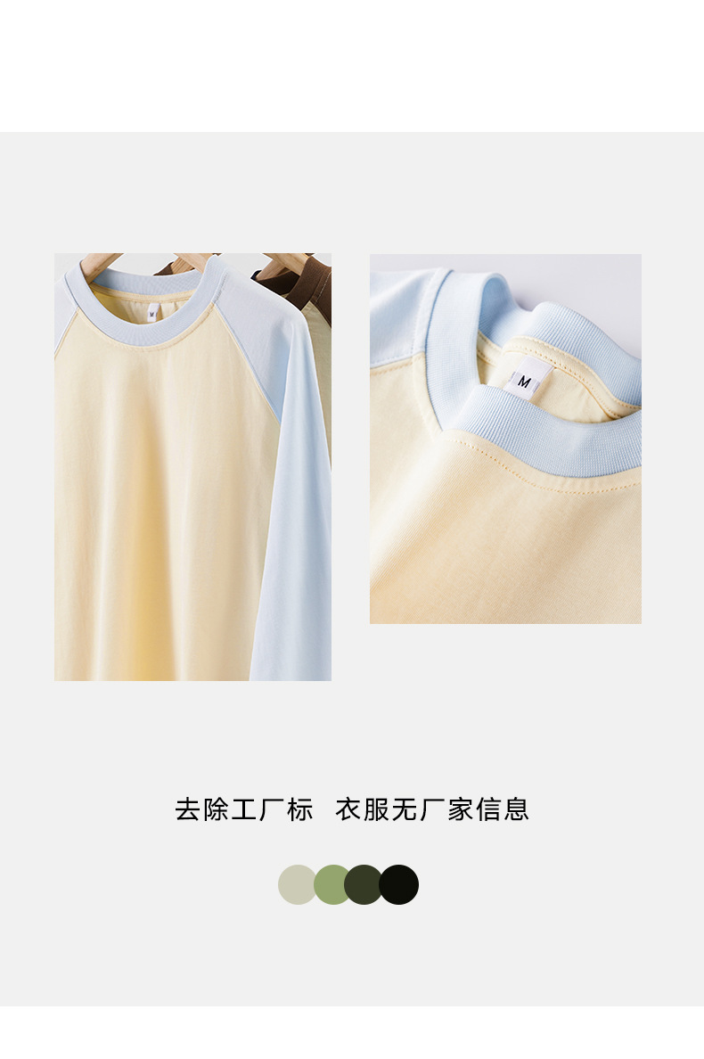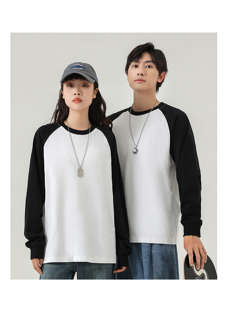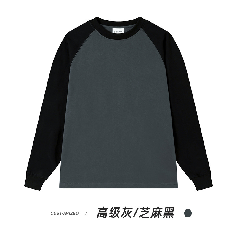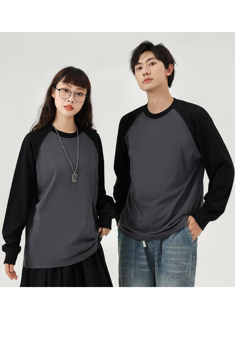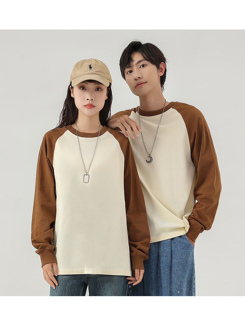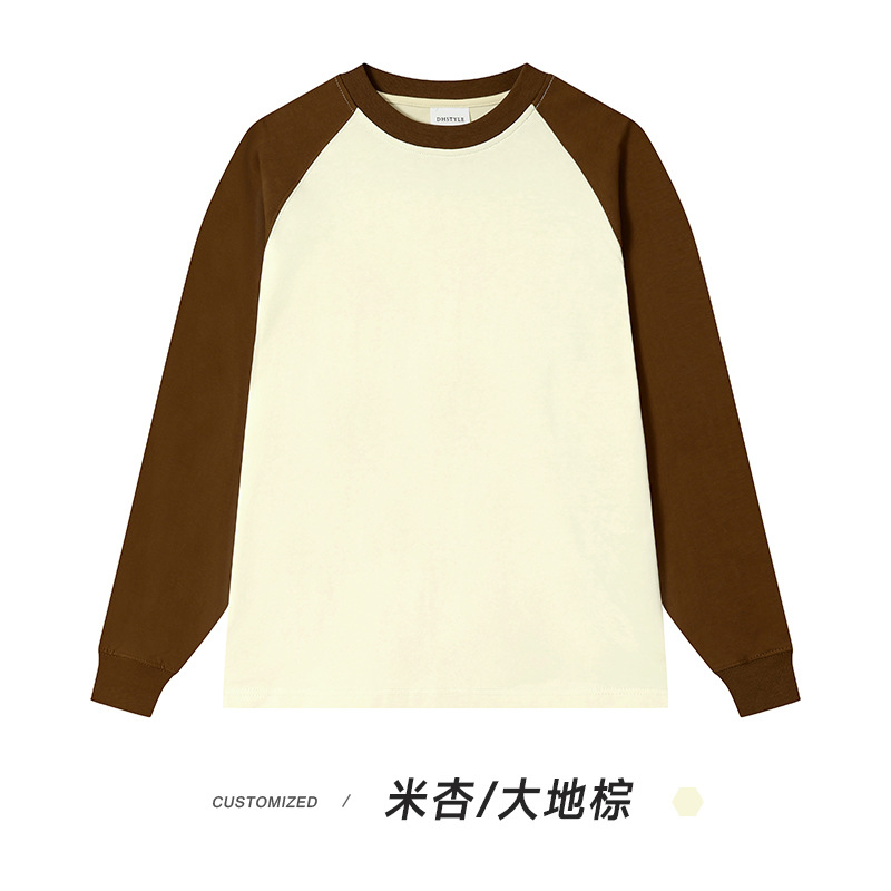 남성용 250g 헤비급 순면 라글란 긴팔 티셔츠, 컬러 매칭 스레드 소매, 여성용 아메리칸 레트로 라운드넥 초가을 베이스 레이어 셔츠스토어 가기