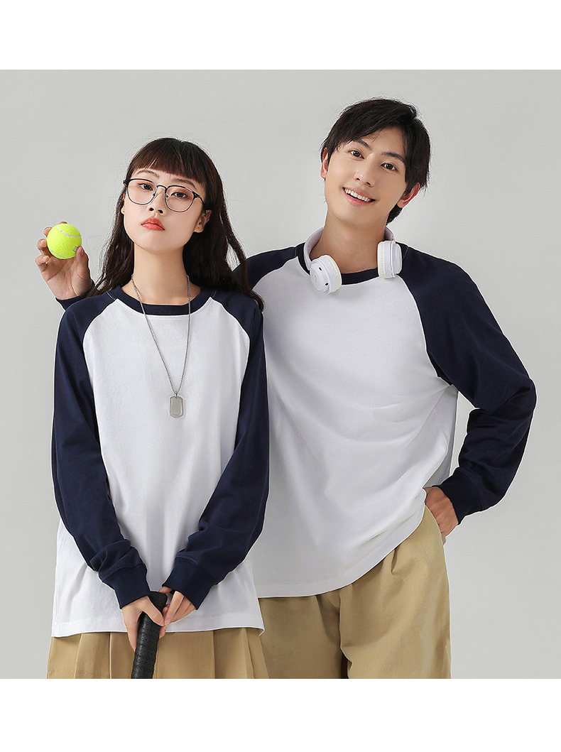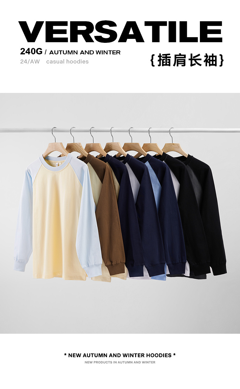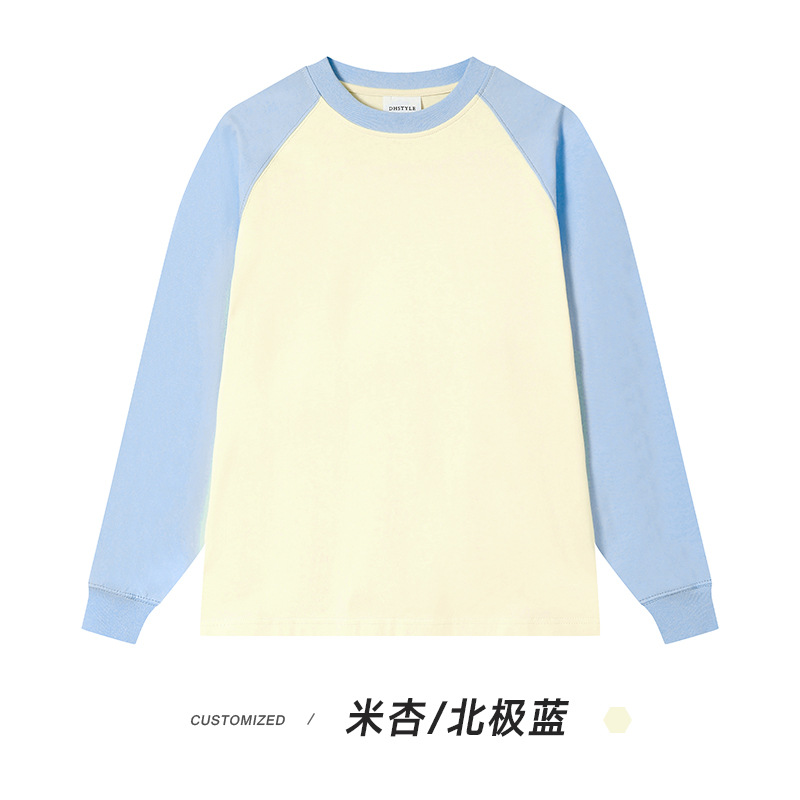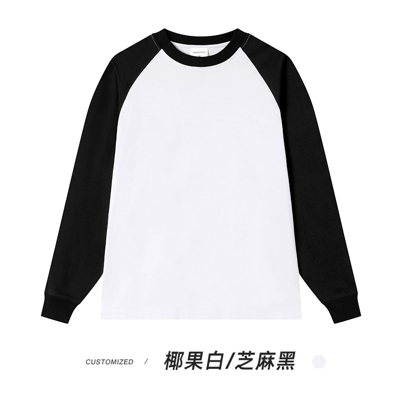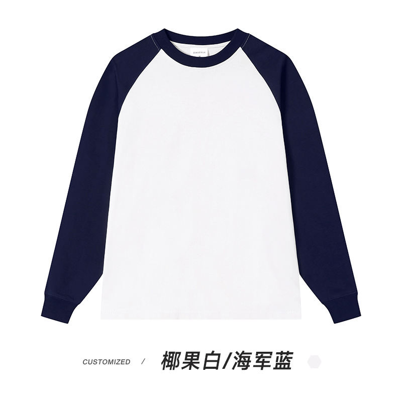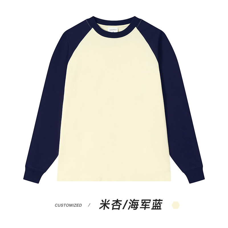 남성용 250g 헤비급 순면 라글란 긴팔 티셔츠, 컬러 매칭 스레드 소매, 여성용 아메리칸 레트로 라운드넥 초가을 베이스 레이어 셔츠스토어 가기
